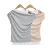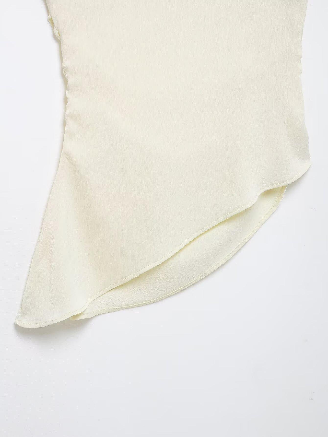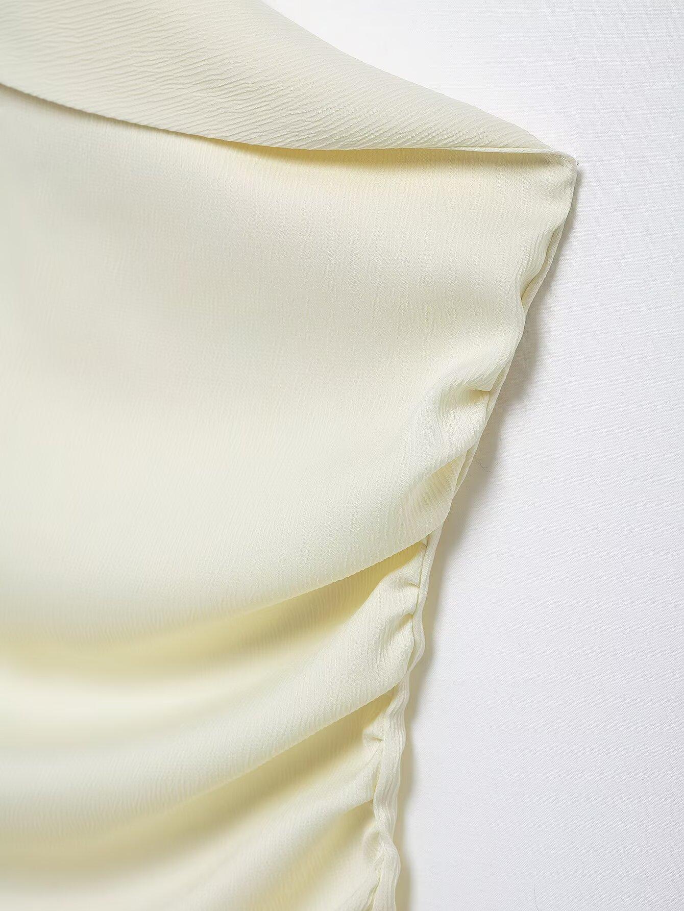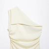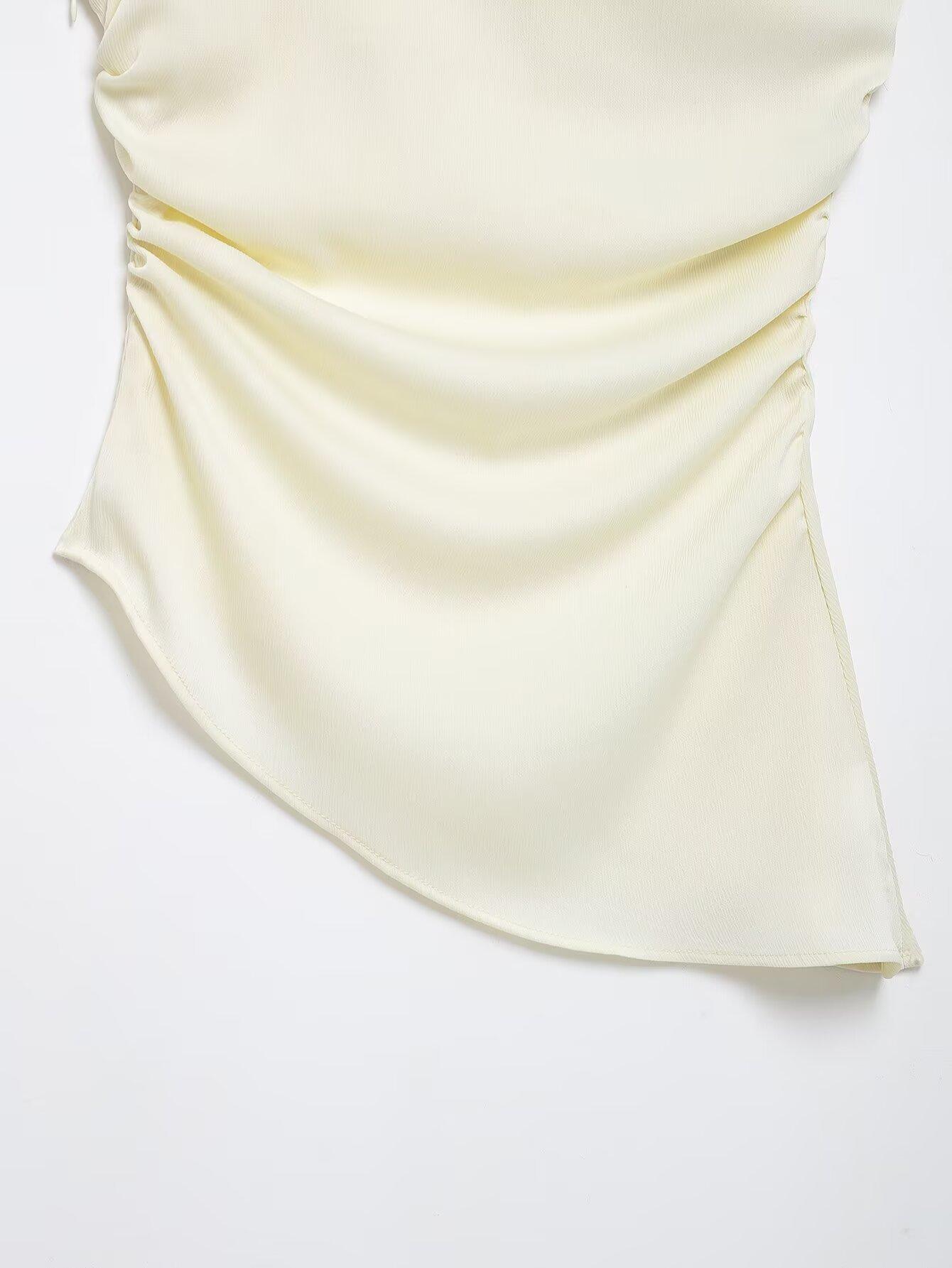 Venta al por mayor transfronteriza estilo europeo y americano moda verano 2025 hombro cuello oblicuo asimétrico top chaleco plisado para mujer D6238179