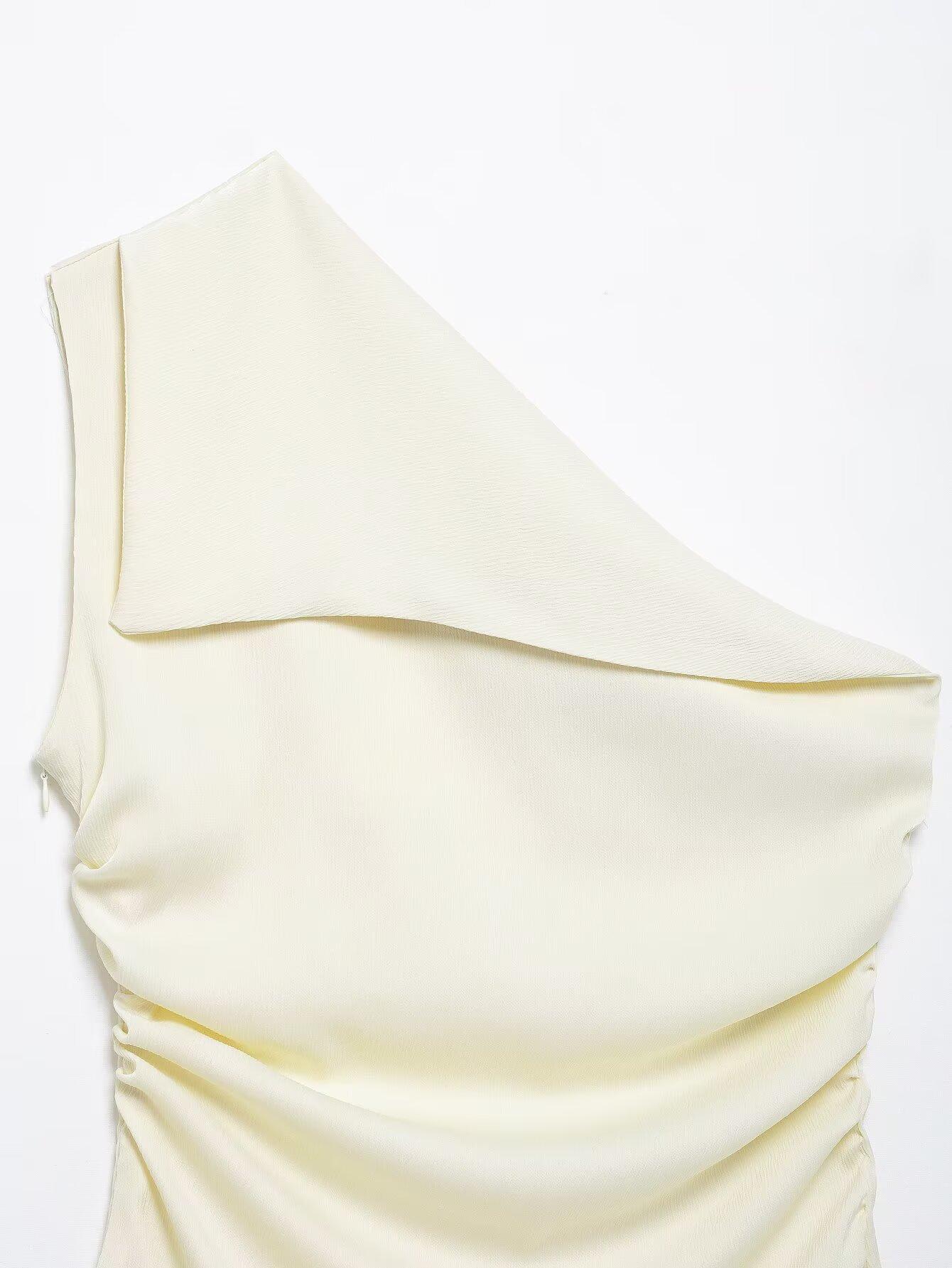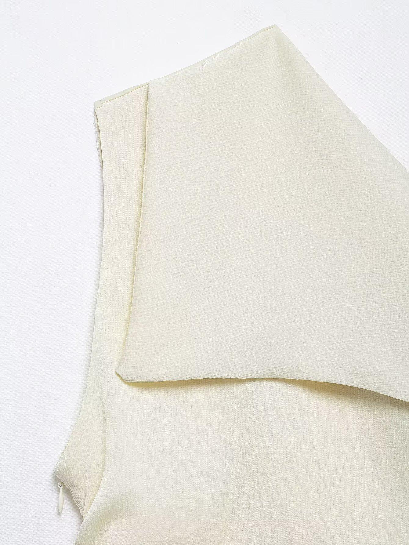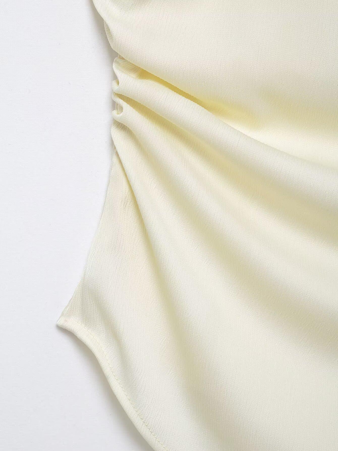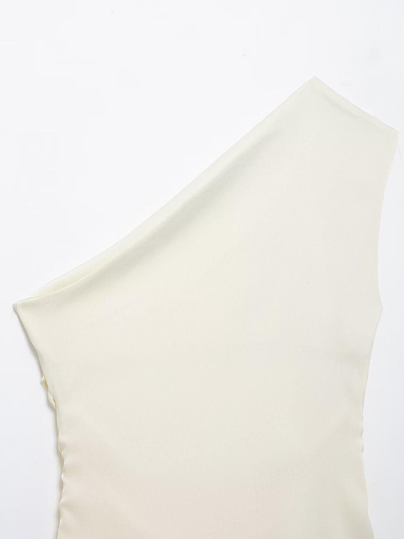 Venta al por mayor transfronteriza estilo europeo y americano moda verano 2025 hombro cuello oblicuo asimétrico top chaleco plisado para mujer D6238179