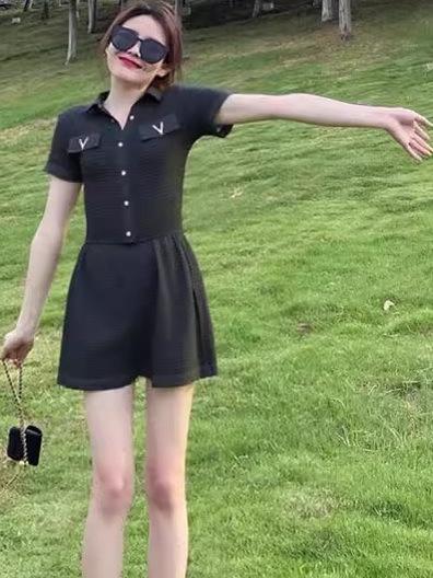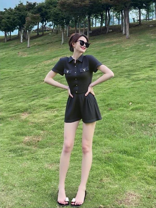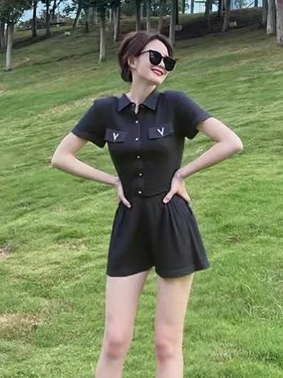 Verano 2025 Nuevo Primer Amor Estilo Salado Temperamento Petite Ajustado Camisa Cuello Polo Conjunto de Shorts Dos Piezas Mujer