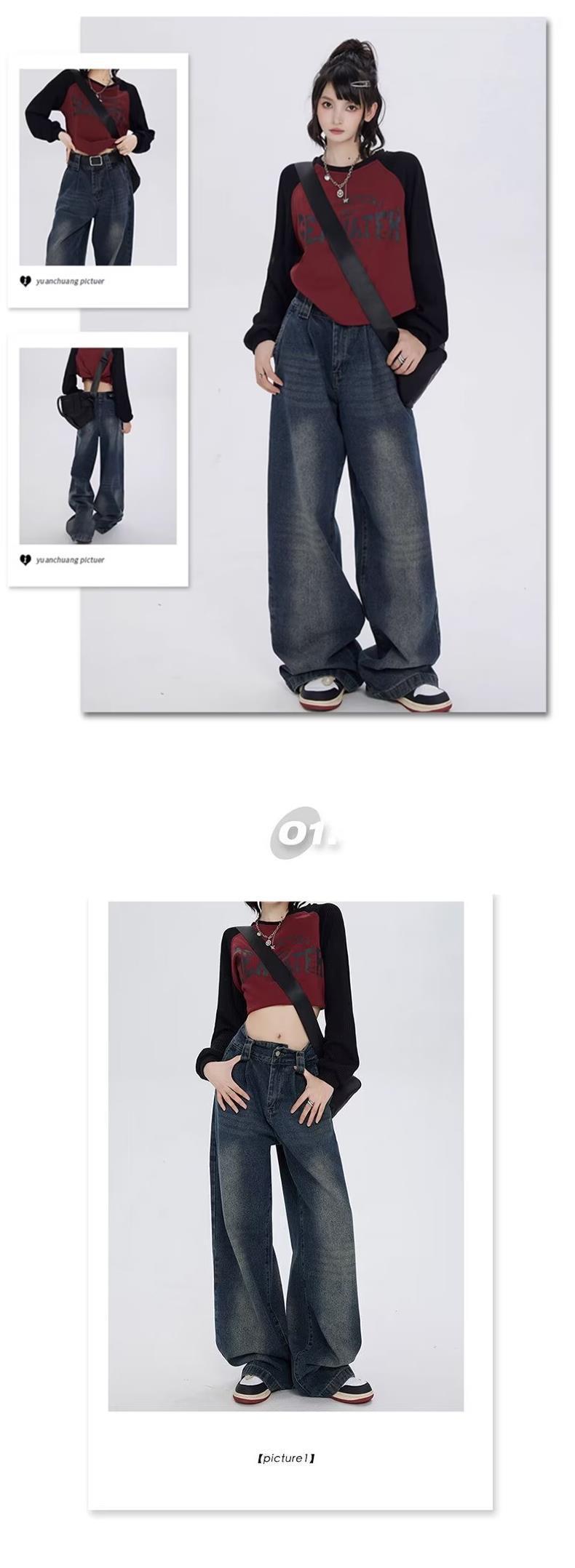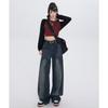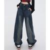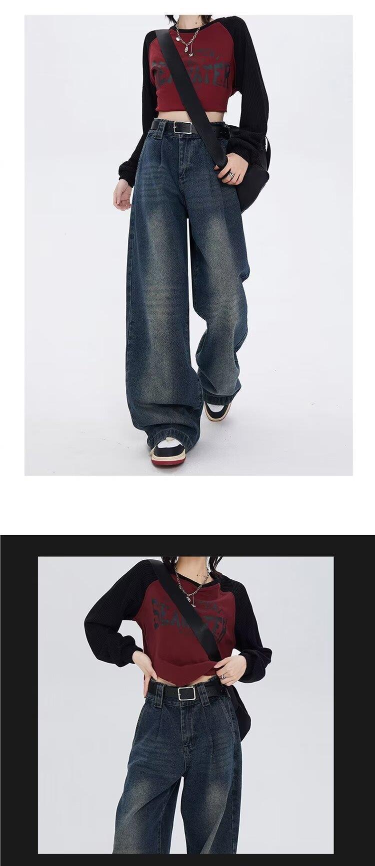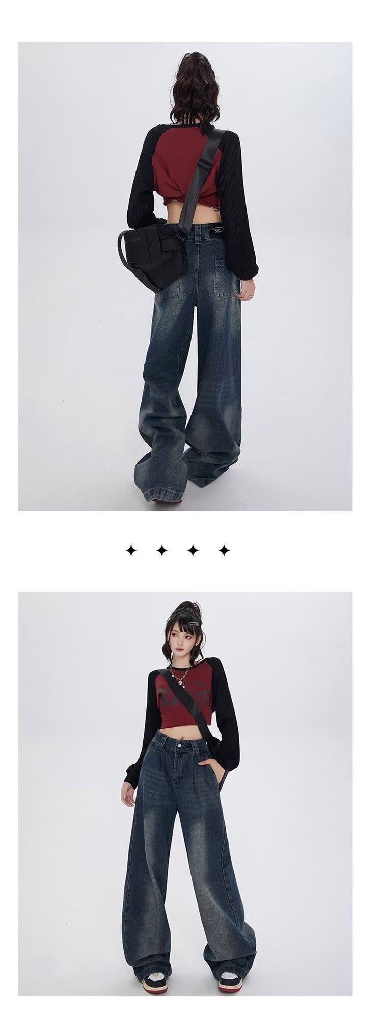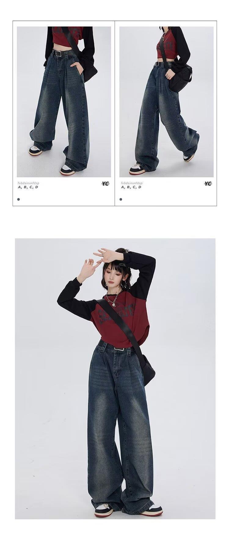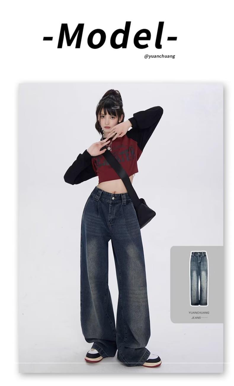 Pantalones vaqueros de cintura alta estilo americano lavados de calle para mujer, rectos, casuales, holgados, de pierna ancha, para primavera y verano