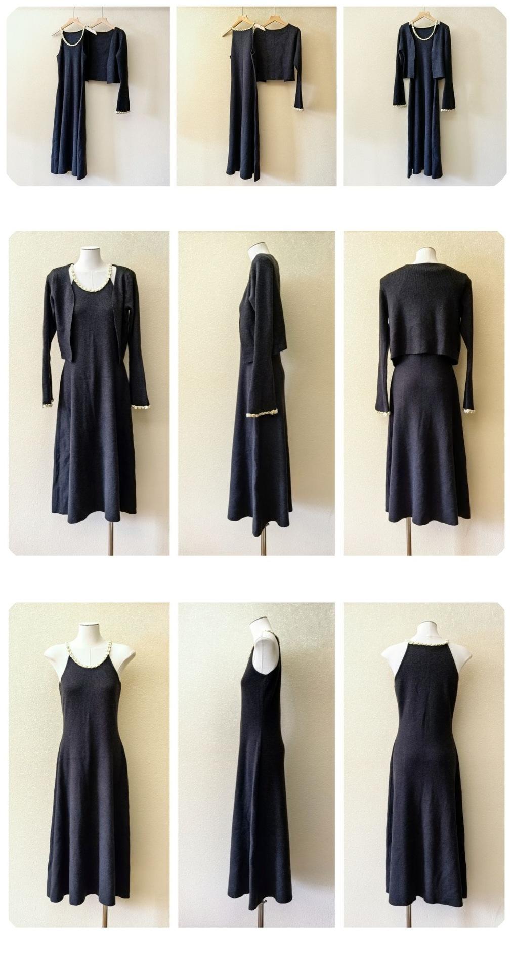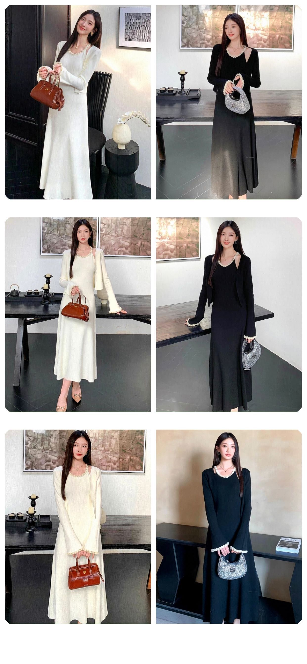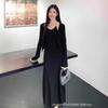 2025 Nuevo Temperamento Estilo Chanel Francés Vestido de Alta Gama Socialité Vestido Largo de Punto de Lana Conjunto de Dos Piezas