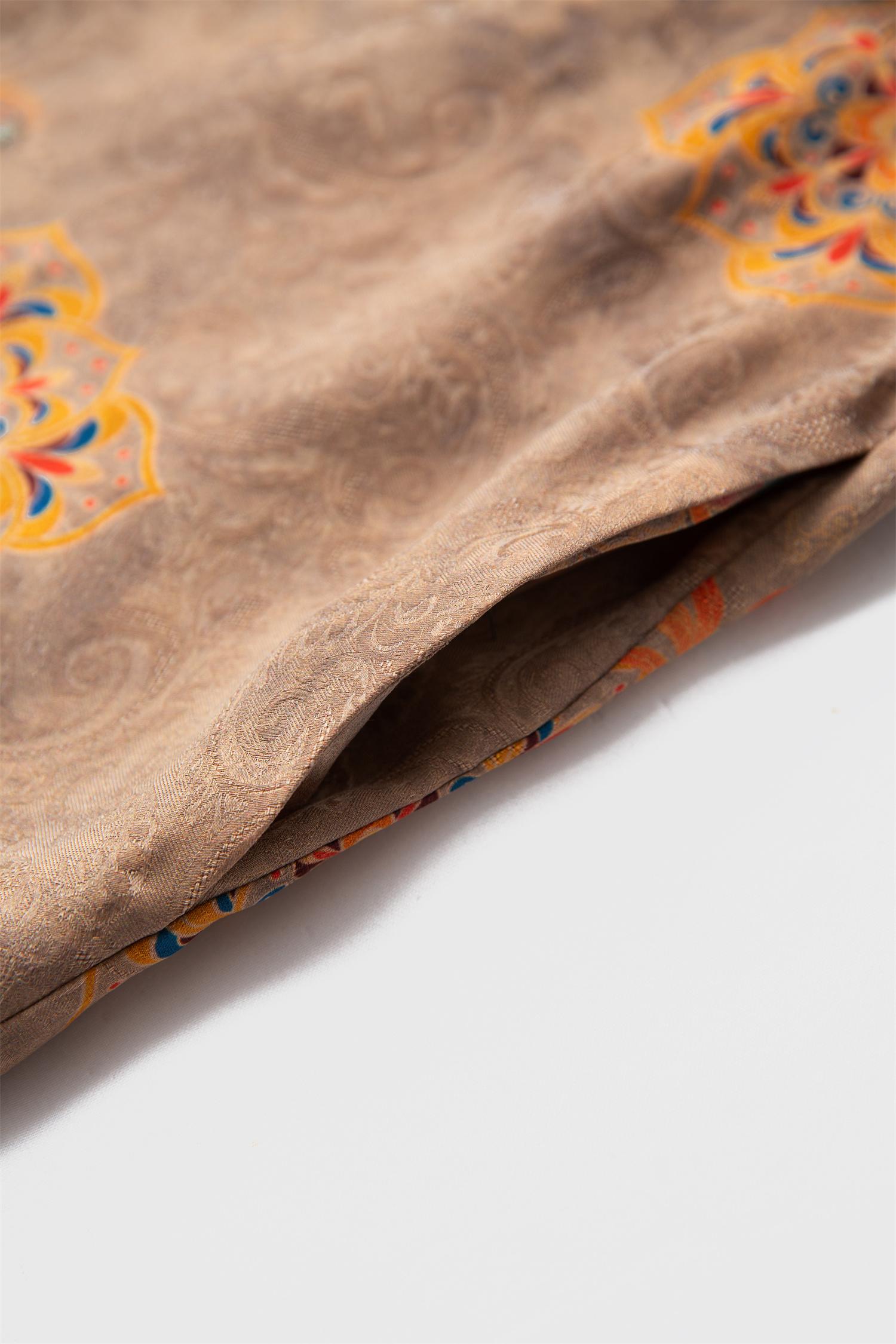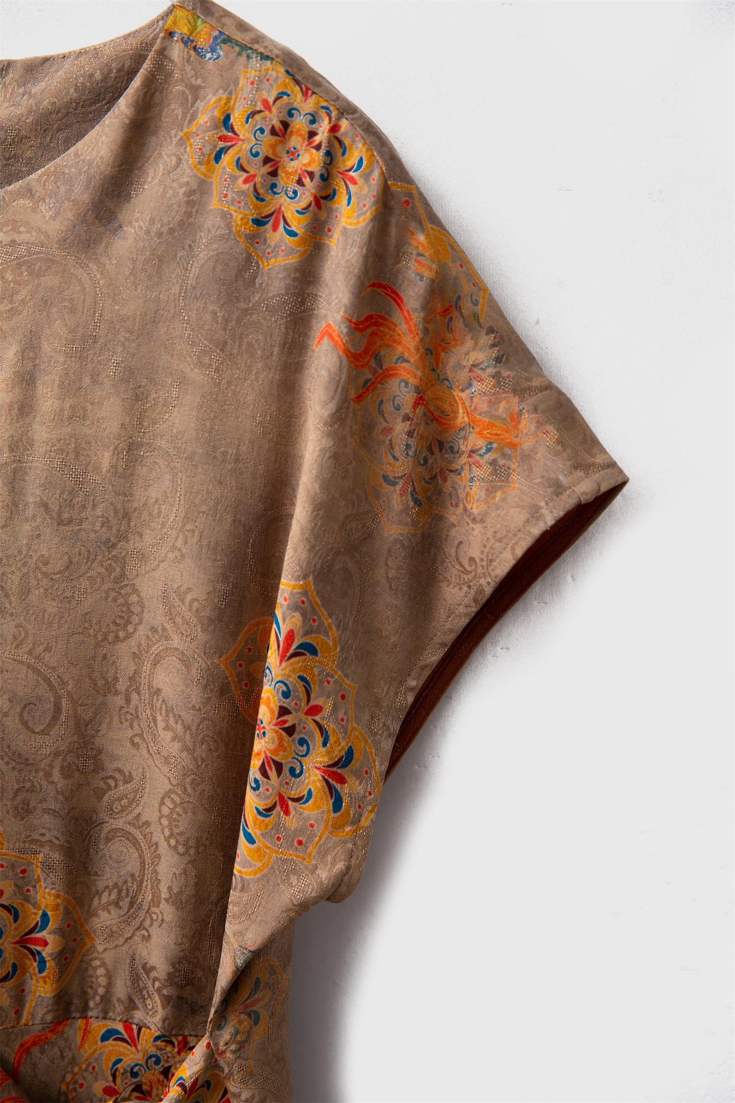 Resumir: Las telas de seda se encogen ligeramente, por lo que se recomienda elegir una talla un poco más suelta al comprar. |