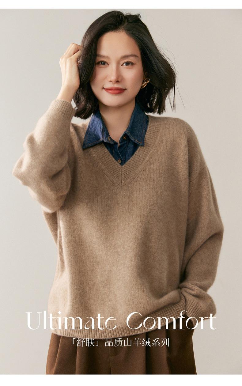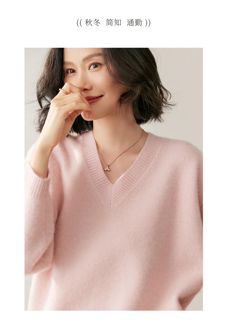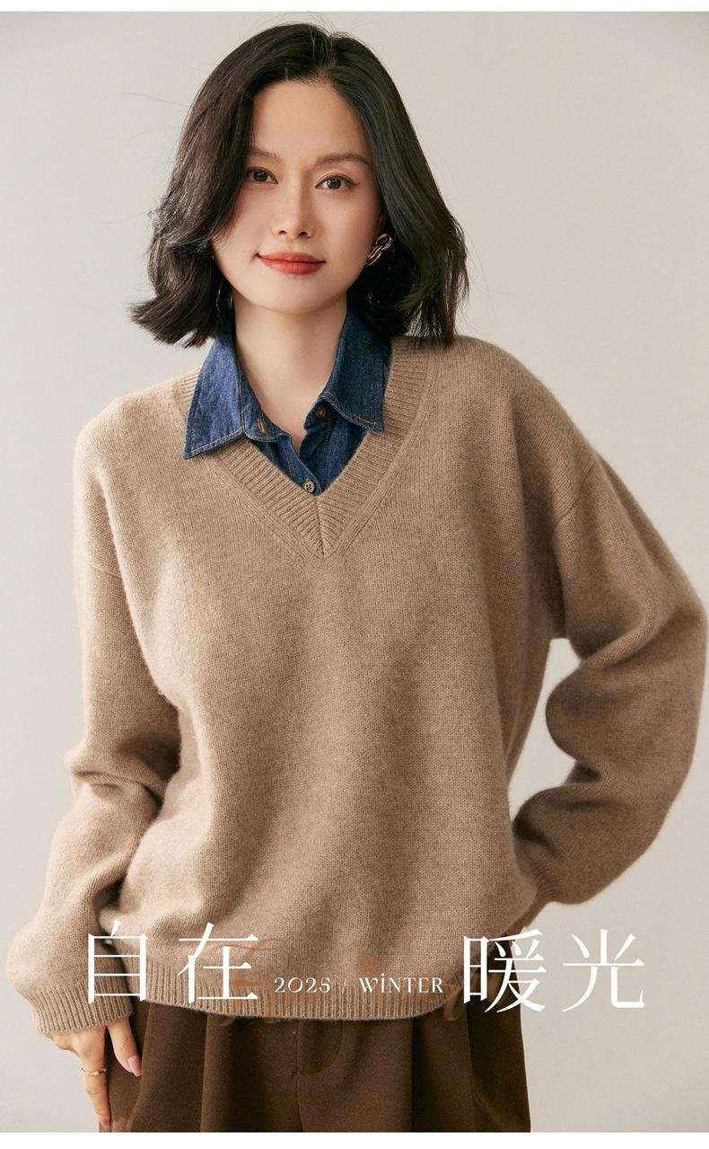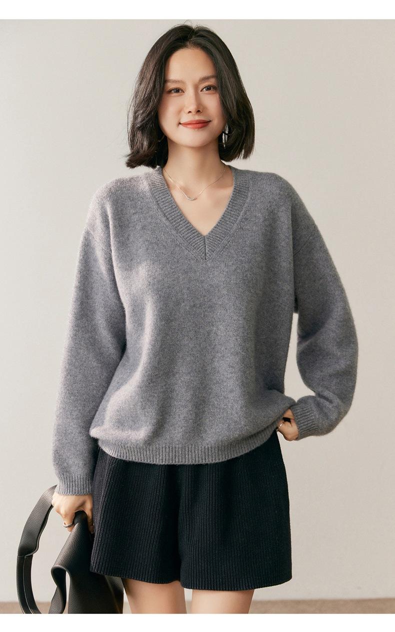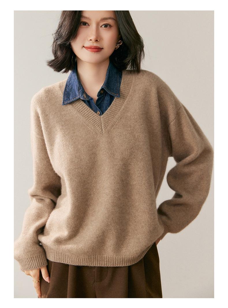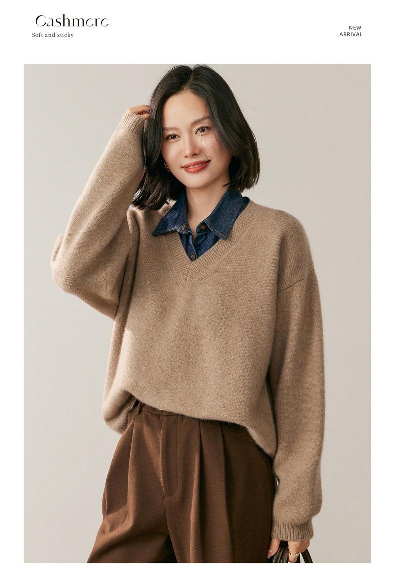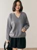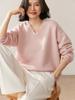 Estilo perezoso sensación relajada~suéter de cachemira para bebé para mujer cuello en V suéter corto grueso otoño e invierno camisa básica de punto