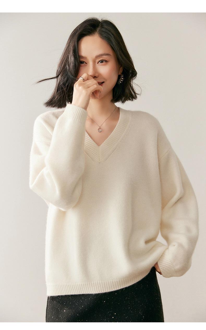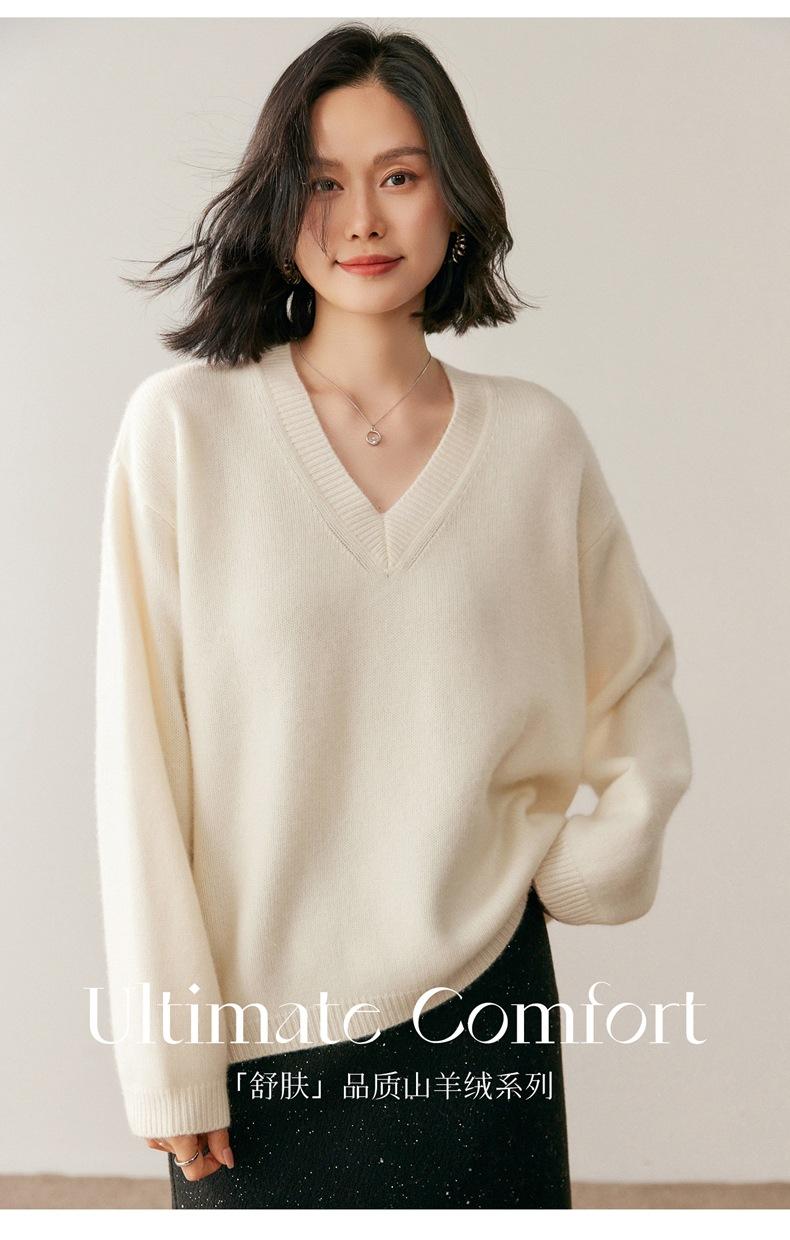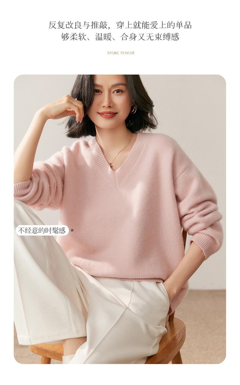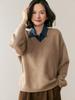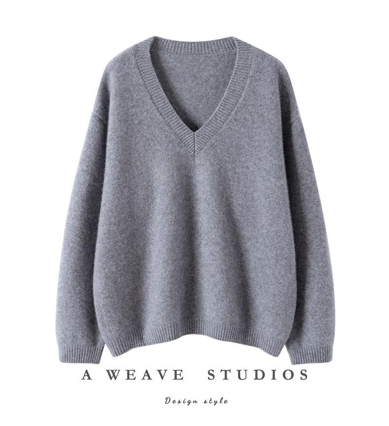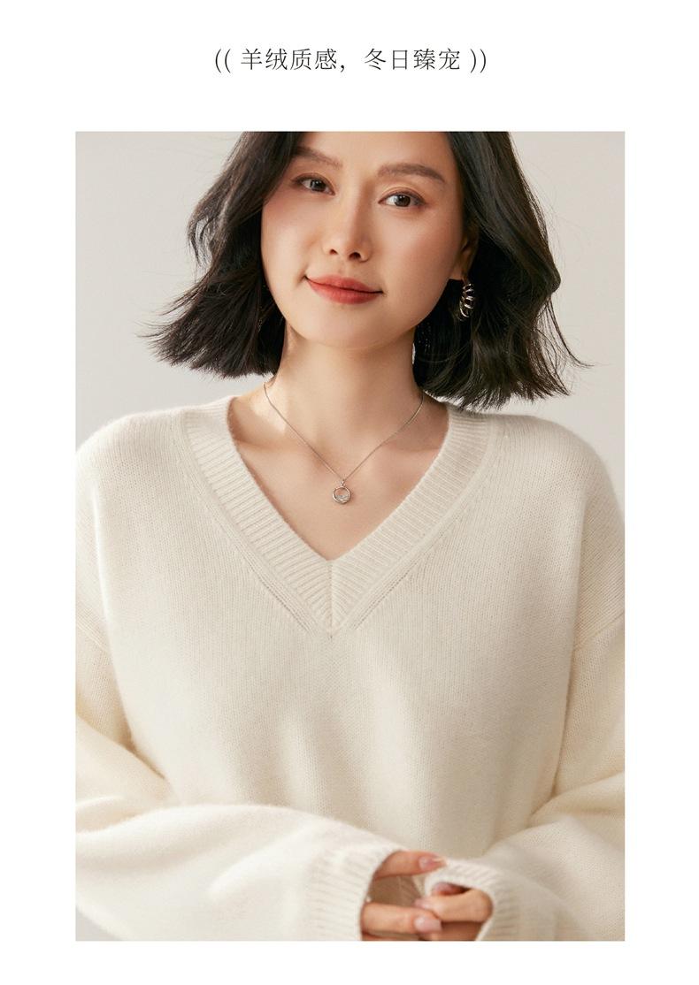 Estilo perezoso sensación relajada~suéter de cachemira para bebé para mujer cuello en V suéter corto grueso otoño e invierno camisa básica de punto
