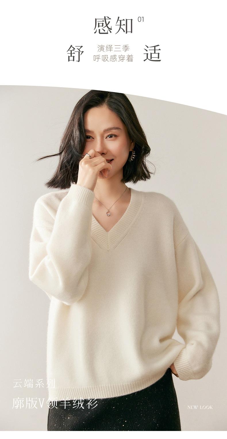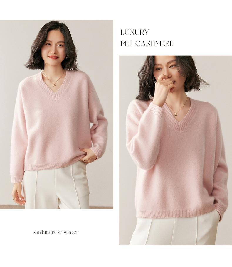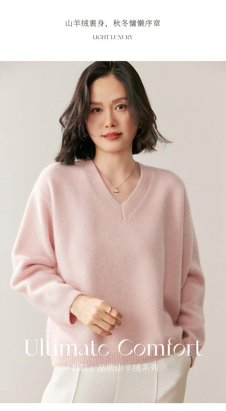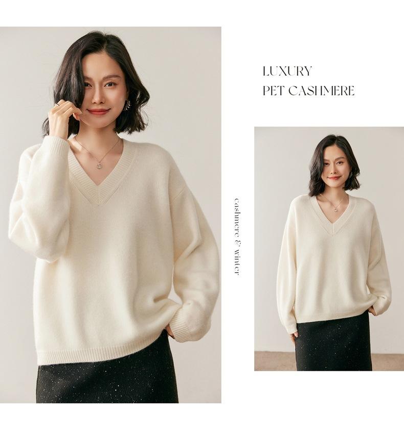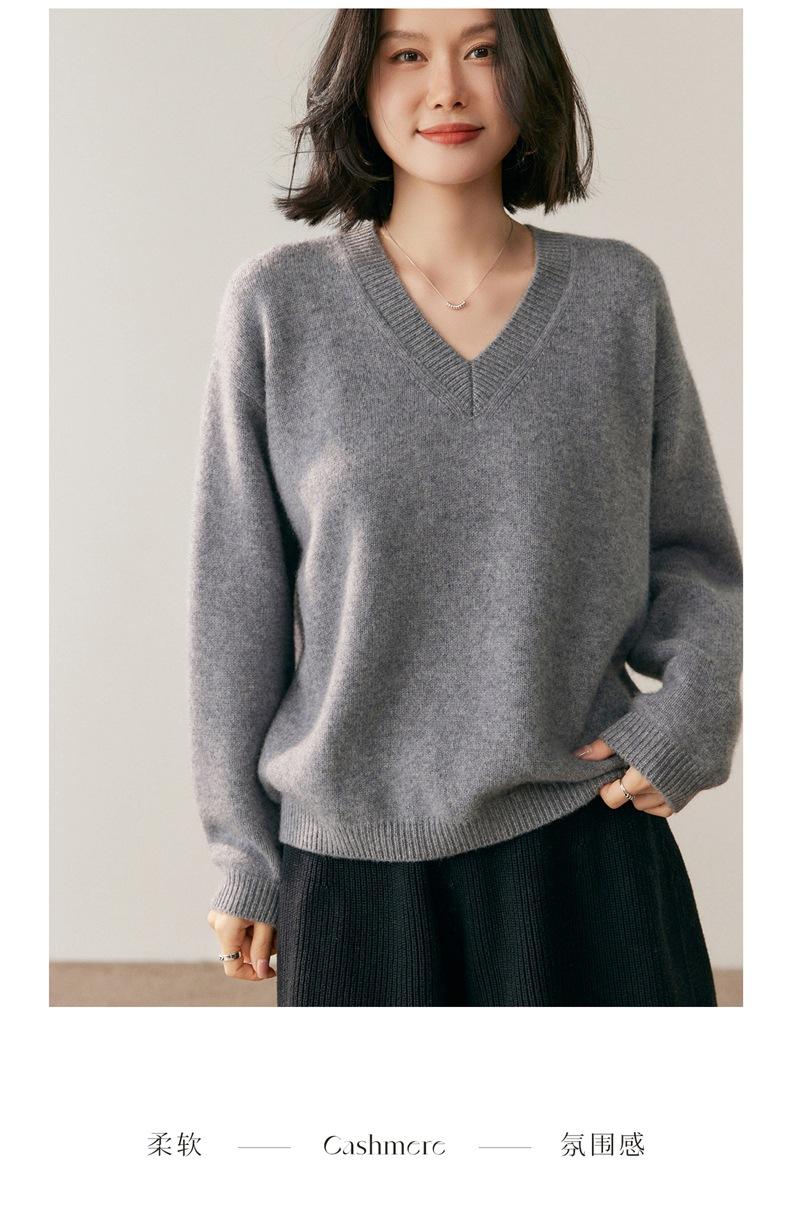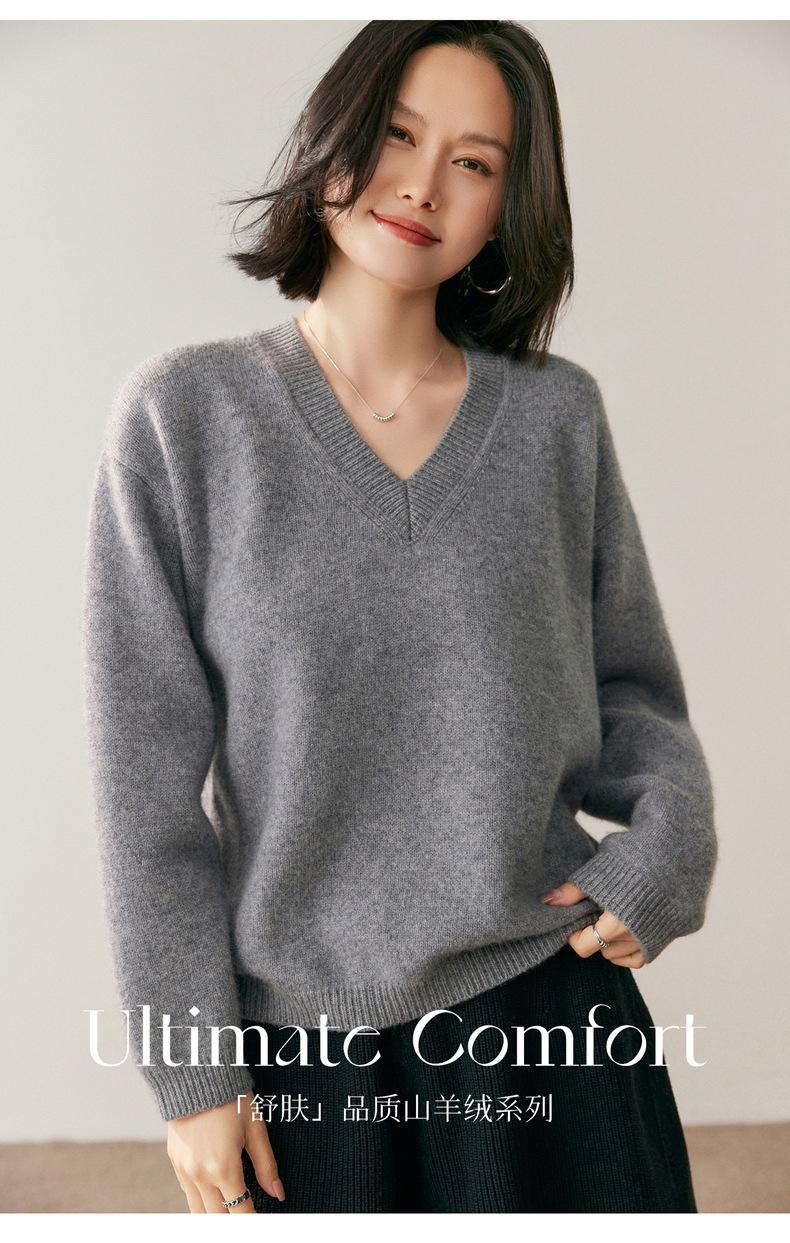 Estilo perezoso sensación relajada~suéter de cachemira para bebé para mujer cuello en V suéter corto grueso otoño e invierno camisa básica de punto