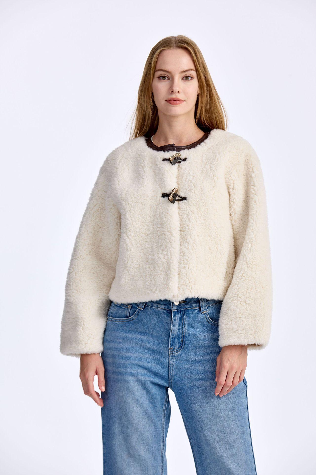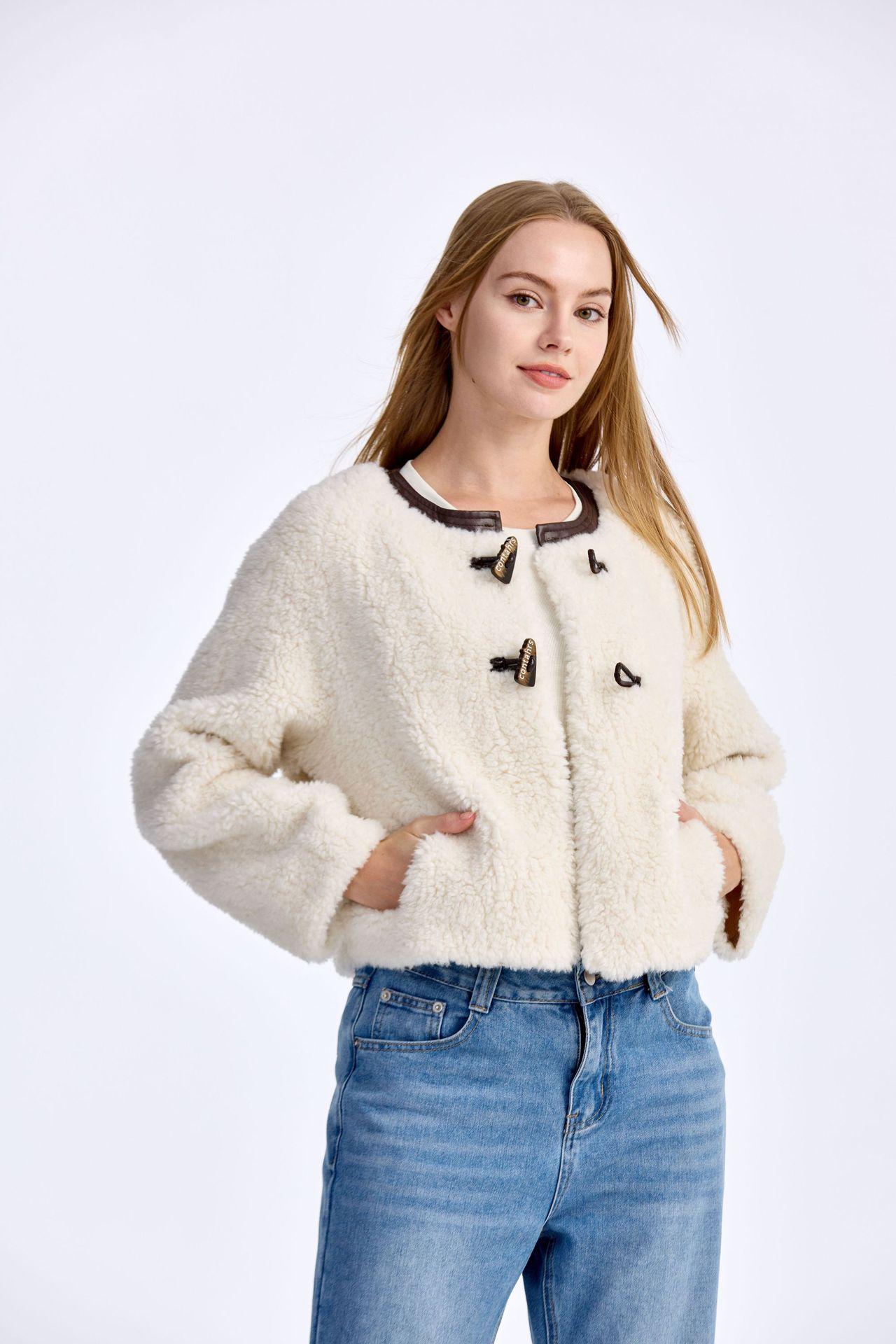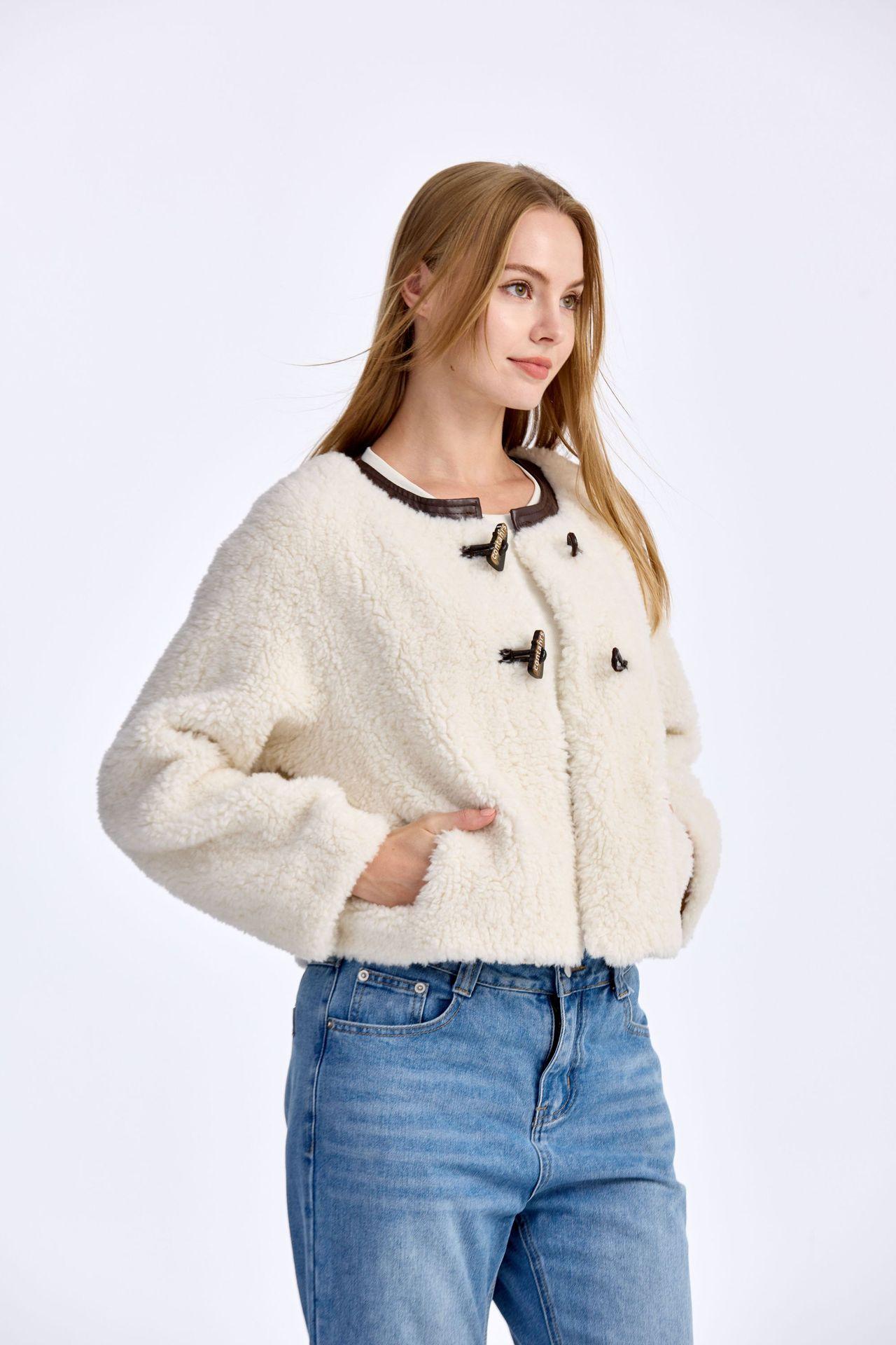Abrigo de piel para mujer de otoño e invierno de comercio exterior, estilo europeo y americano transfronterizo, con botón de palanca y cuello redondo, chaqueta holgada