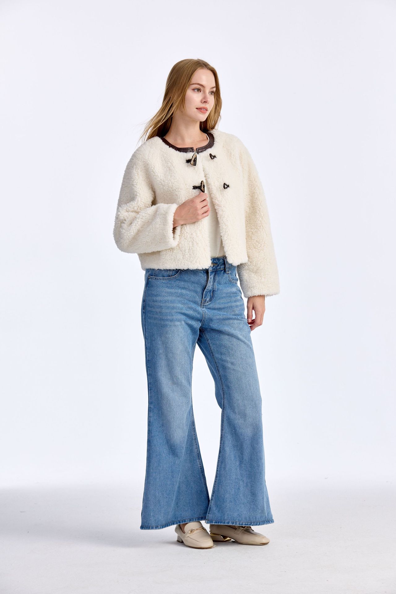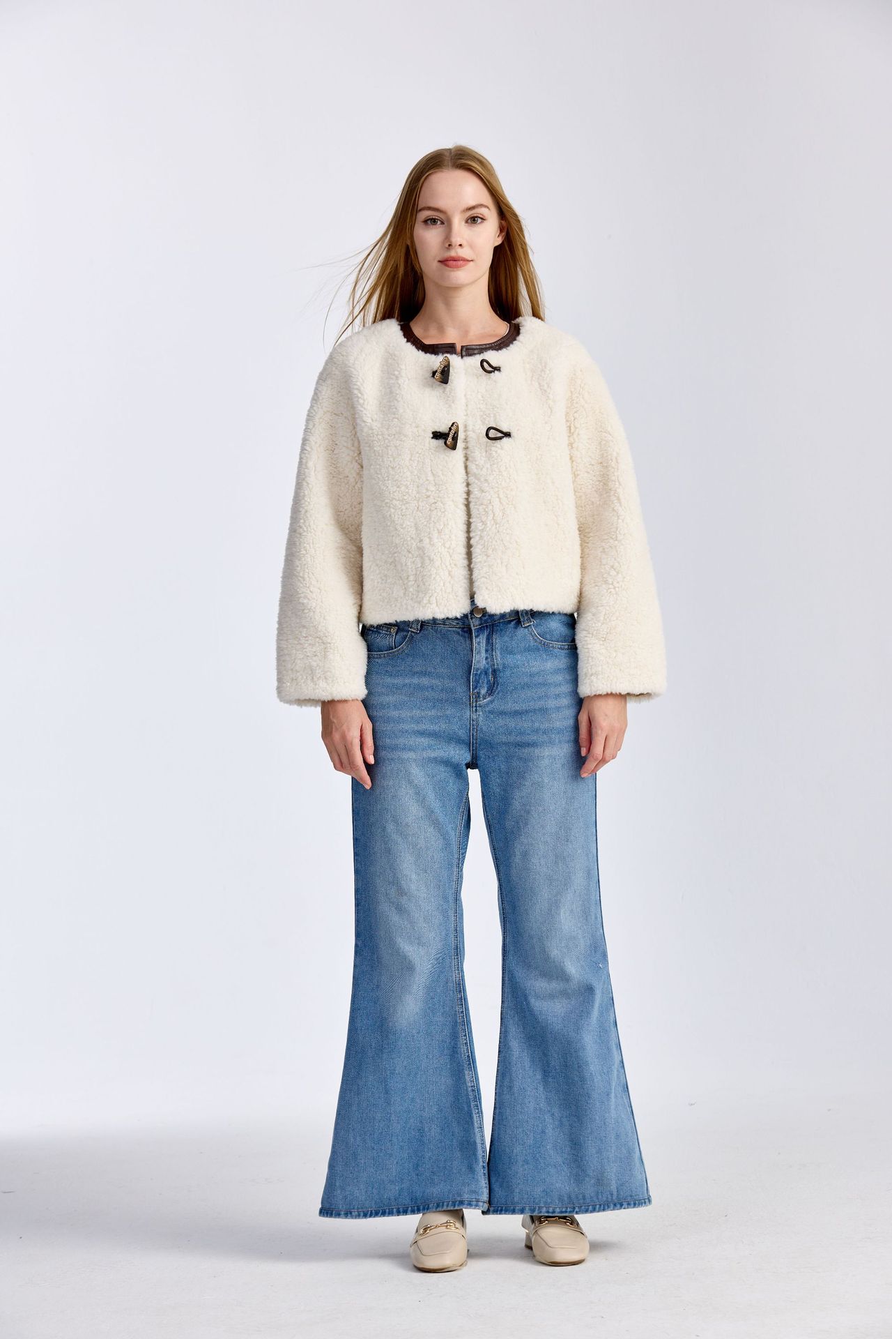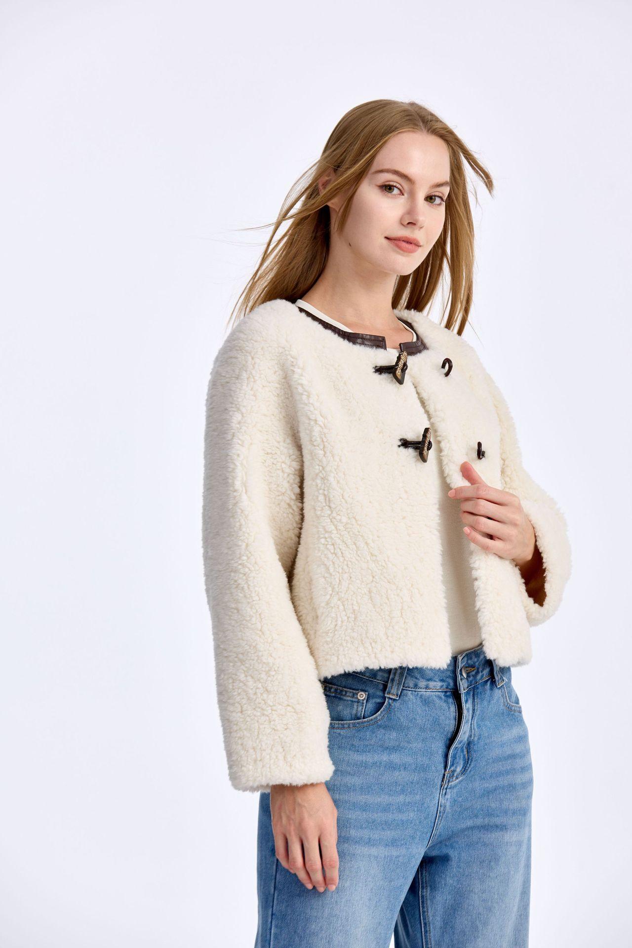 Abrigo de piel para mujer de otoño e invierno de comercio exterior, estilo europeo y americano transfronterizo, con botón de palanca y cuello redondo, chaqueta holgada