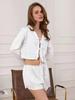 2025 Verano Nuevo Transfronterizo Europeo y Americano Blanco Calado Jacquard Conjunto de Pijama Cárdigan Atado con Cordones Manga Larga Pantalones Cortos Ropa para el Hogar