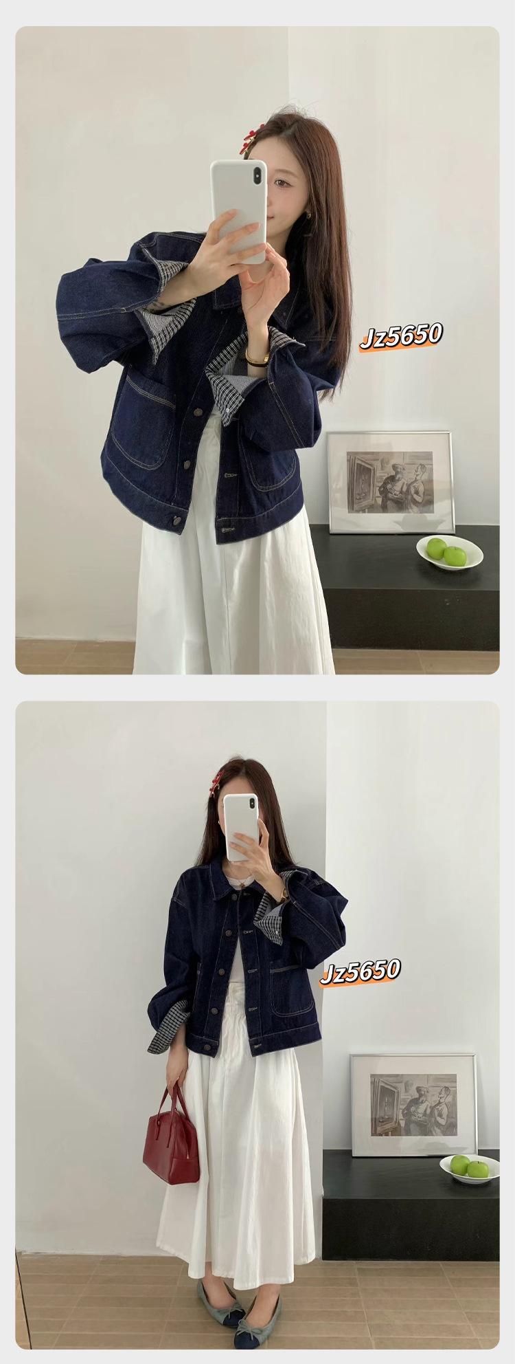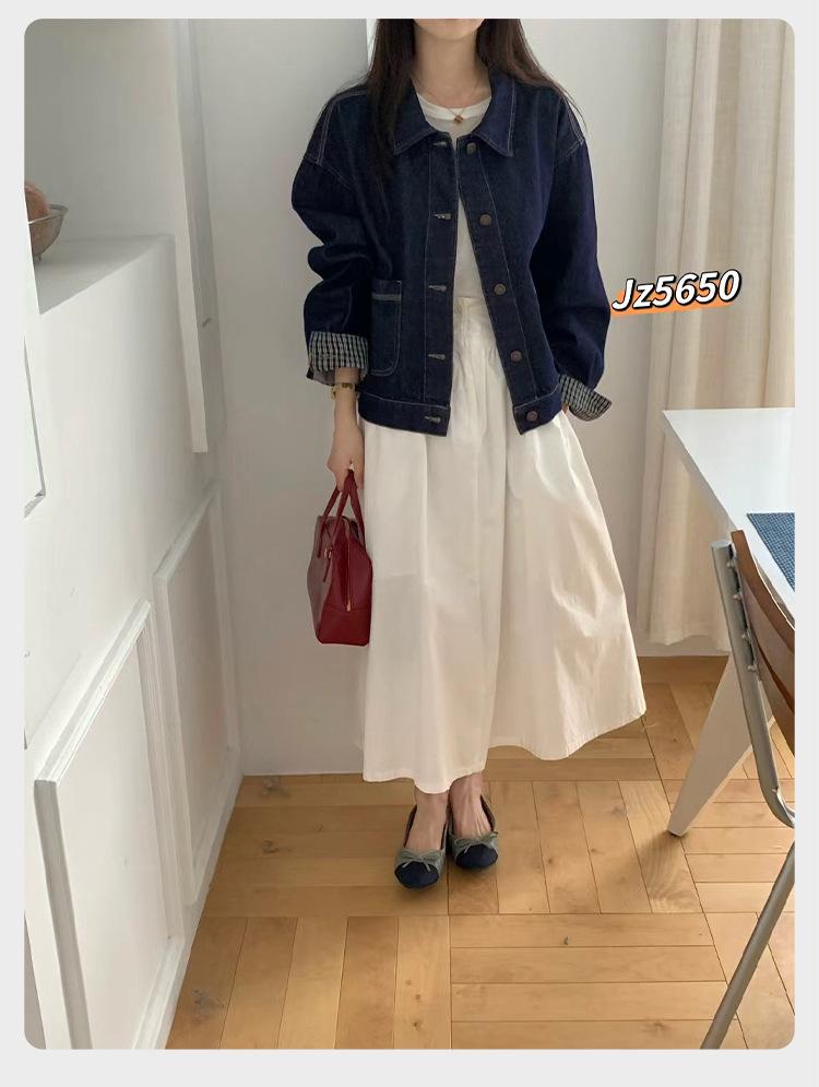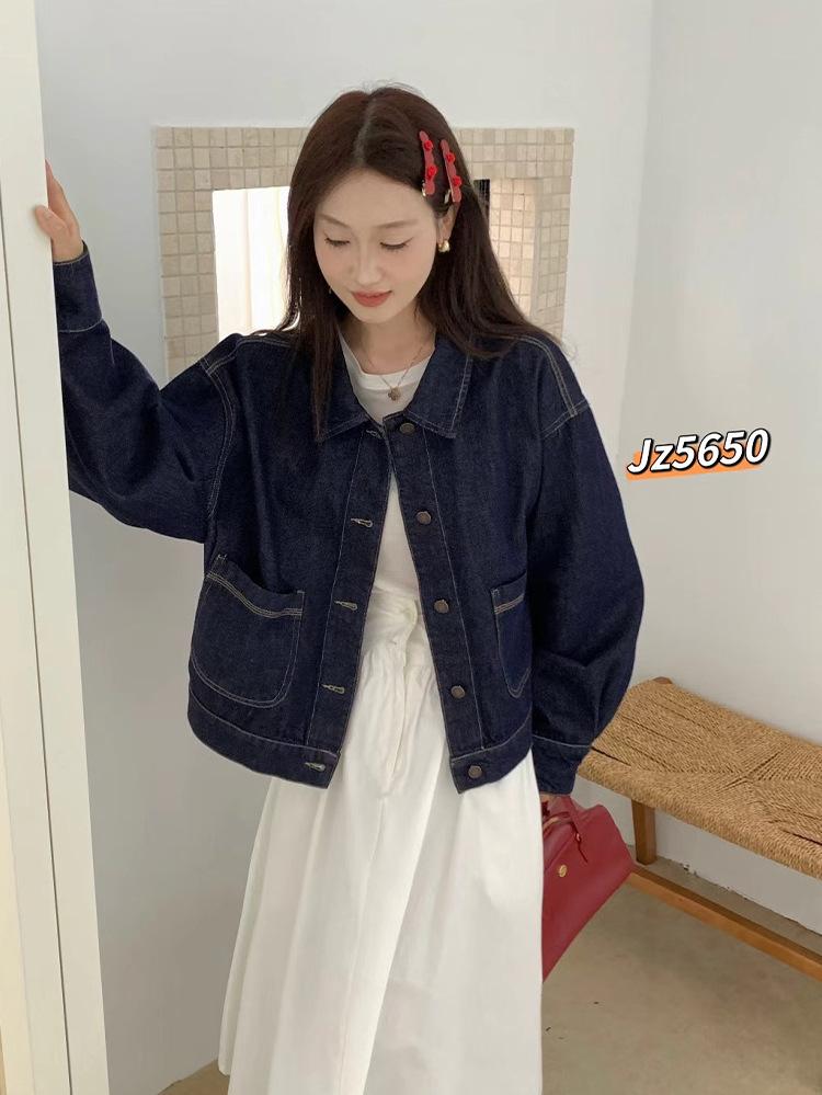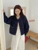 Chaqueta de Mezclilla Corta Retro Azul Oscuro Estilo Coreano Nueva Holgada Moda Petite Top Chaqueta ZR