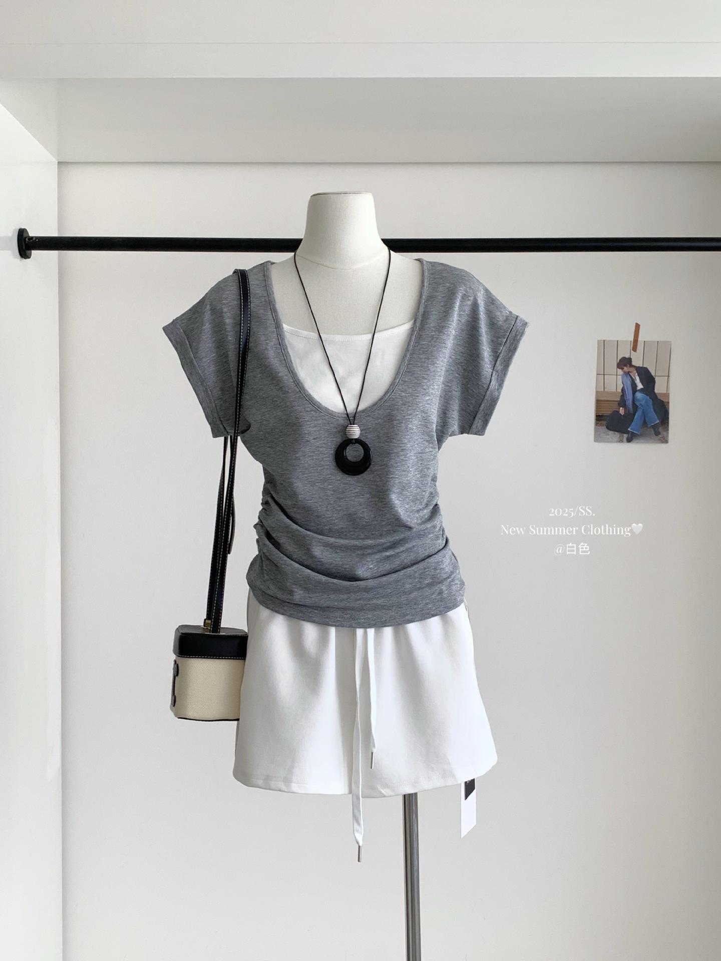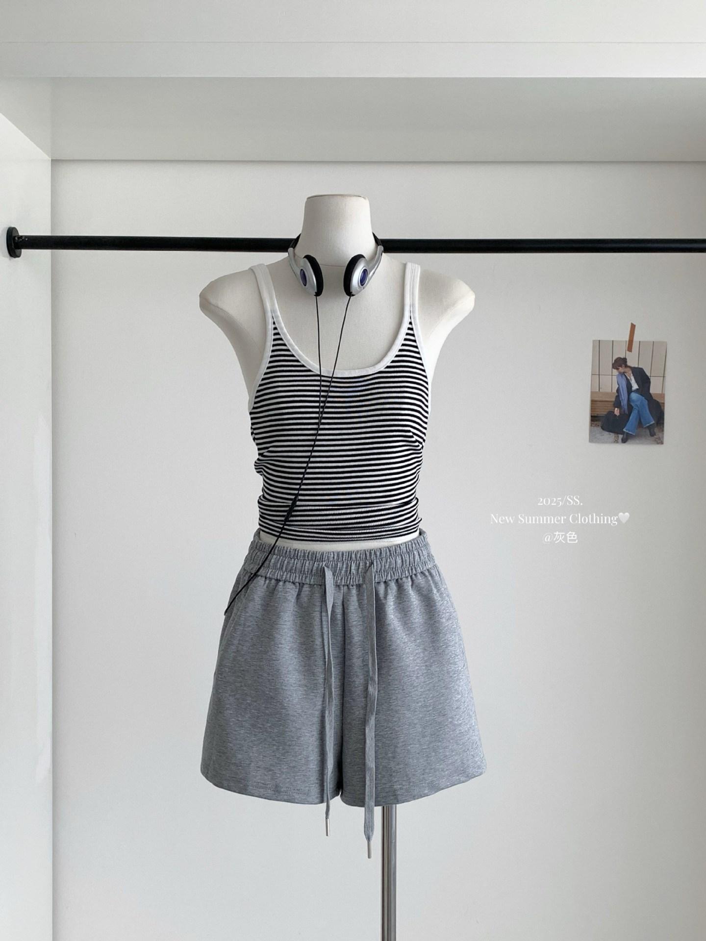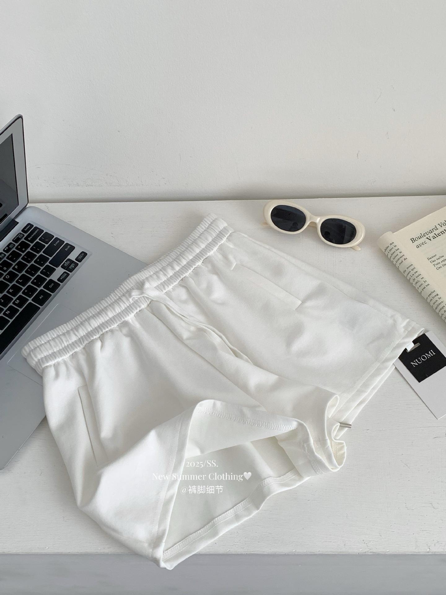 Shorts Casuales Blancos con Cordones y Cintura Elástica para Mujer Verano 2025 Pantalones de Pierna Ancha y Cintura Alta