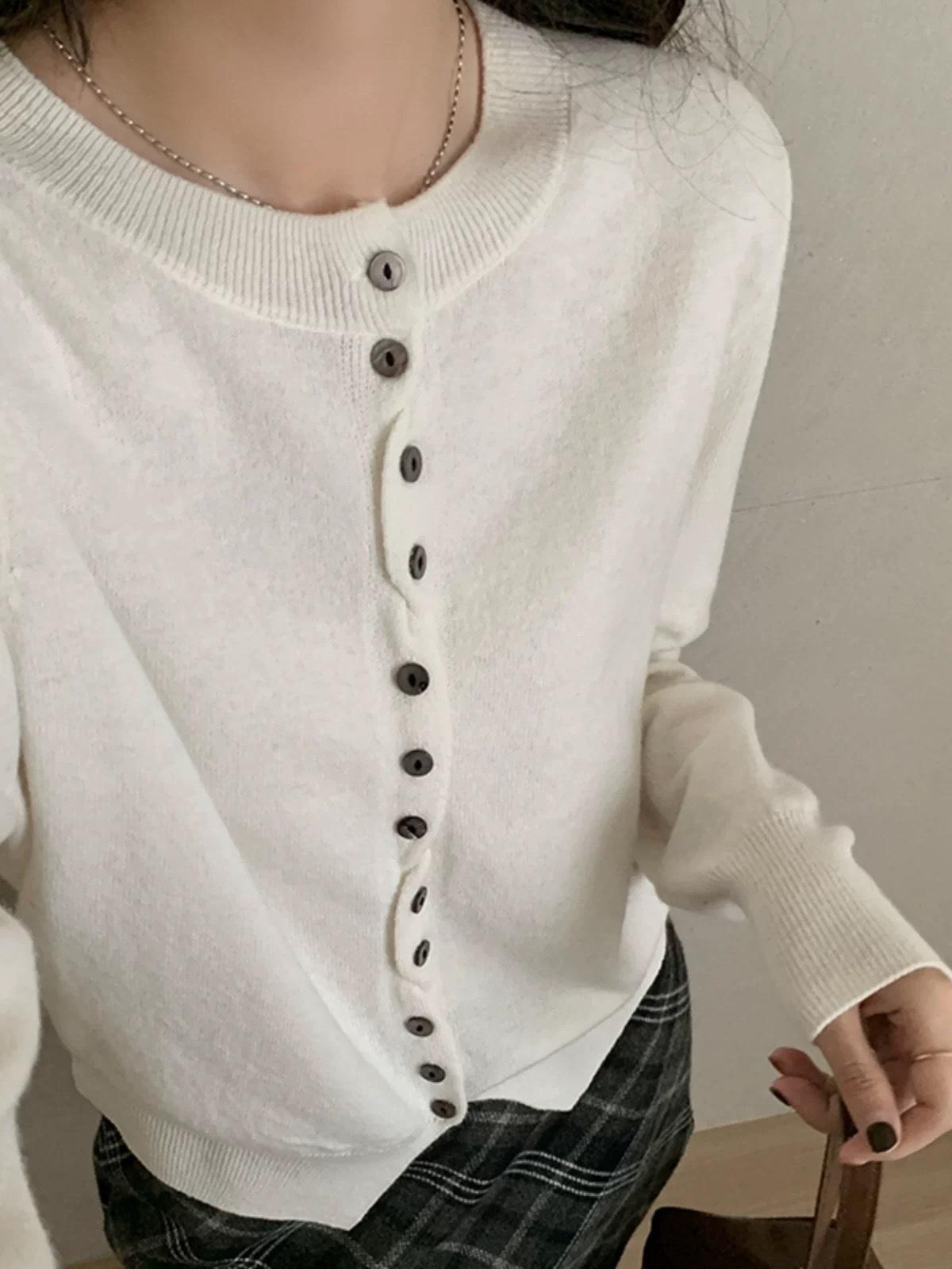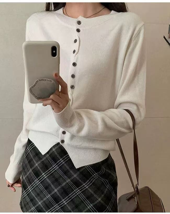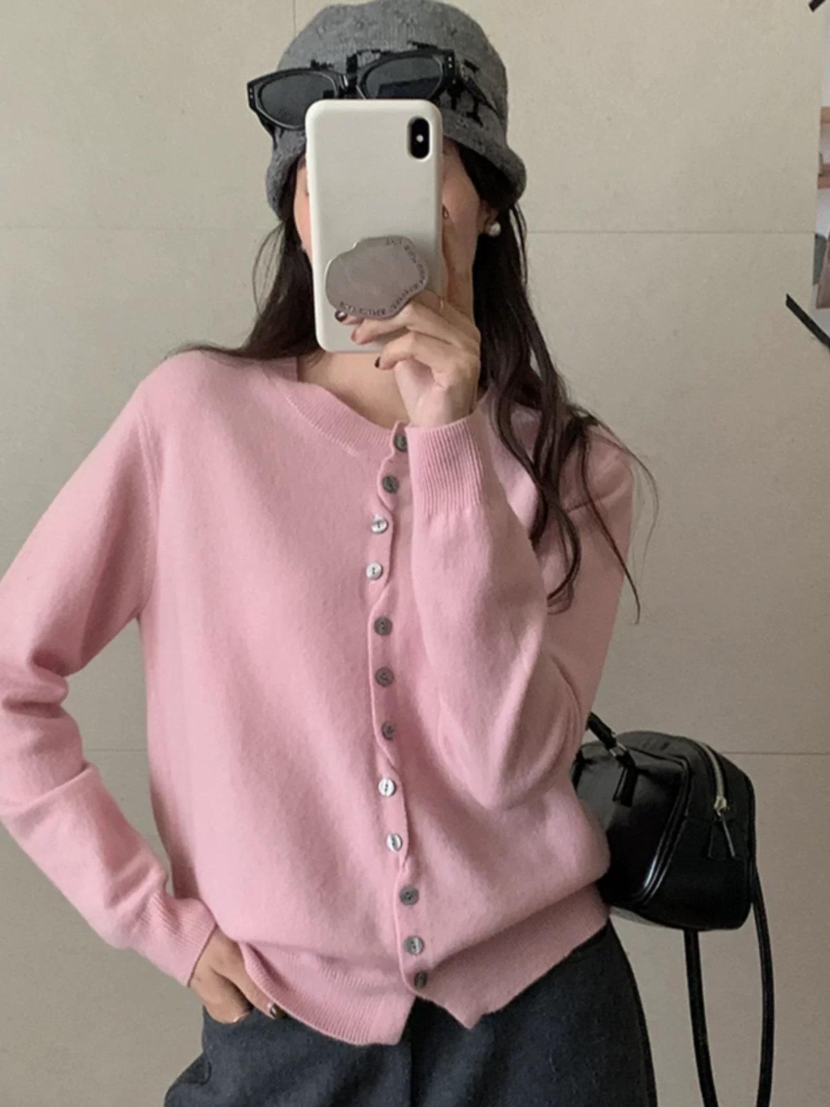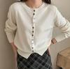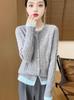 Cárdigan de Lana 100 Pura para Mujer Suéter de Punto Suave Abrigo de Cuello Redondo Otoño e Invierno Nuevo Estilo Coreano Capa Base Corta