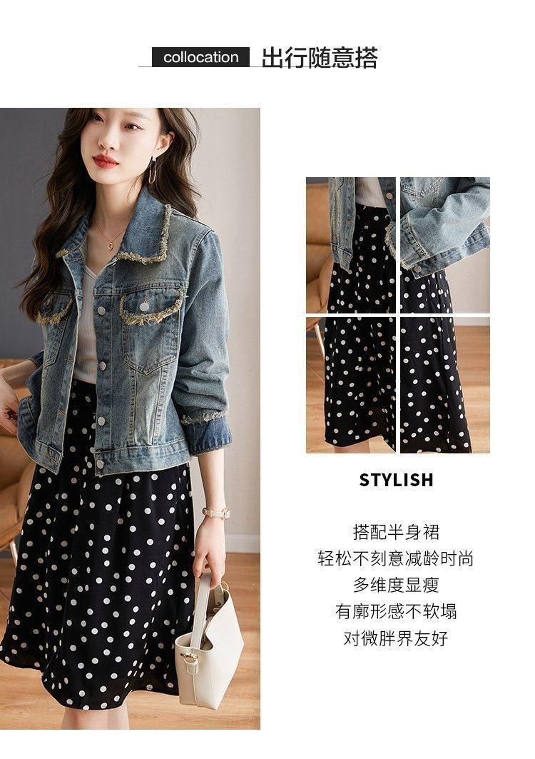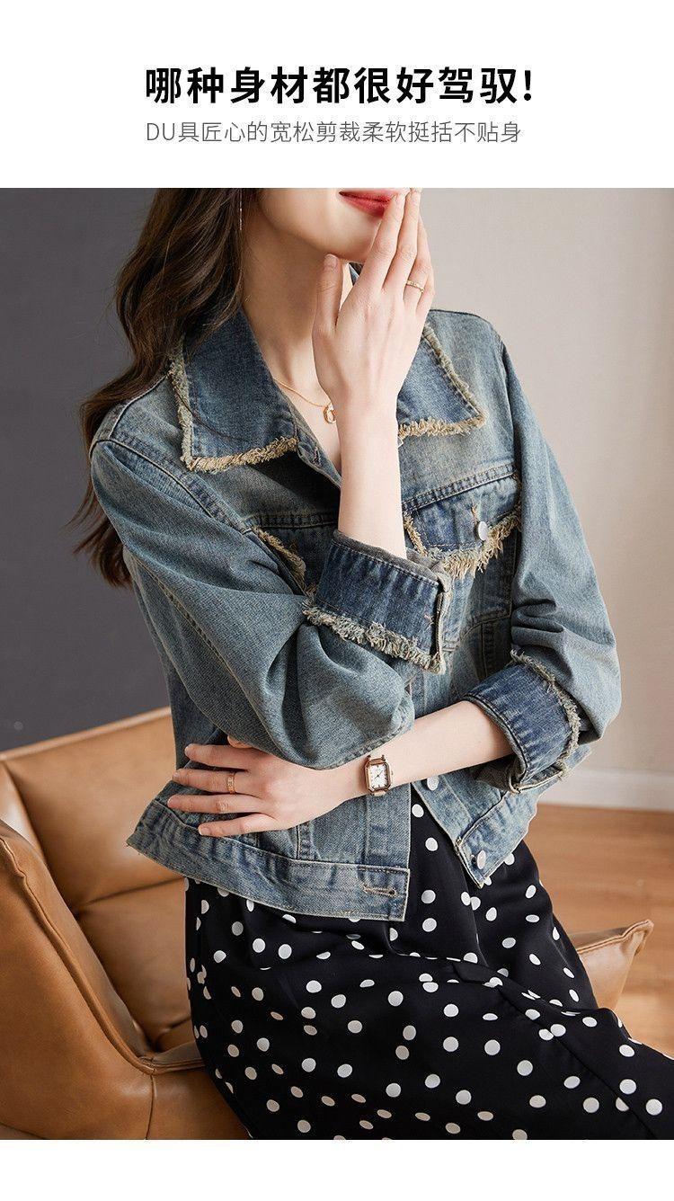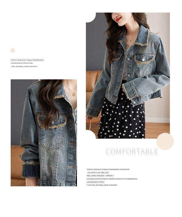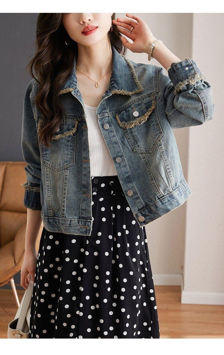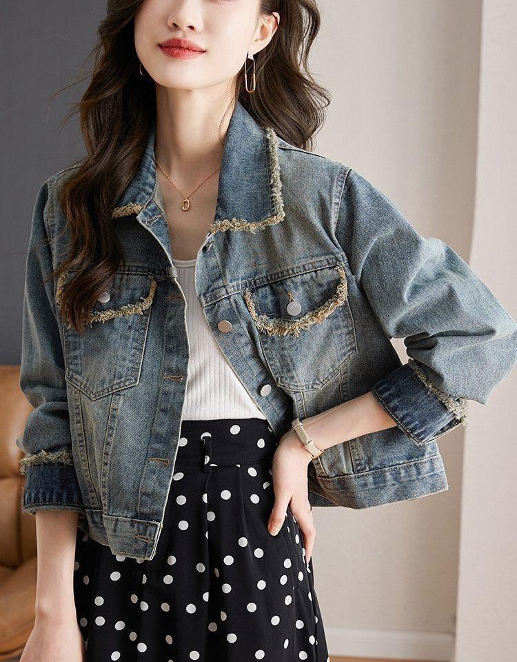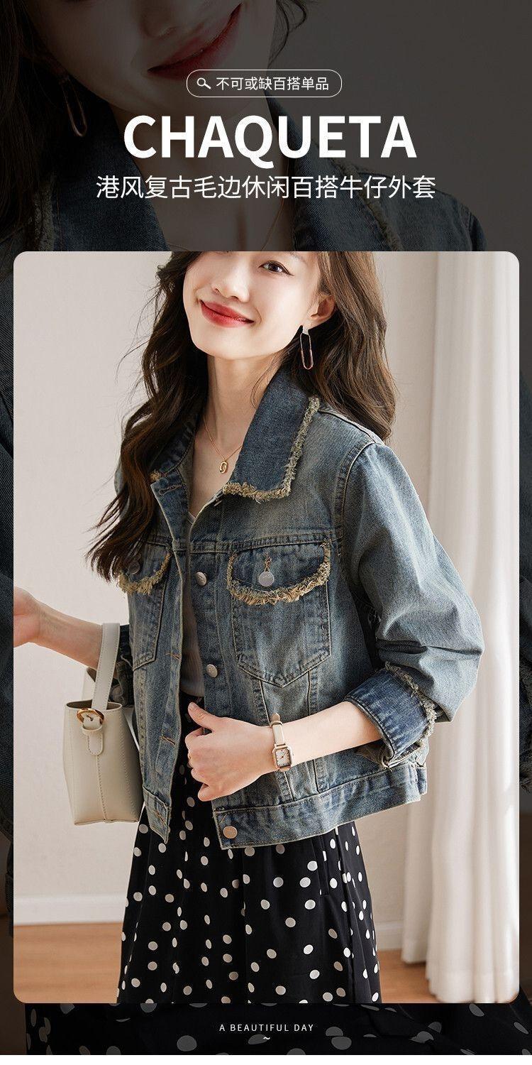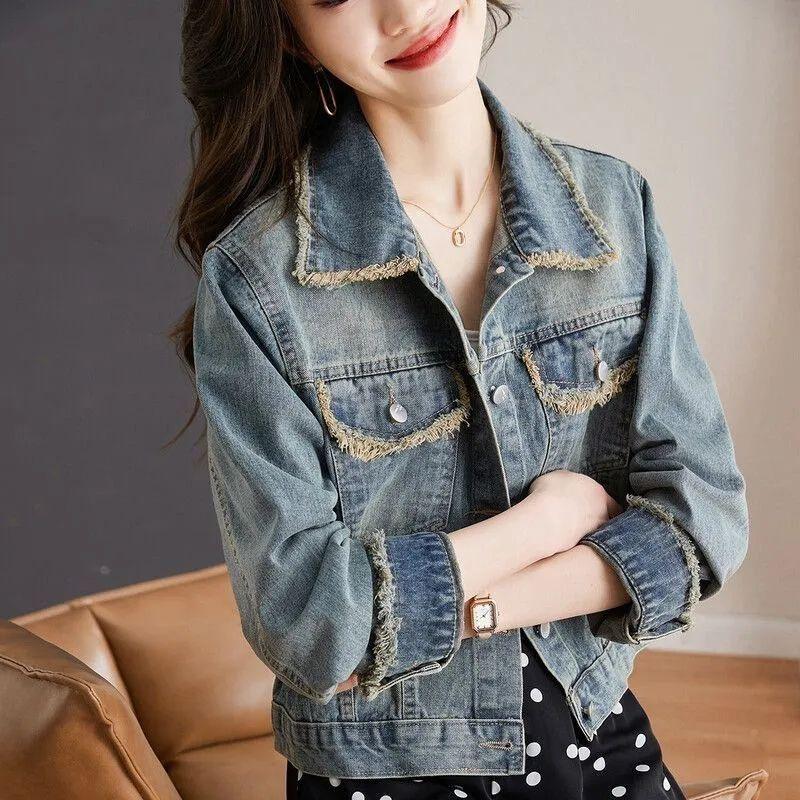 Chaqueta de mezclilla para mujer 2025 primavera y otoño nueva holgada versátil de cintura alta petite moderna con borde crudo top