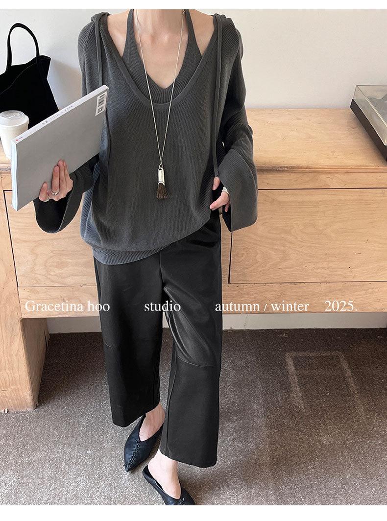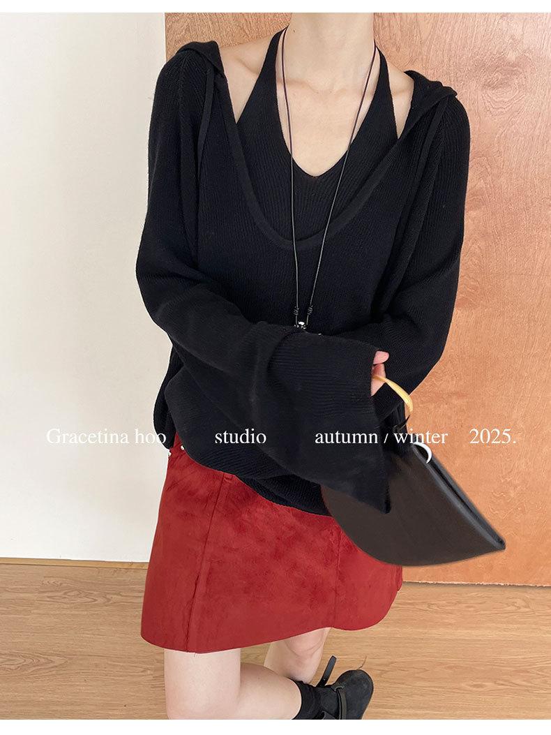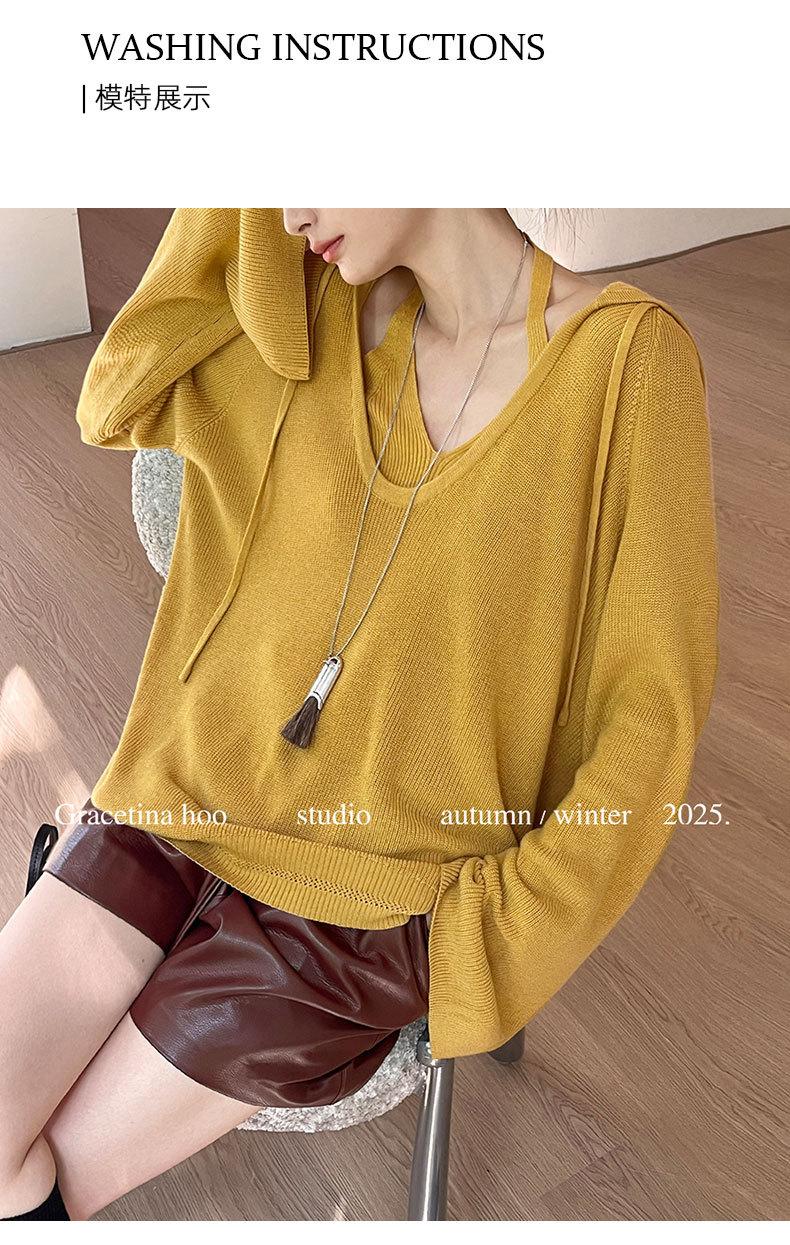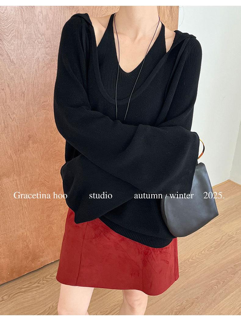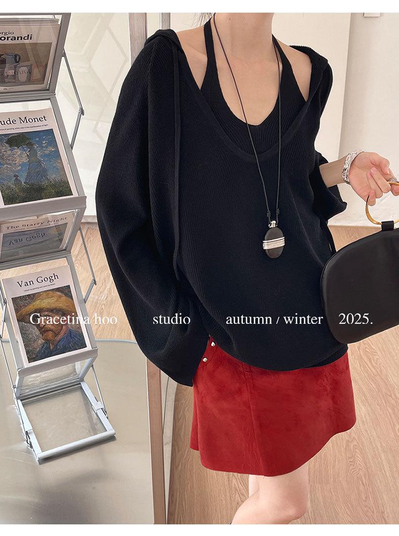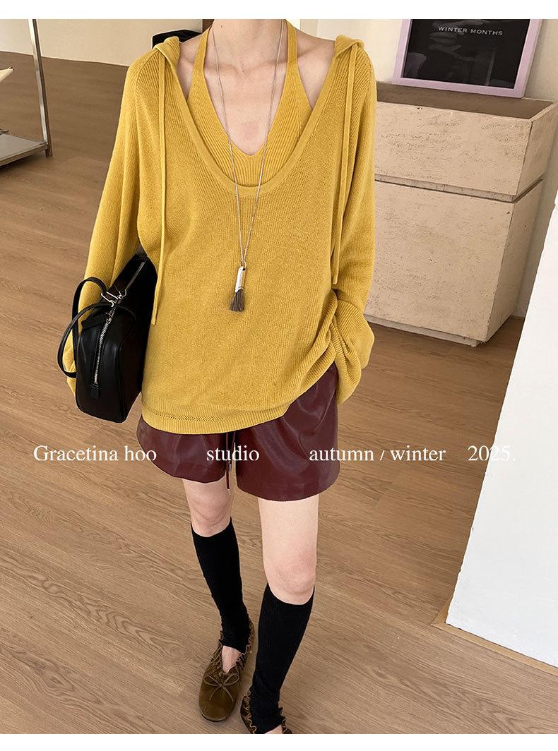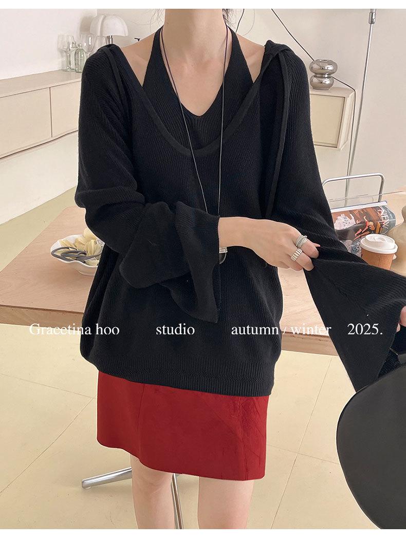 GRACETINAHOO Otoño Nuevo Lana Mercerizada Chaleco Halter Francés Versátil Conjunto de Punto con Capucha ZC6121