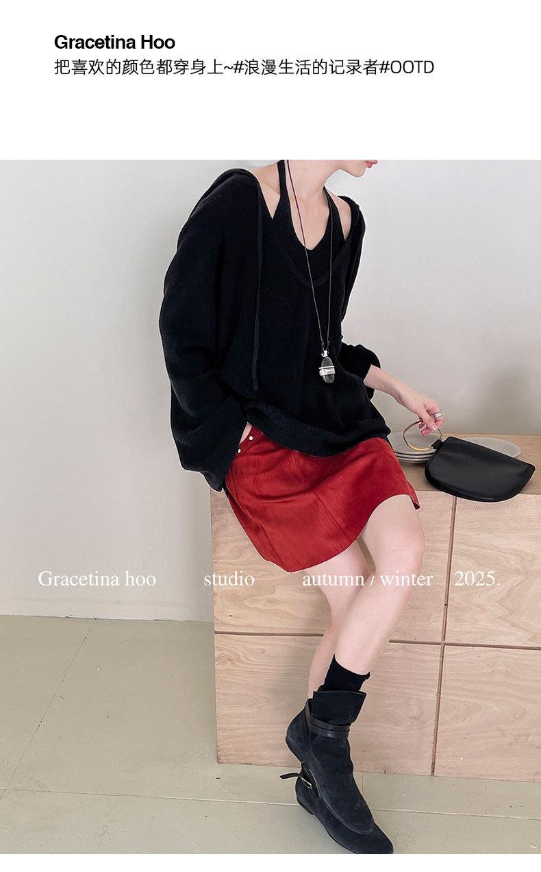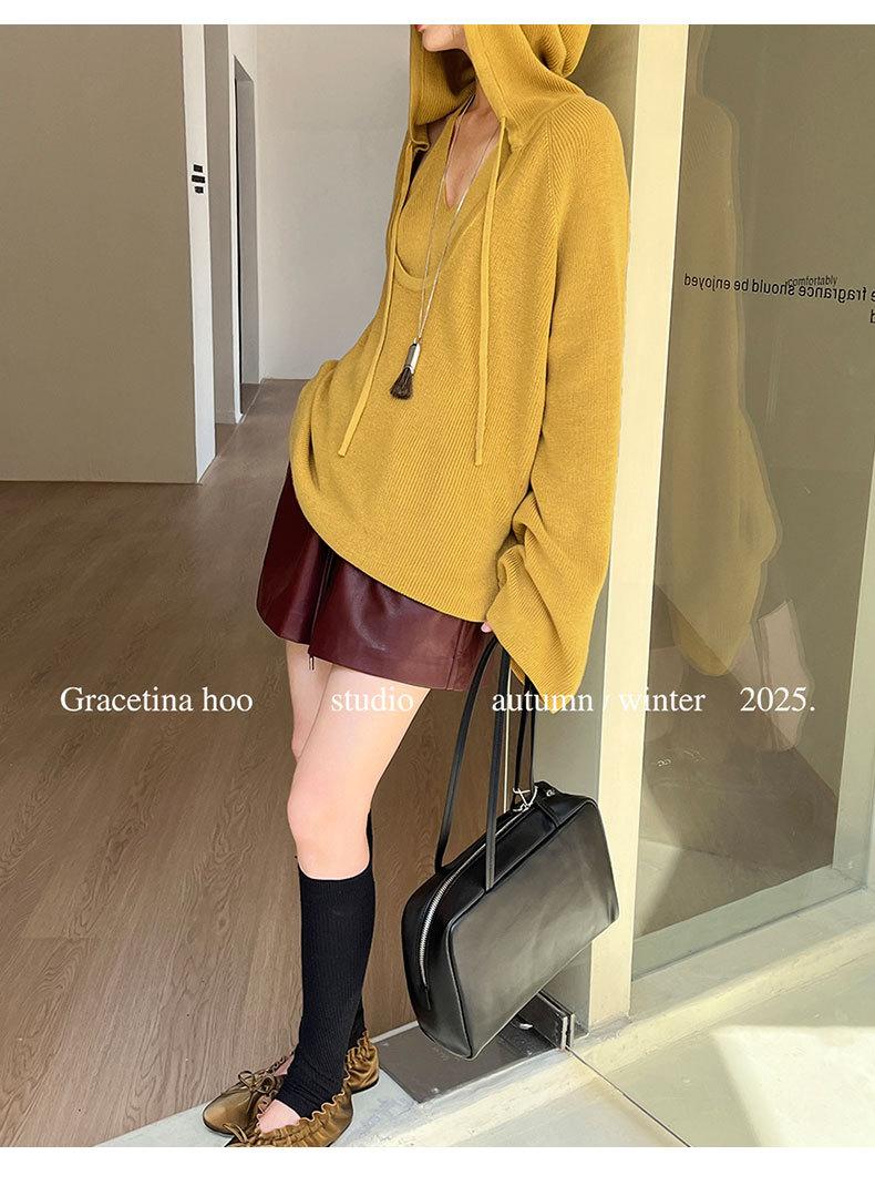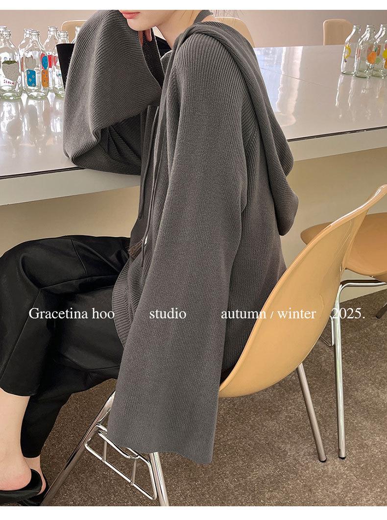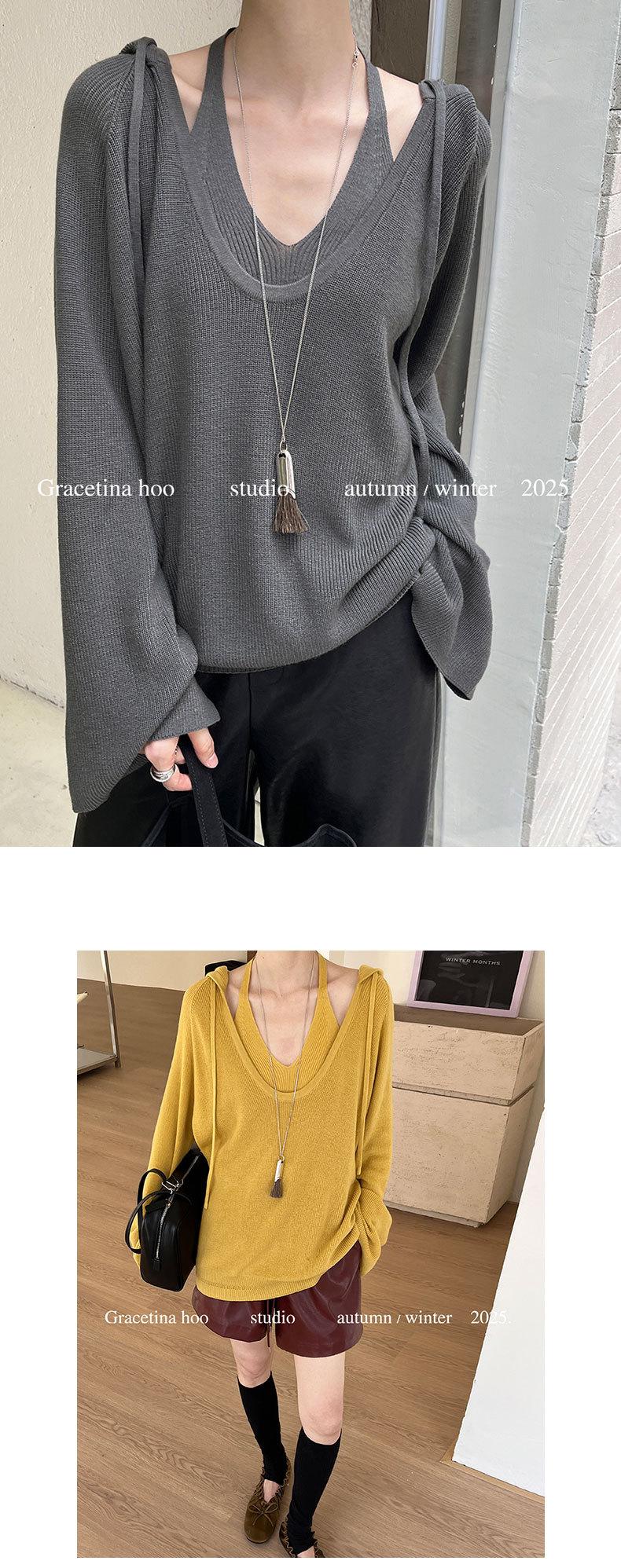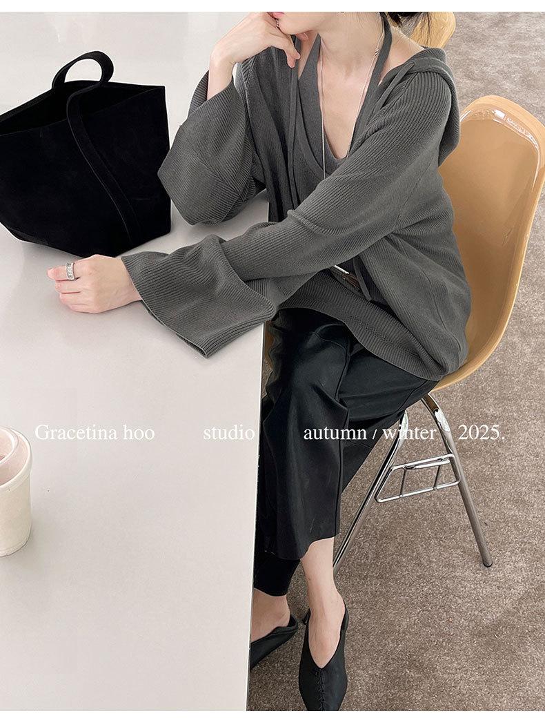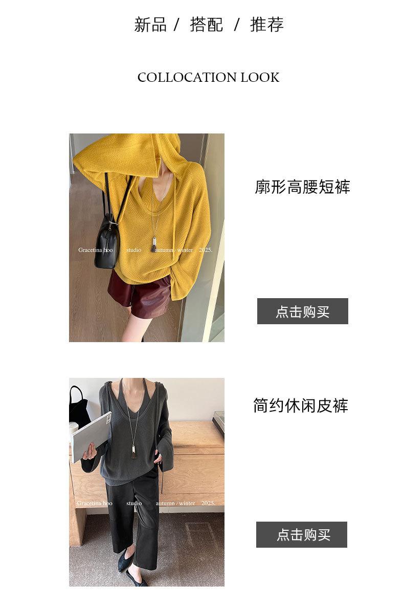 GRACETINAHOO Otoño Nuevo Lana Mercerizada Chaleco Halter Francés Versátil Conjunto de Punto con Capucha ZC6121