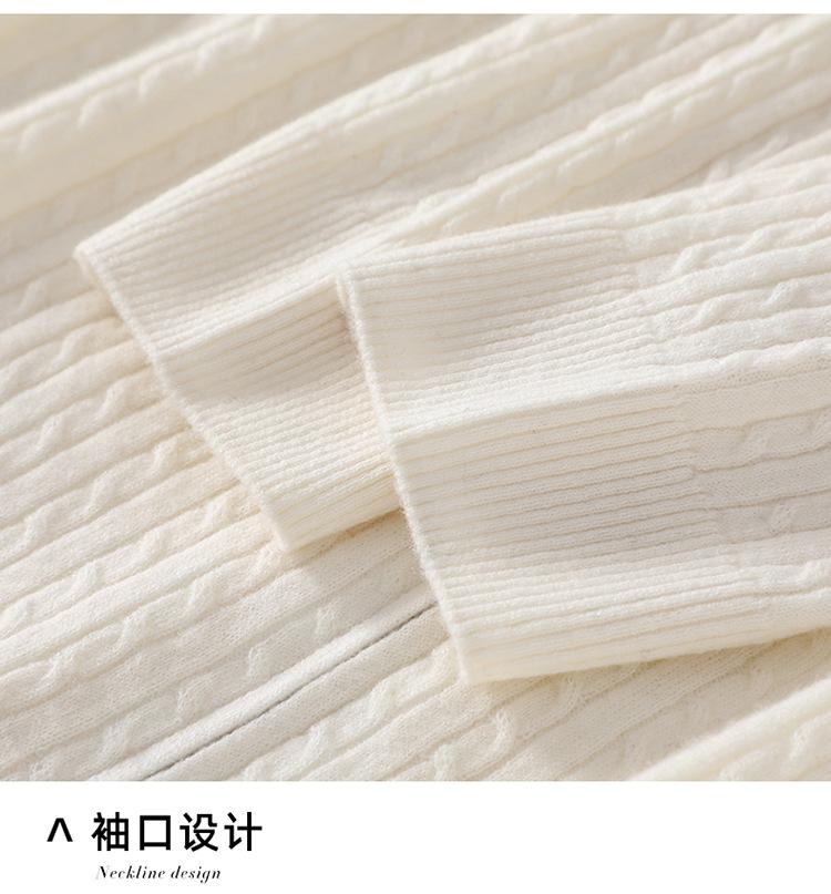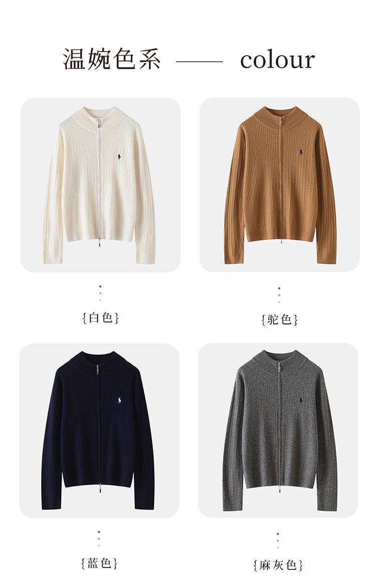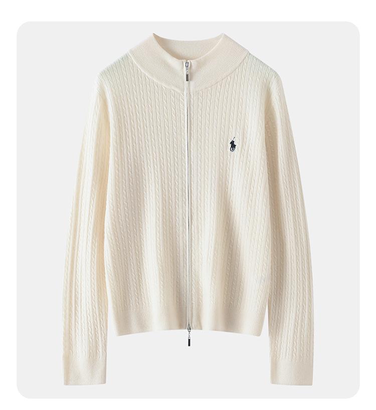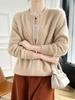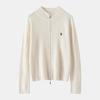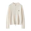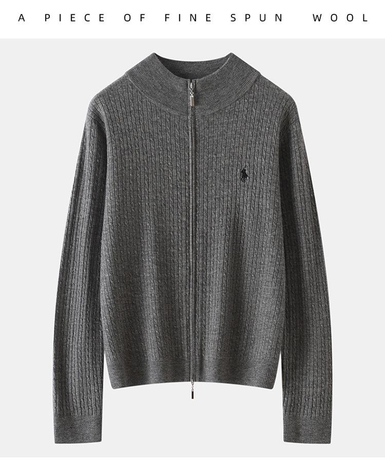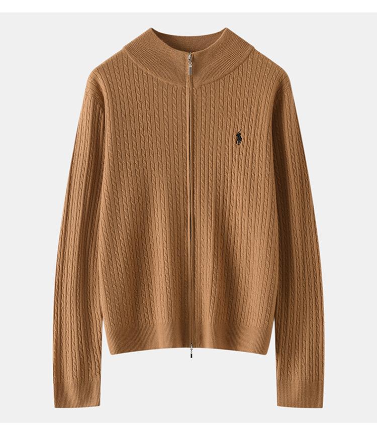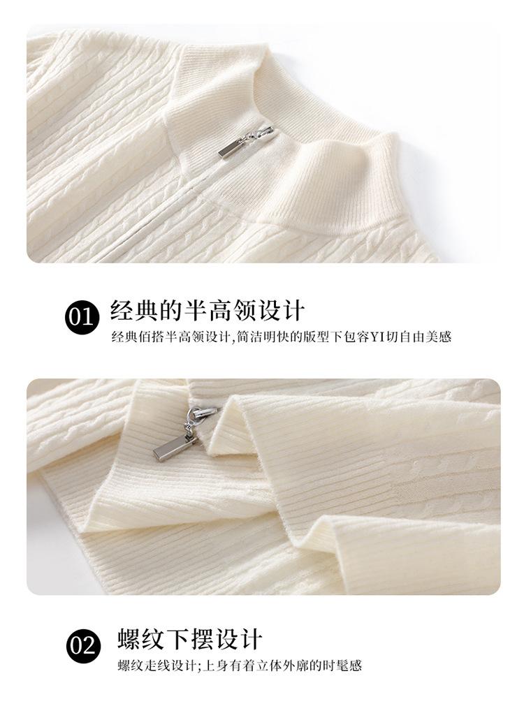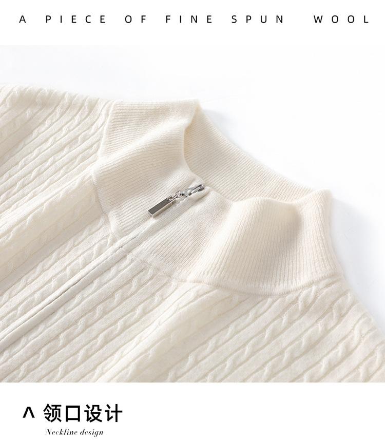 Cárdigan de Punto Trenzado de Otoño Temprano 100% Lana Virgen Extrafina con Cuello Mao y Doble Cremallera para Mujer, Suéter Tejido Delgado Bordado