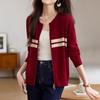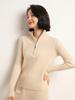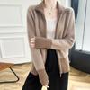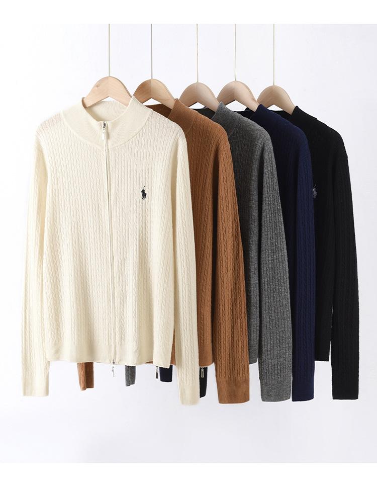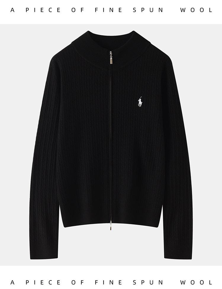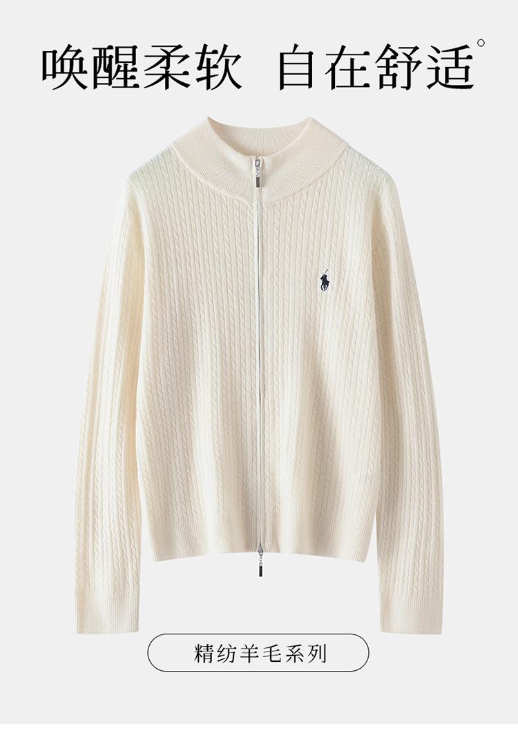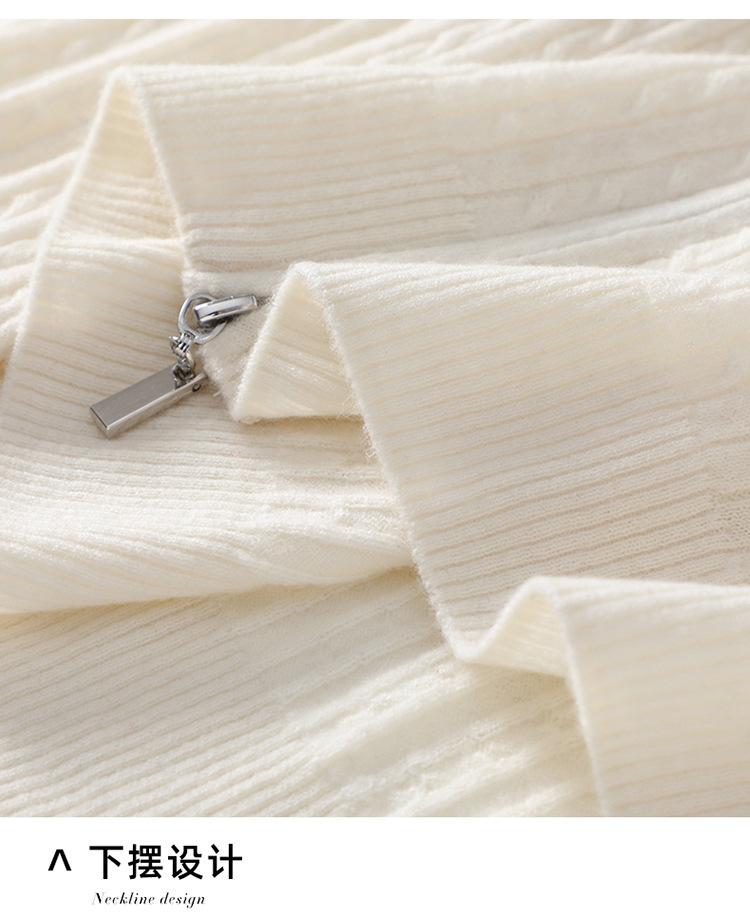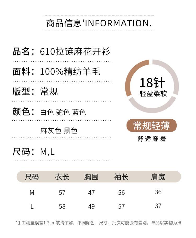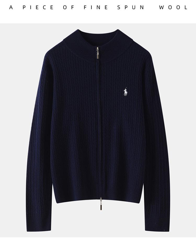 Cárdigan de Punto Trenzado de Otoño Temprano 100% Lana Virgen Extrafina con Cuello Mao y Doble Cremallera para Mujer, Suéter Tejido Delgado Bordado