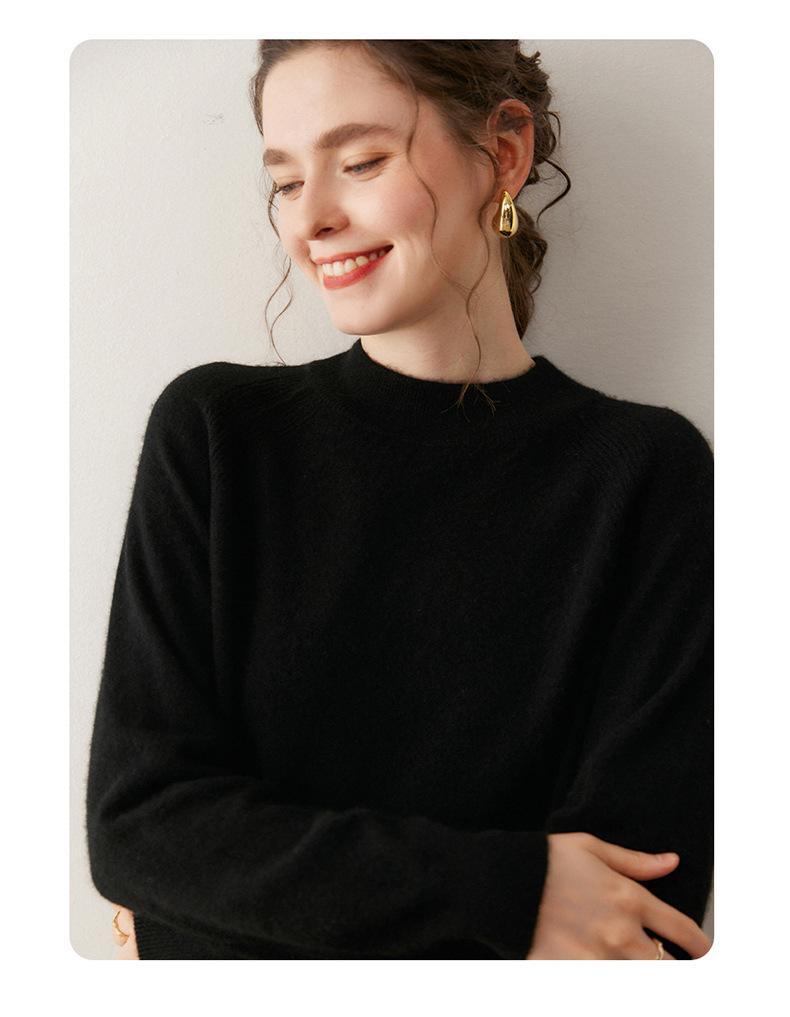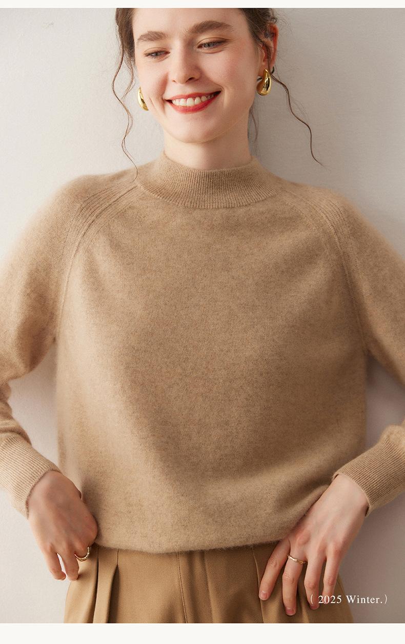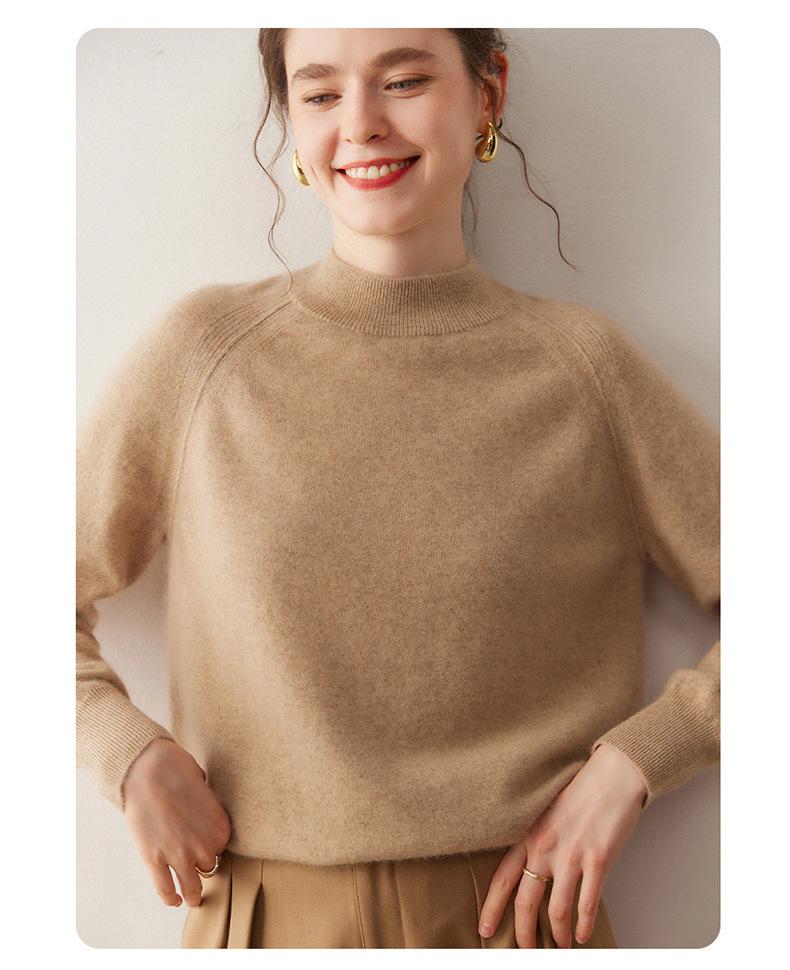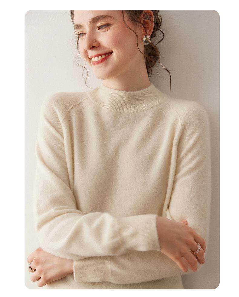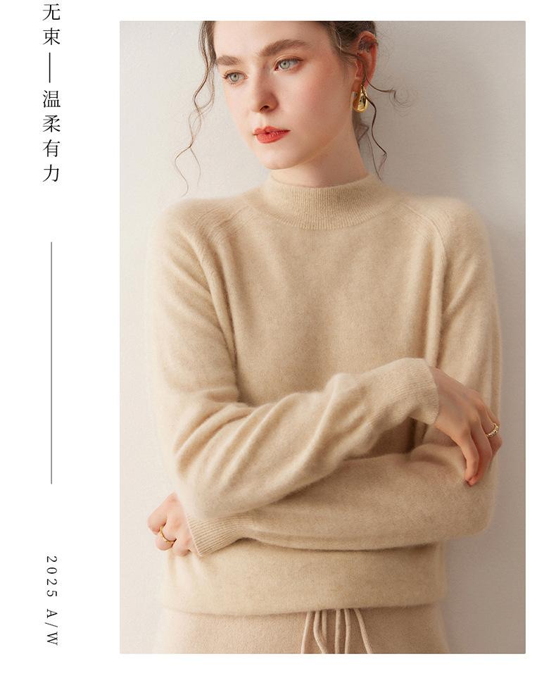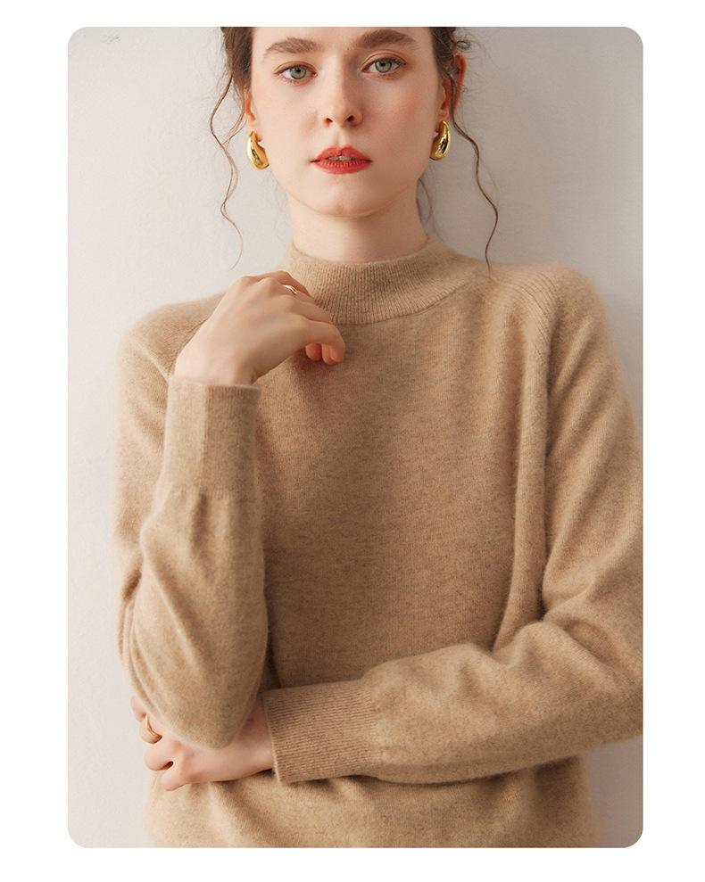 Nuevo Otoño/Invierno Estilo Coreano Cuello Semi-Alto Estilo Lazy Manga Larga Suéter Holgado Tejido de Cachemira Ropa Interior de Lana para Mujer
