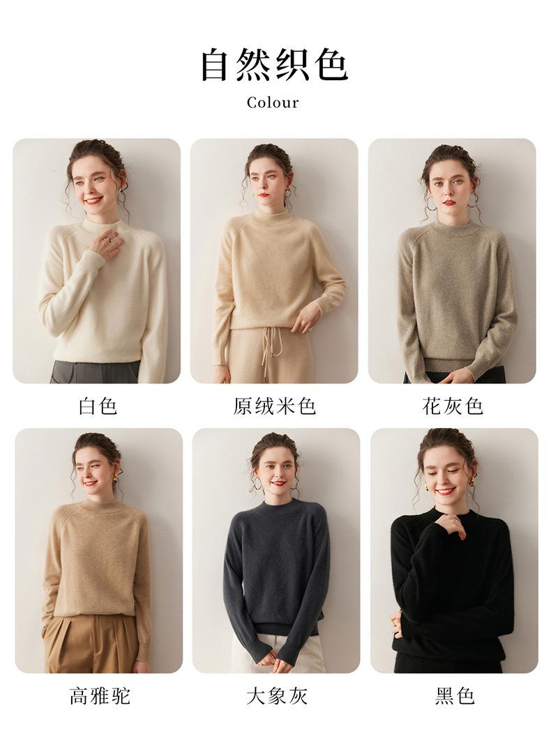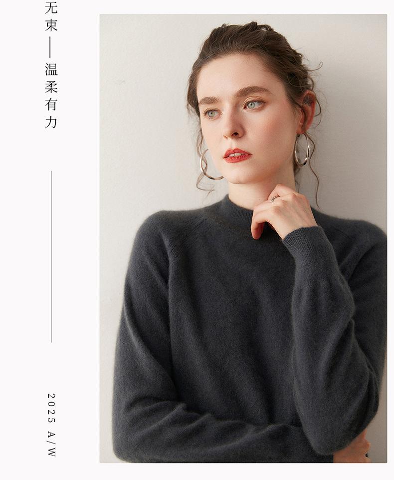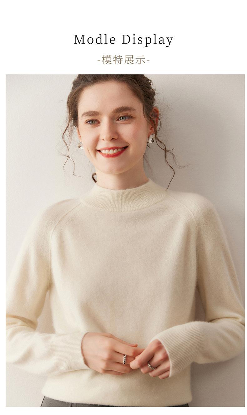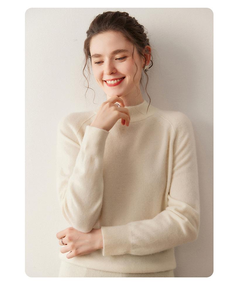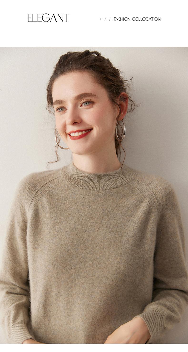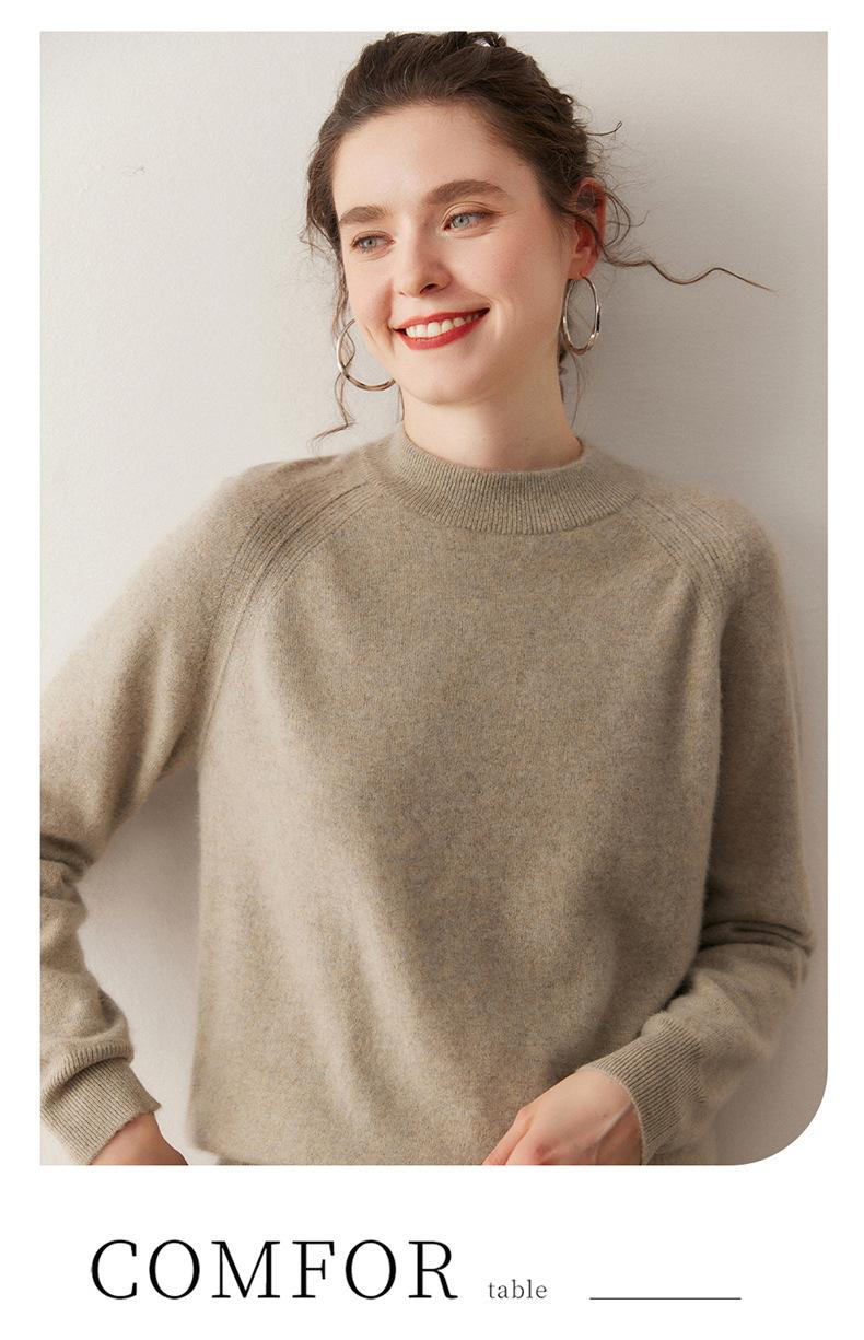 Nuevo Otoño/Invierno Estilo Coreano Cuello Semi-Alto Estilo Lazy Manga Larga Suéter Holgado Tejido de Cachemira Ropa Interior de Lana para Mujer