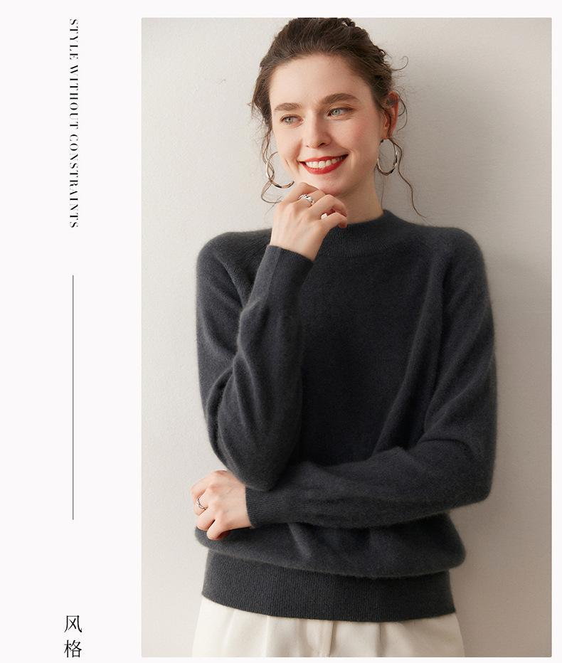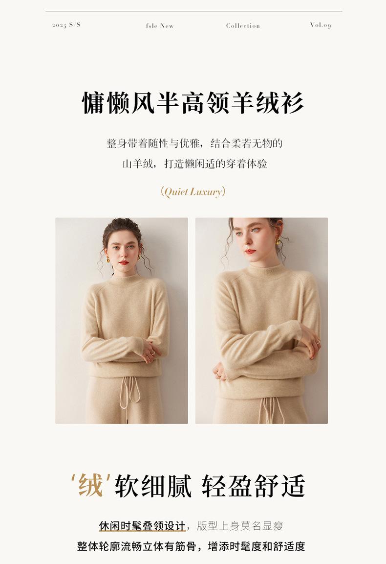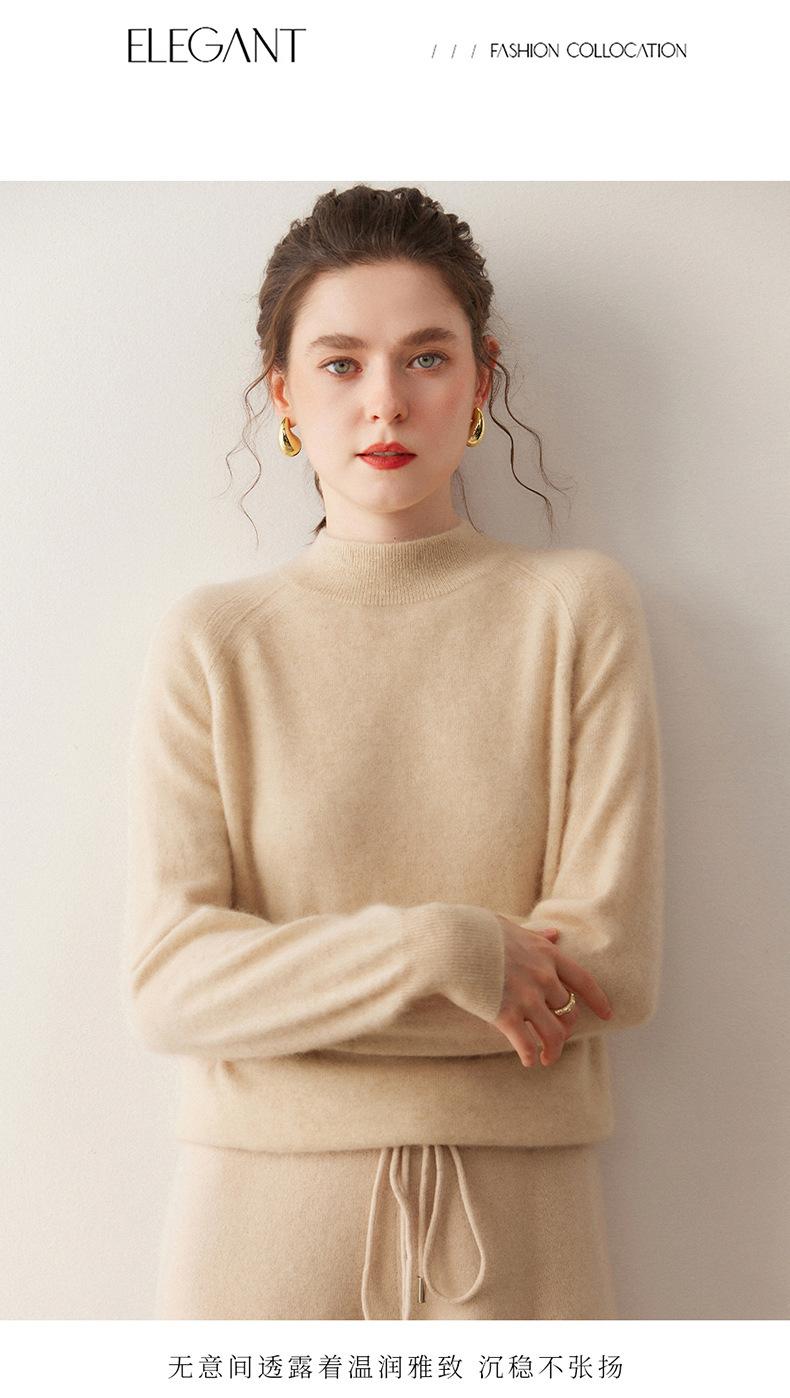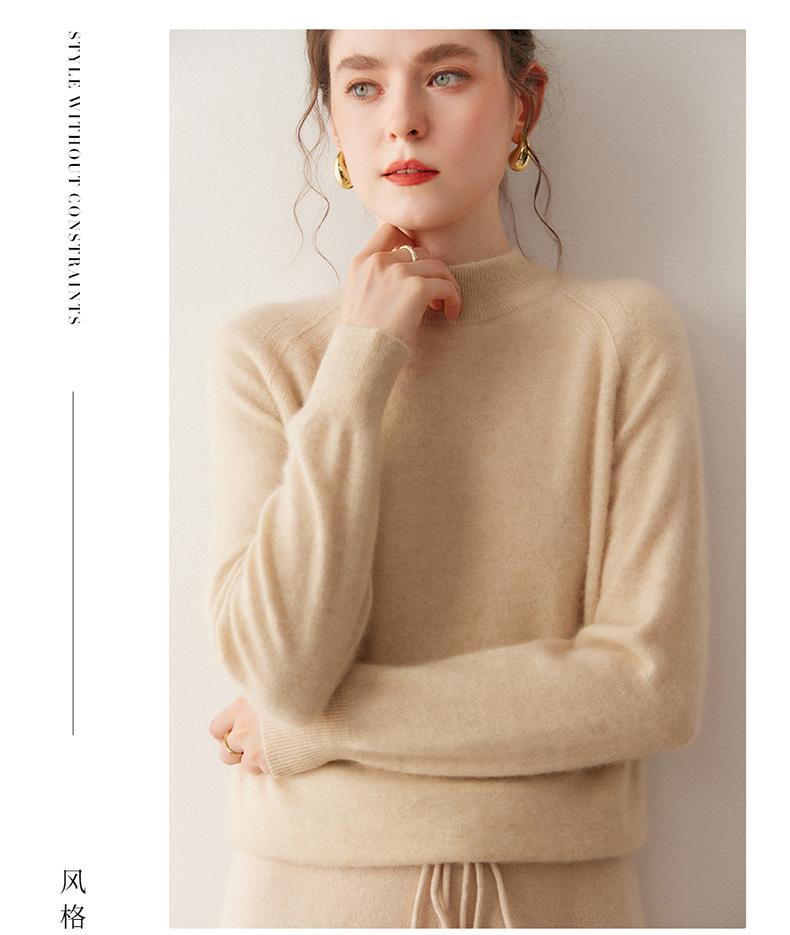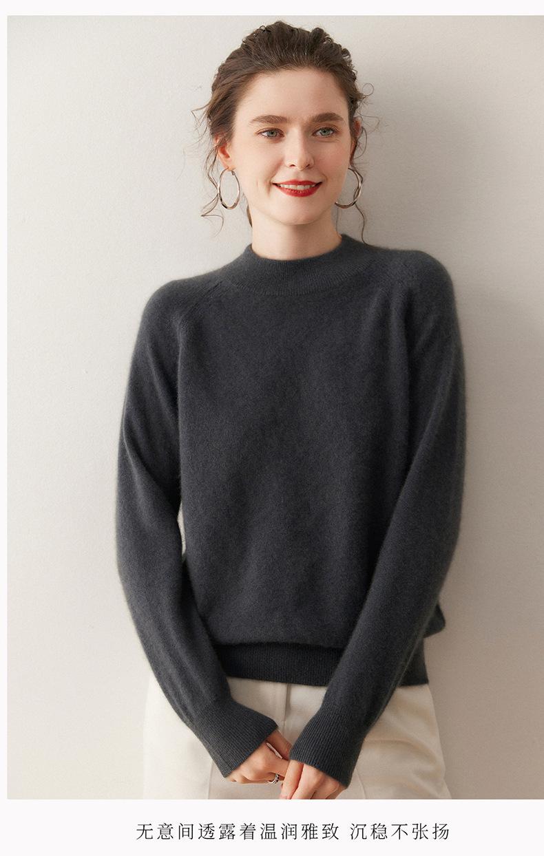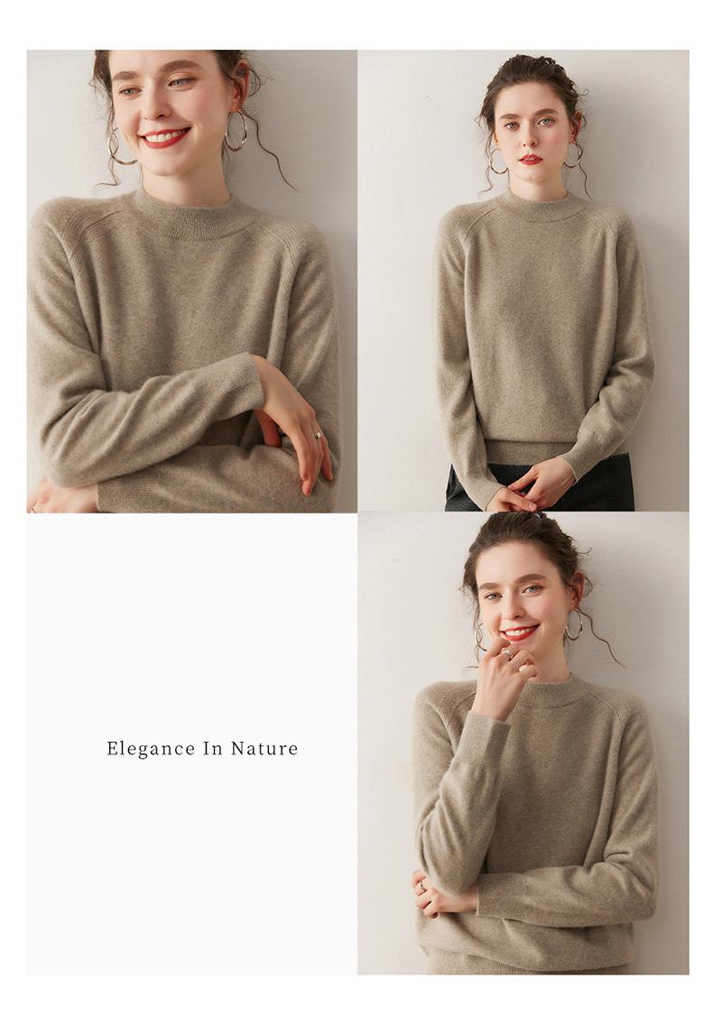 Nuevo Otoño/Invierno Estilo Coreano Cuello Semi-Alto Estilo Lazy Manga Larga Suéter Holgado Tejido de Cachemira Ropa Interior de Lana para Mujer