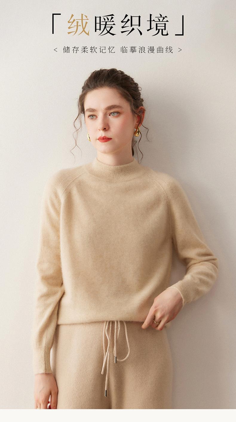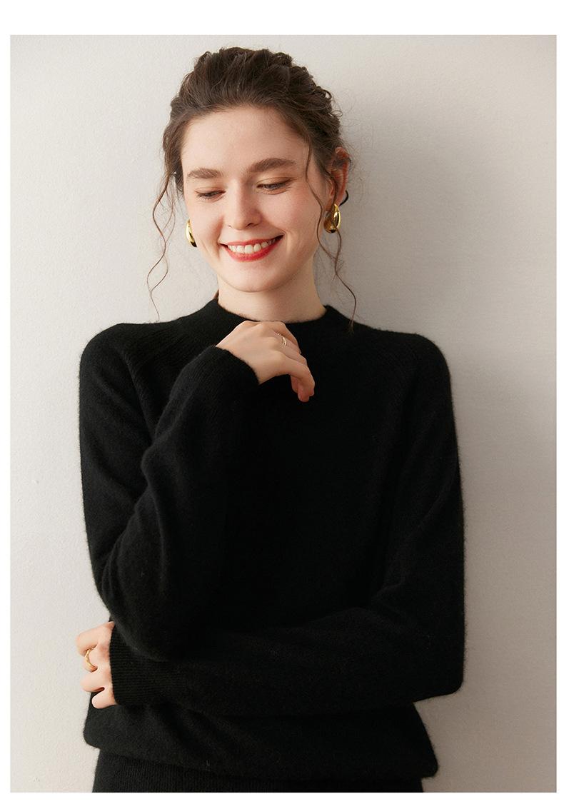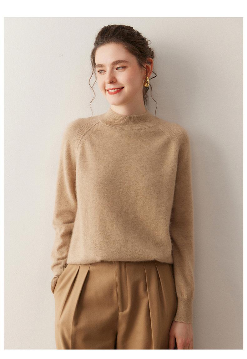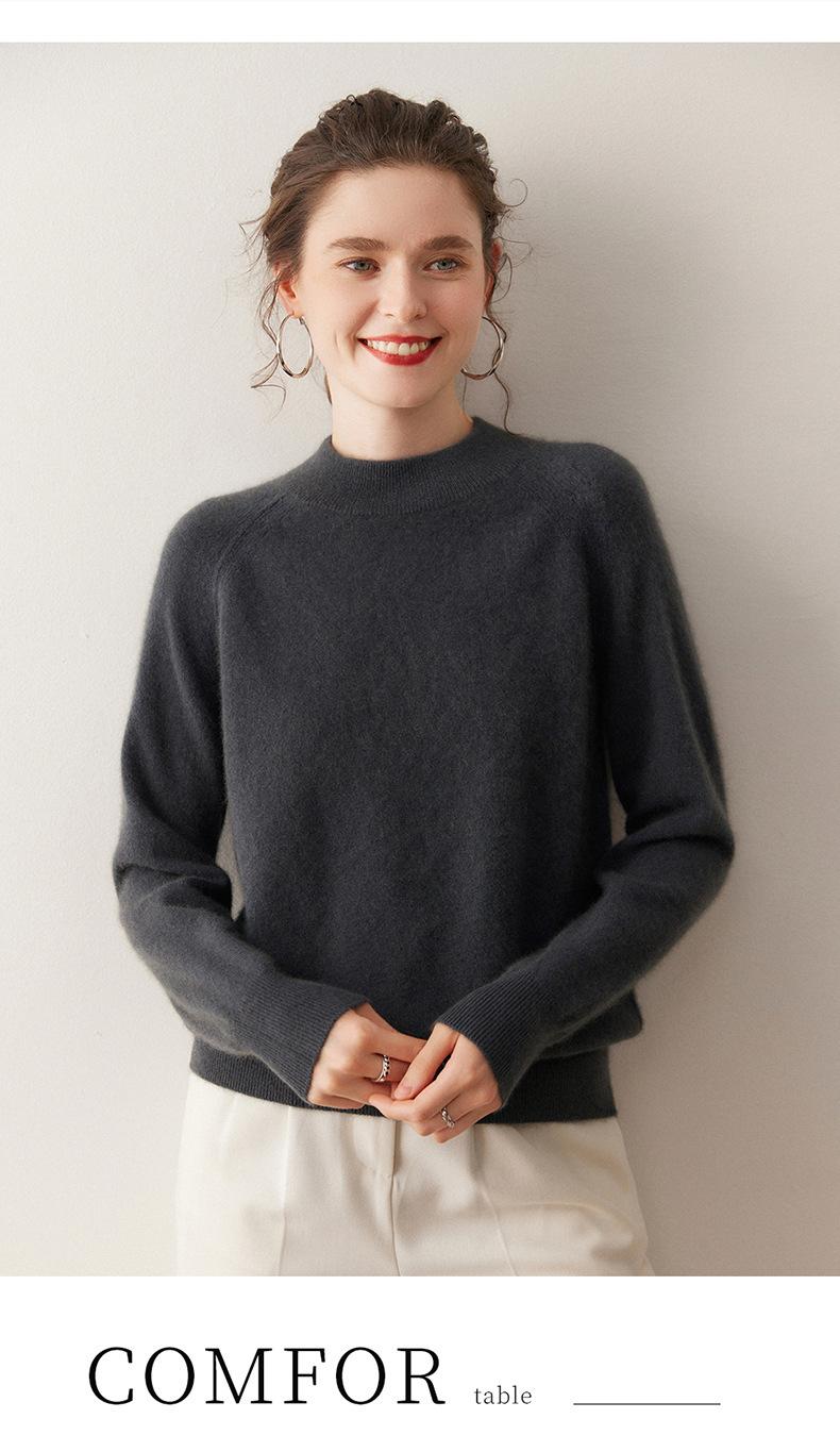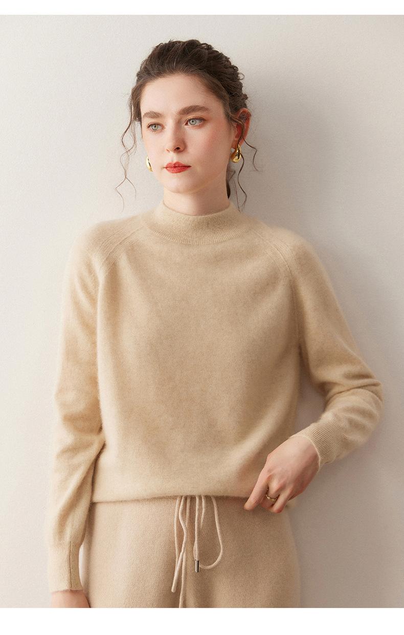 Nuevo Otoño/Invierno Estilo Coreano Cuello Semi-Alto Estilo Lazy Manga Larga Suéter Holgado Tejido de Cachemira Ropa Interior de Lana para Mujer