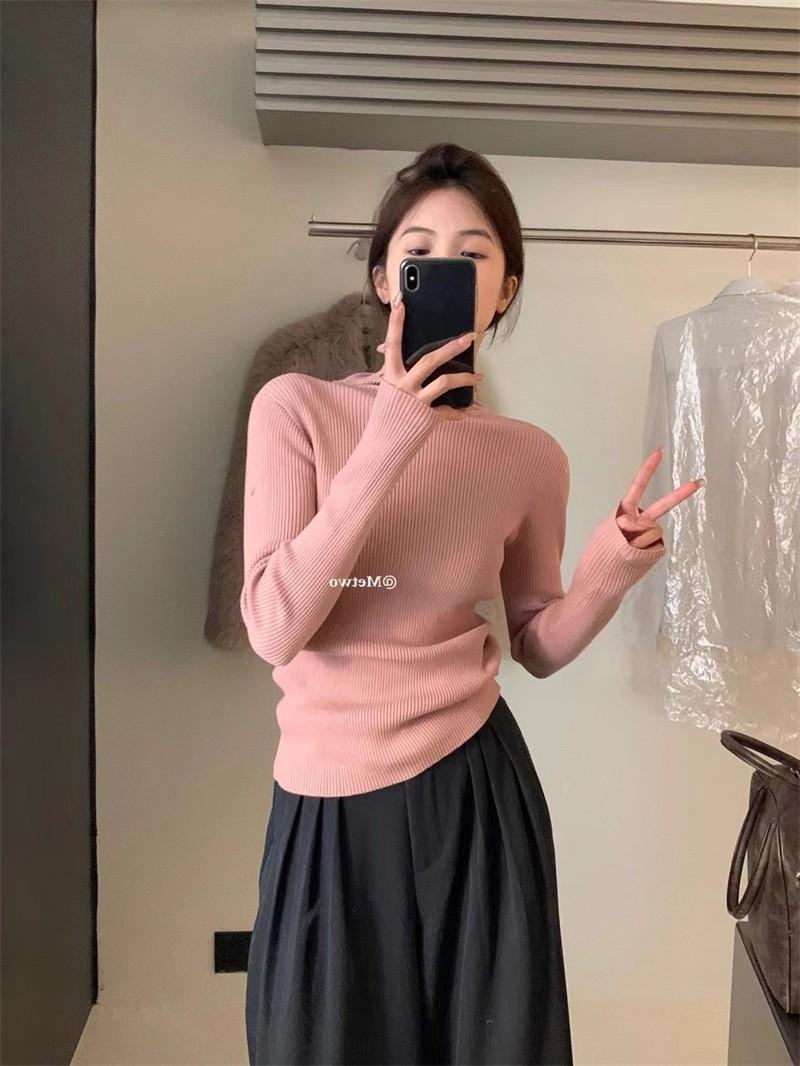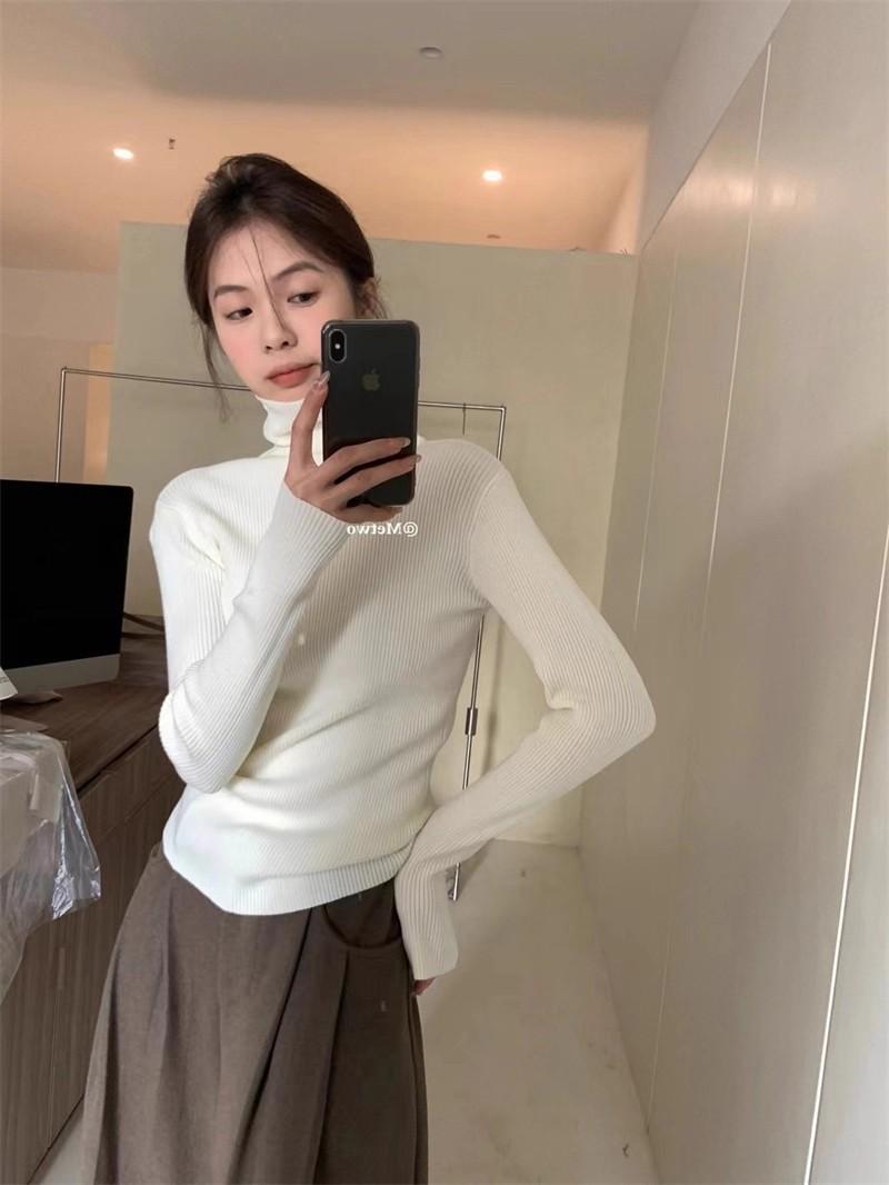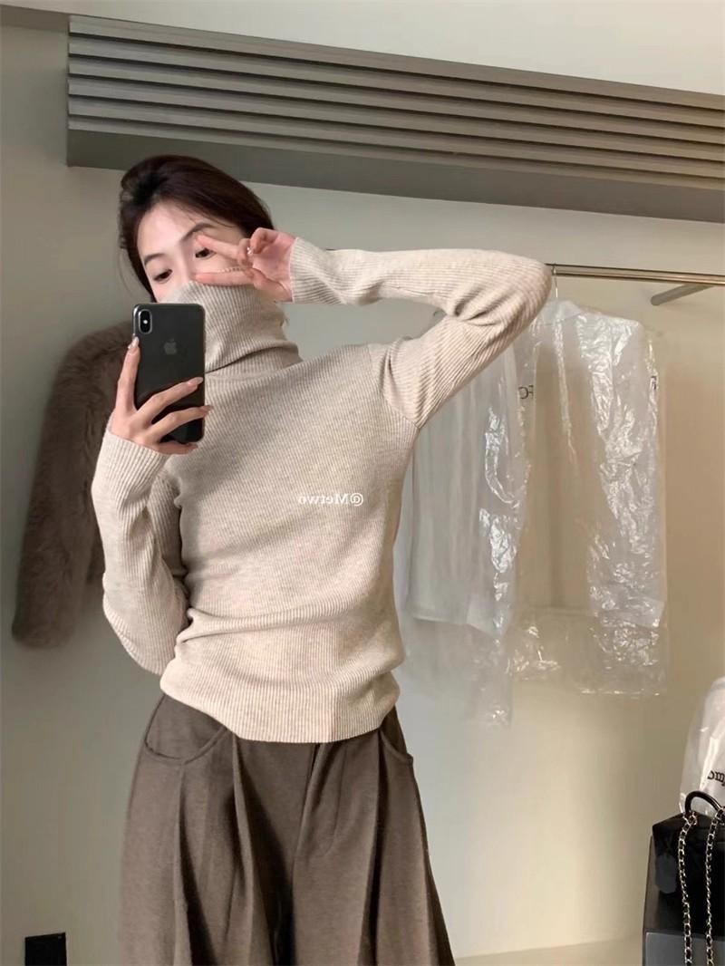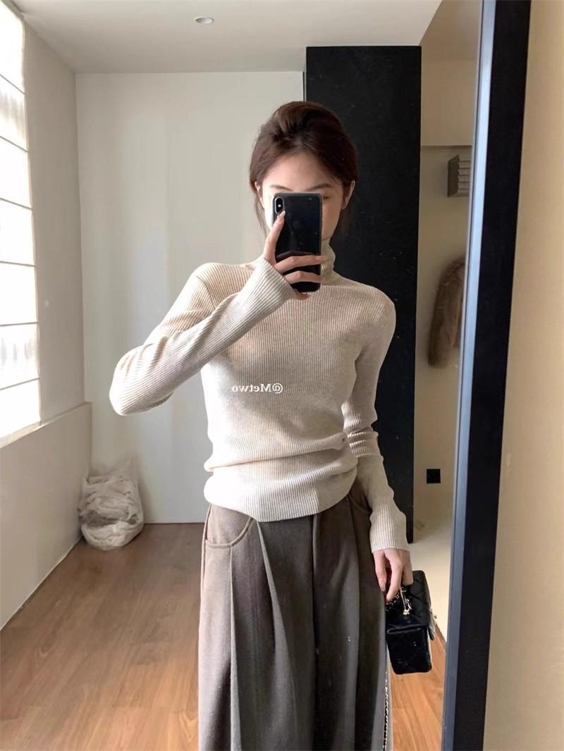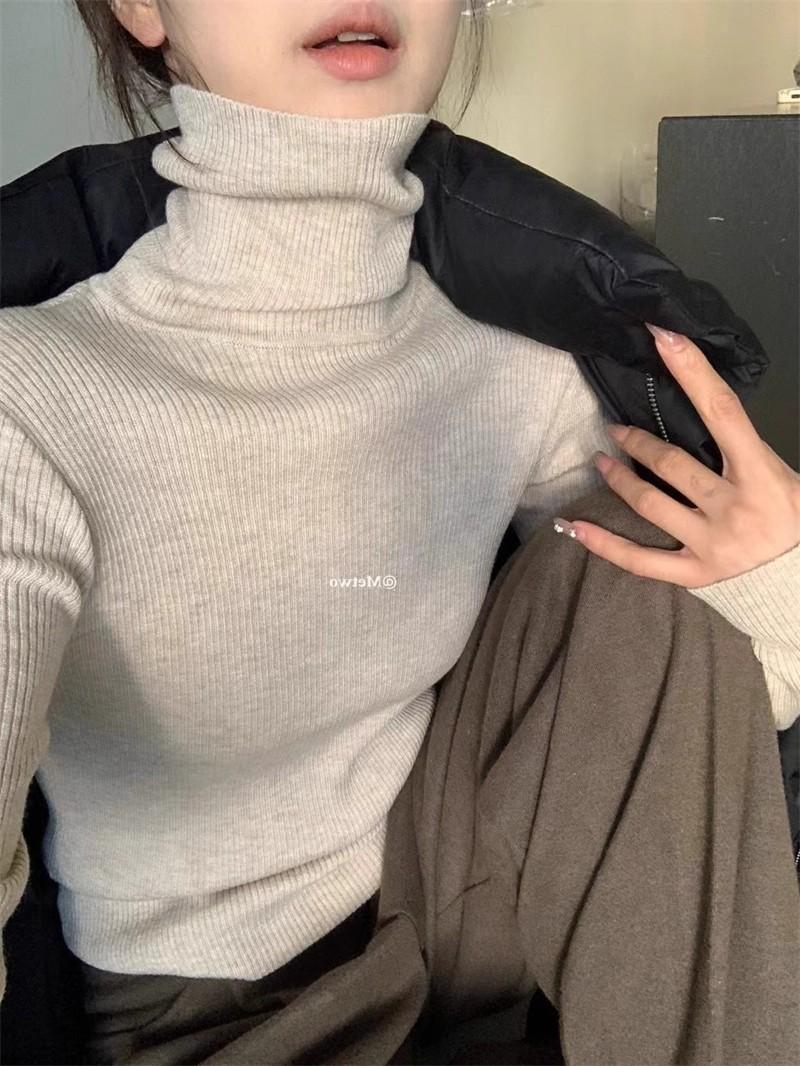 Estilo Coreano Cuello Alto Tejido Suave Capa Base Abrigo de Otoño/Invierno para Mujer Ropa Interior Suéter de Cuello Tortuga Top Adelgazante