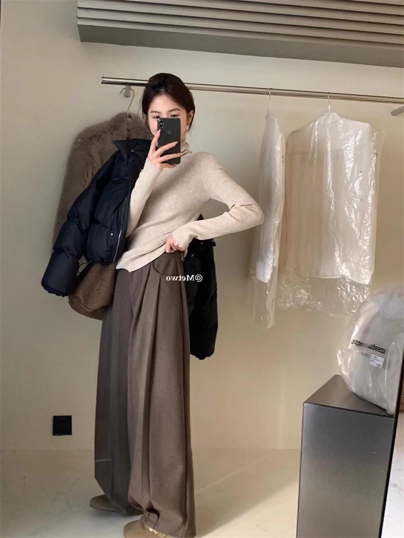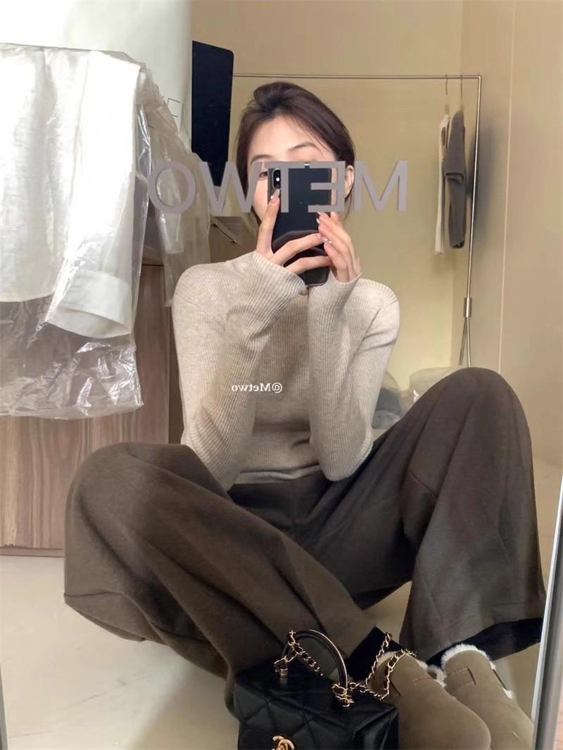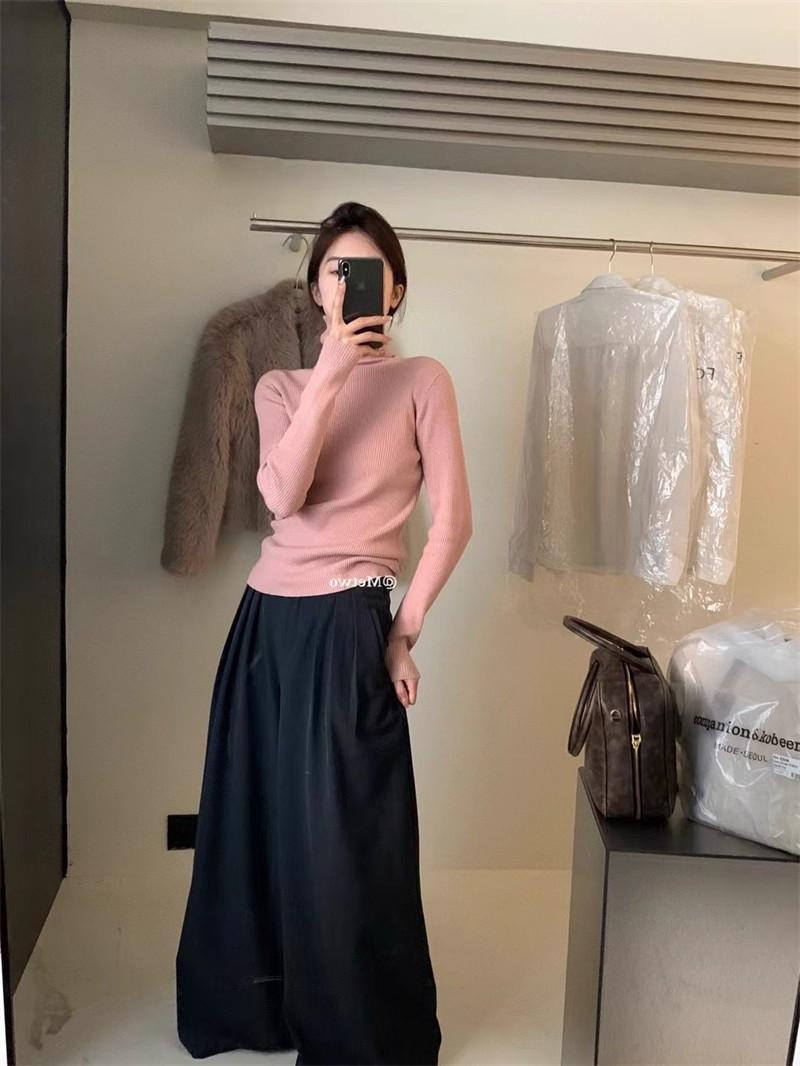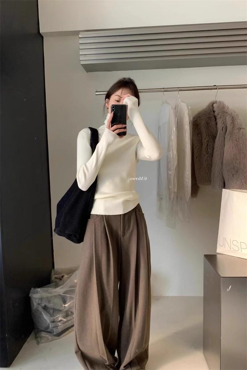 Estilo Coreano Cuello Alto Tejido Suave Capa Base Abrigo de Otoño/Invierno para Mujer Ropa Interior Suéter de Cuello Tortuga Top Adelgazante
