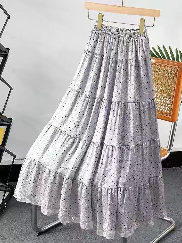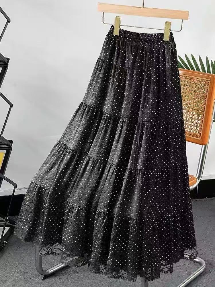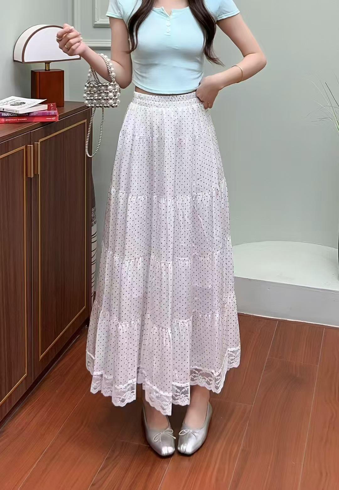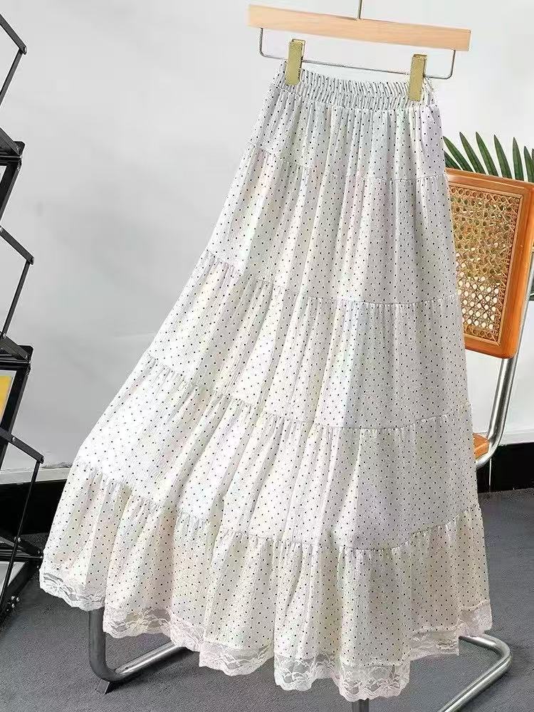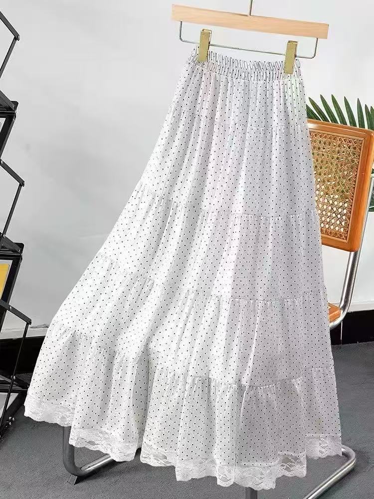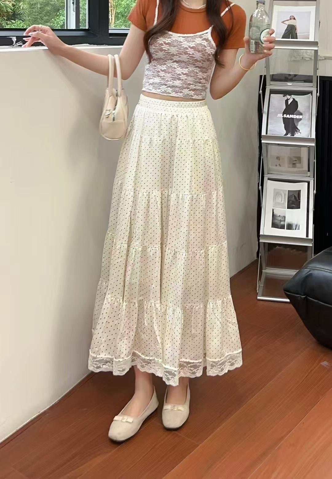 2025 Nueva Falda Versátil de Verano Falda de Pastel para Mujer Falda de Hada Falda de Encaje Falda A-Line Petite Falda Larga