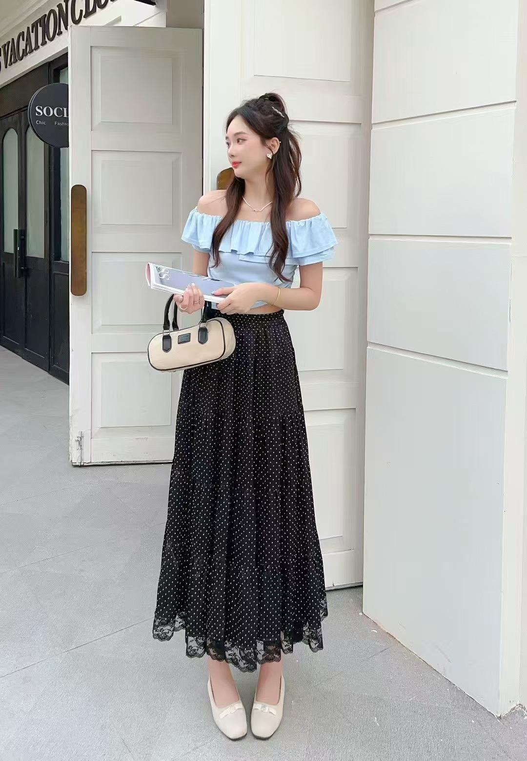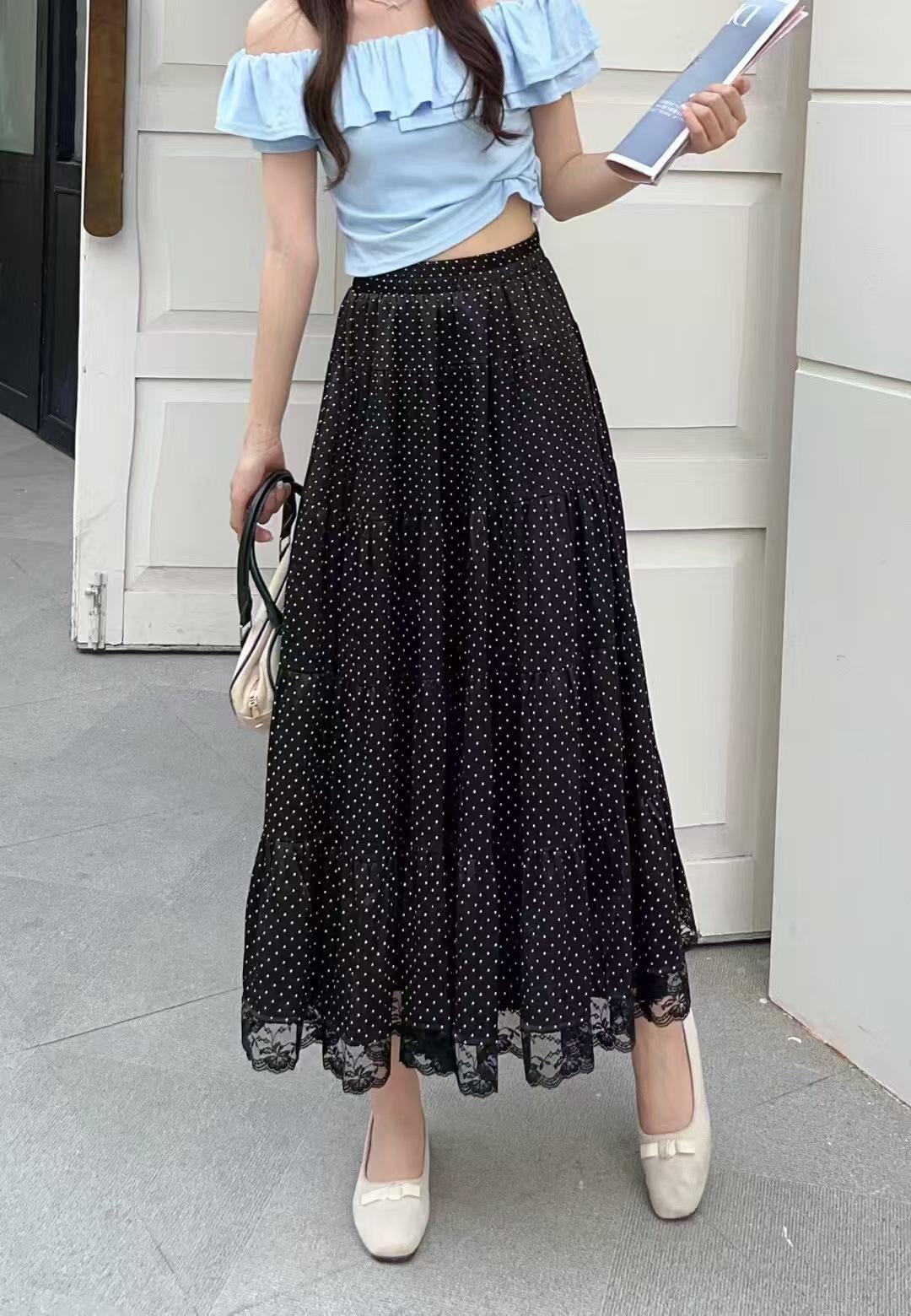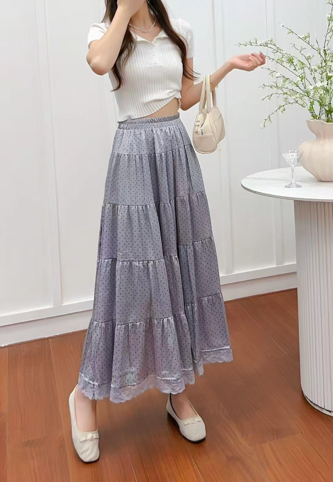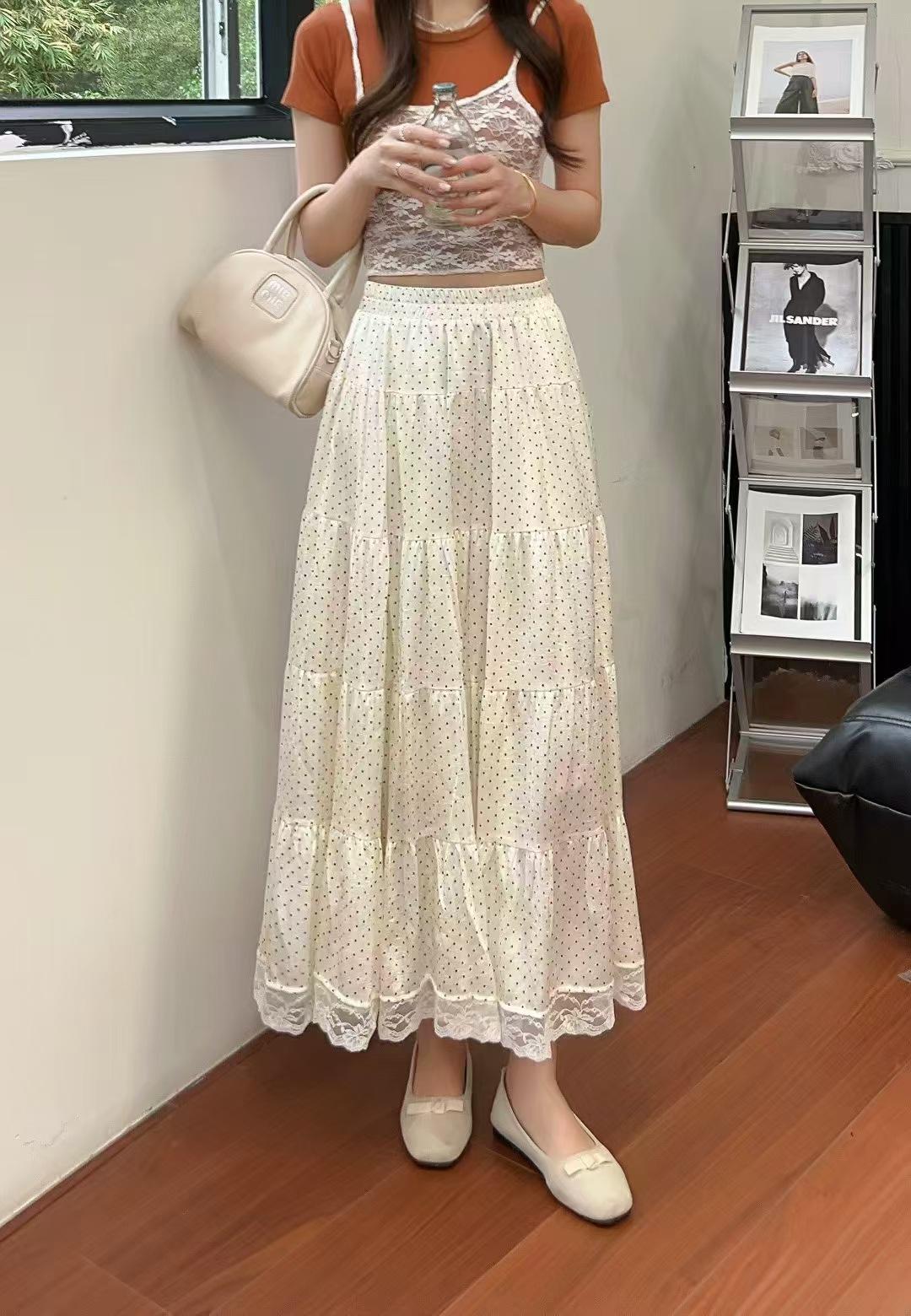 2025 Nueva Falda Versátil de Verano Falda de Pastel para Mujer Falda de Hada Falda de Encaje Falda A-Line Petite Falda Larga