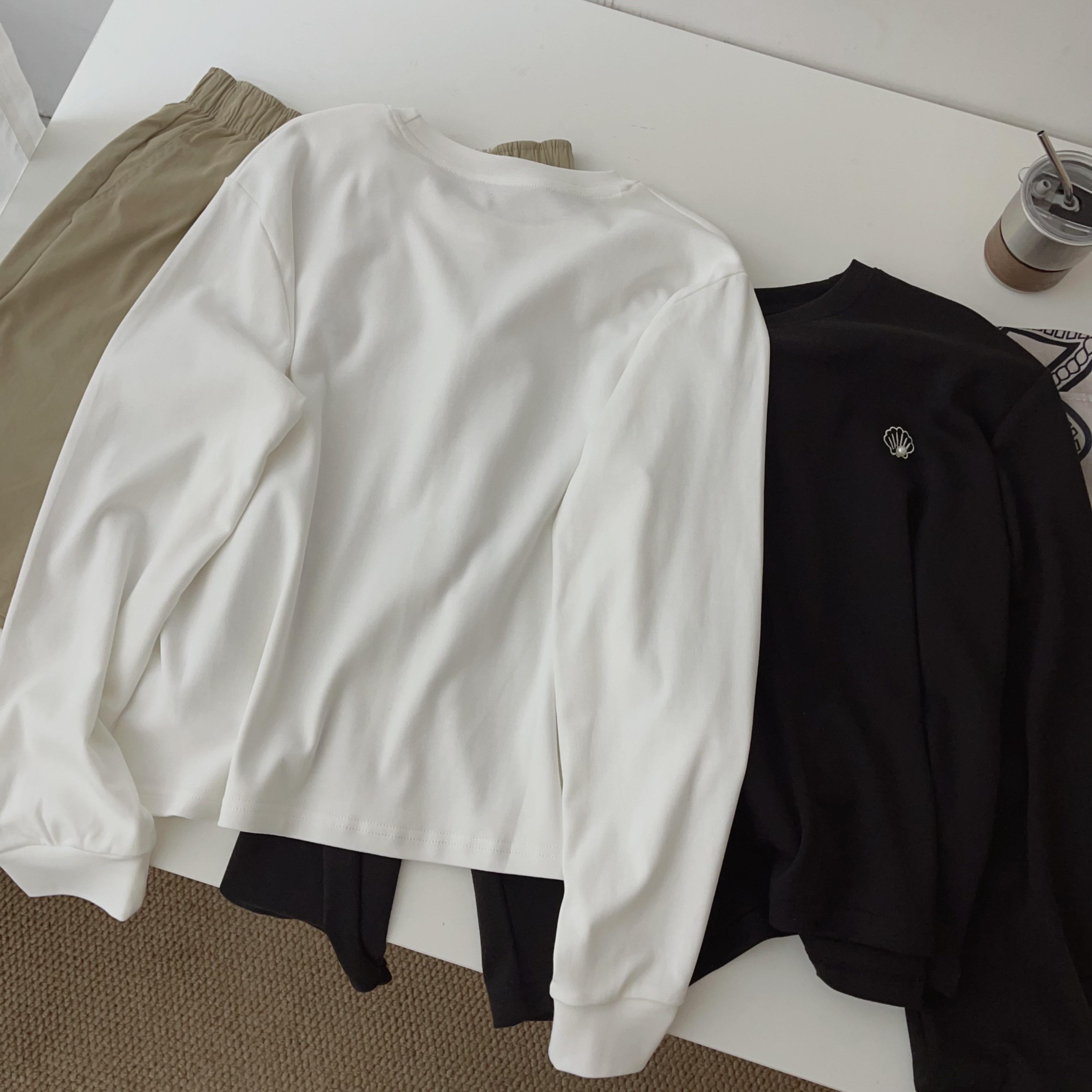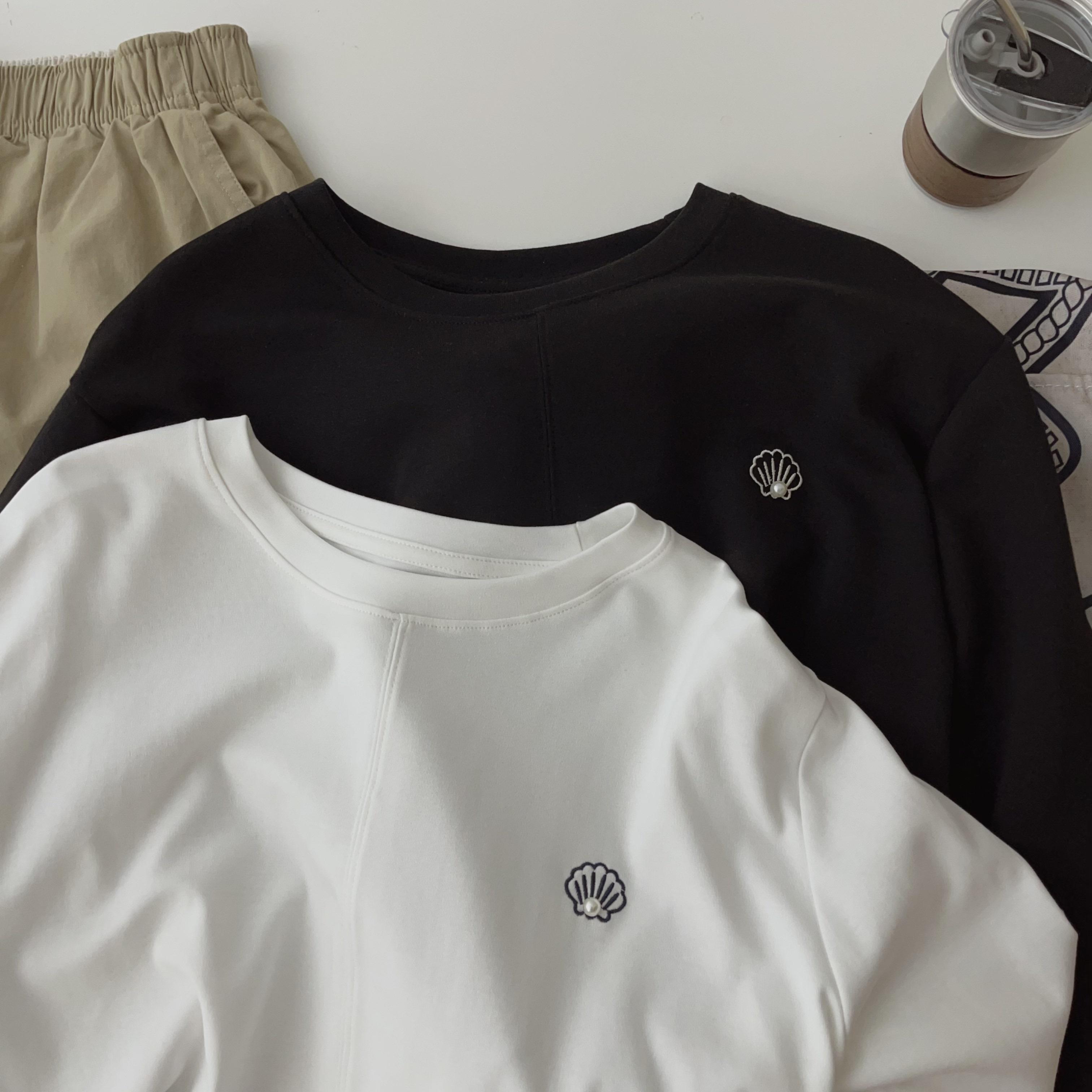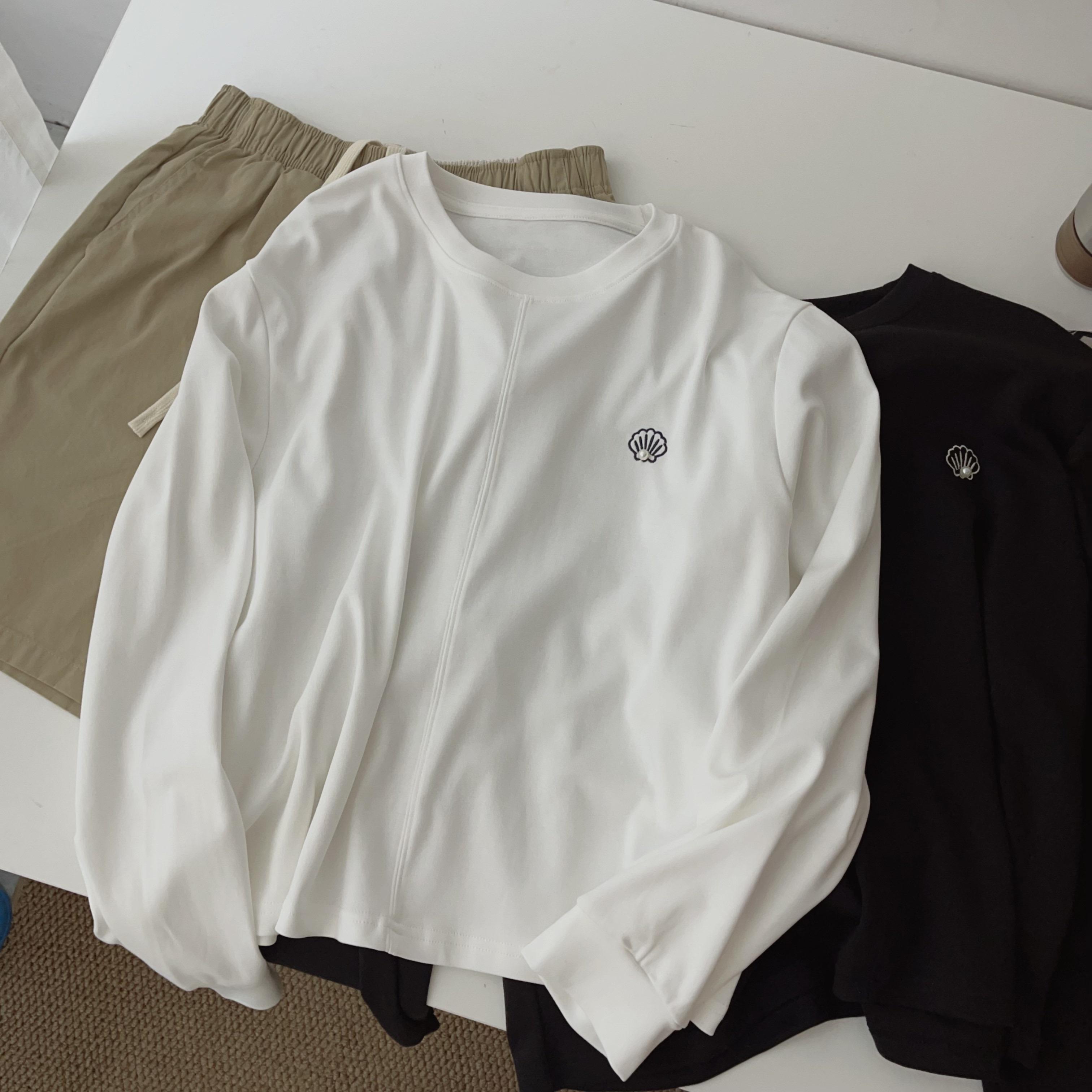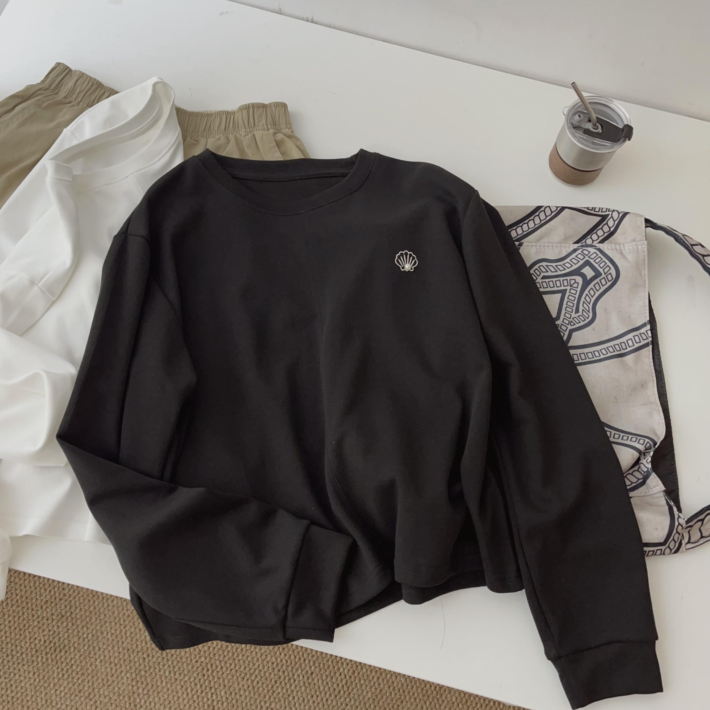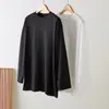 Camiseta de Manga Larga Casual Minimalista Coreana con Cuentas para Principios de Otoño para Mujer, Top Versátil Casual Holgado para Mujer, Camisa Base