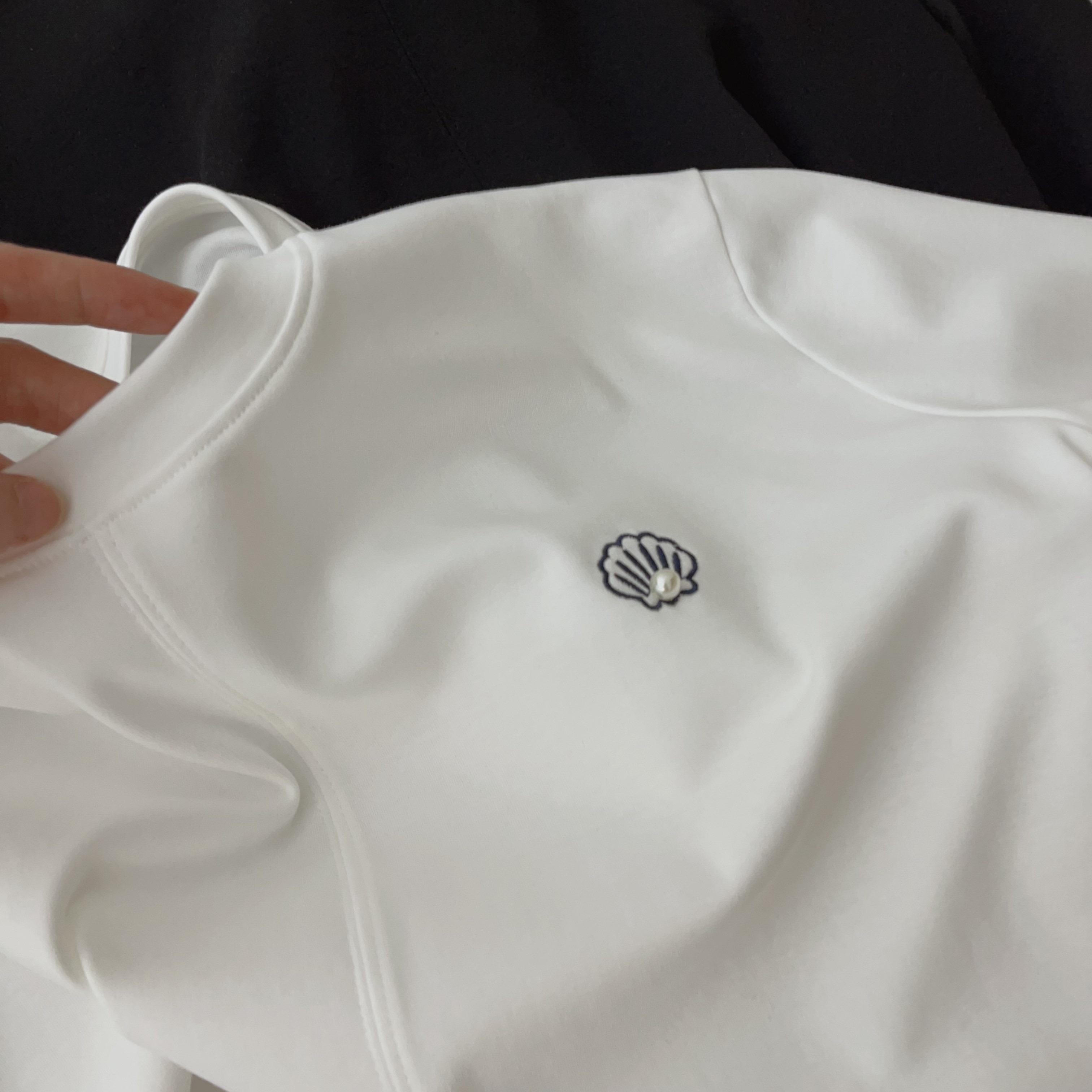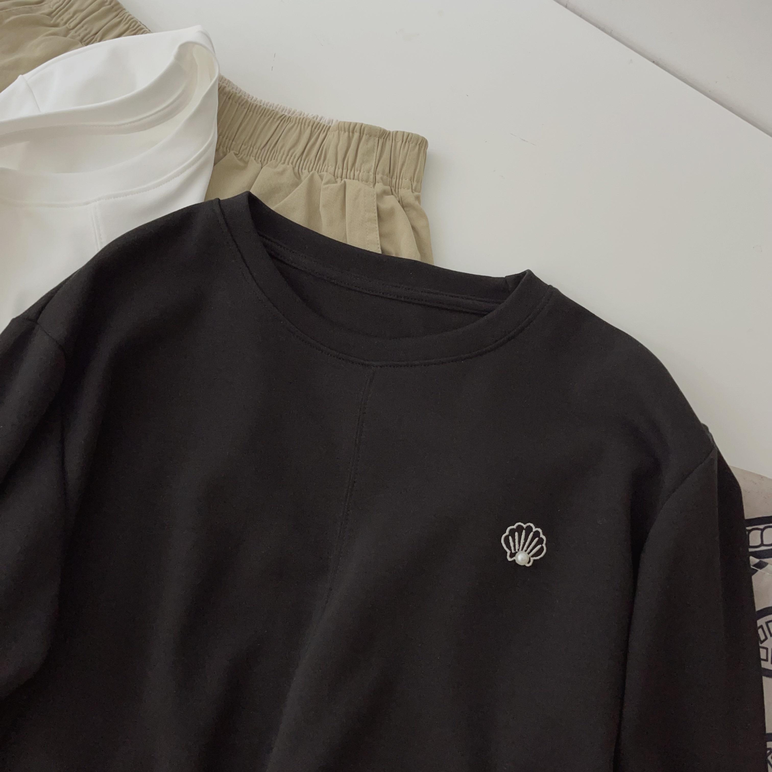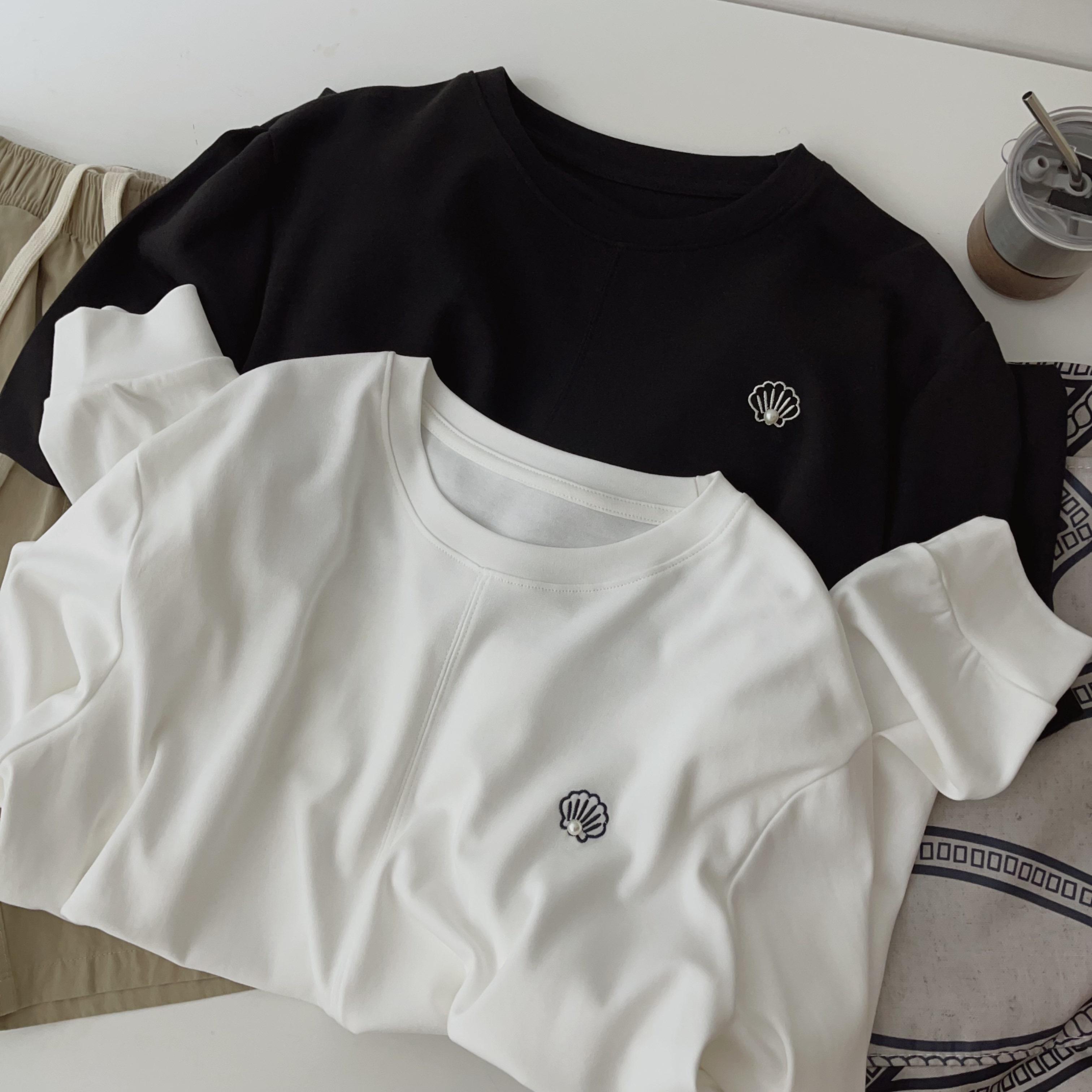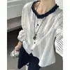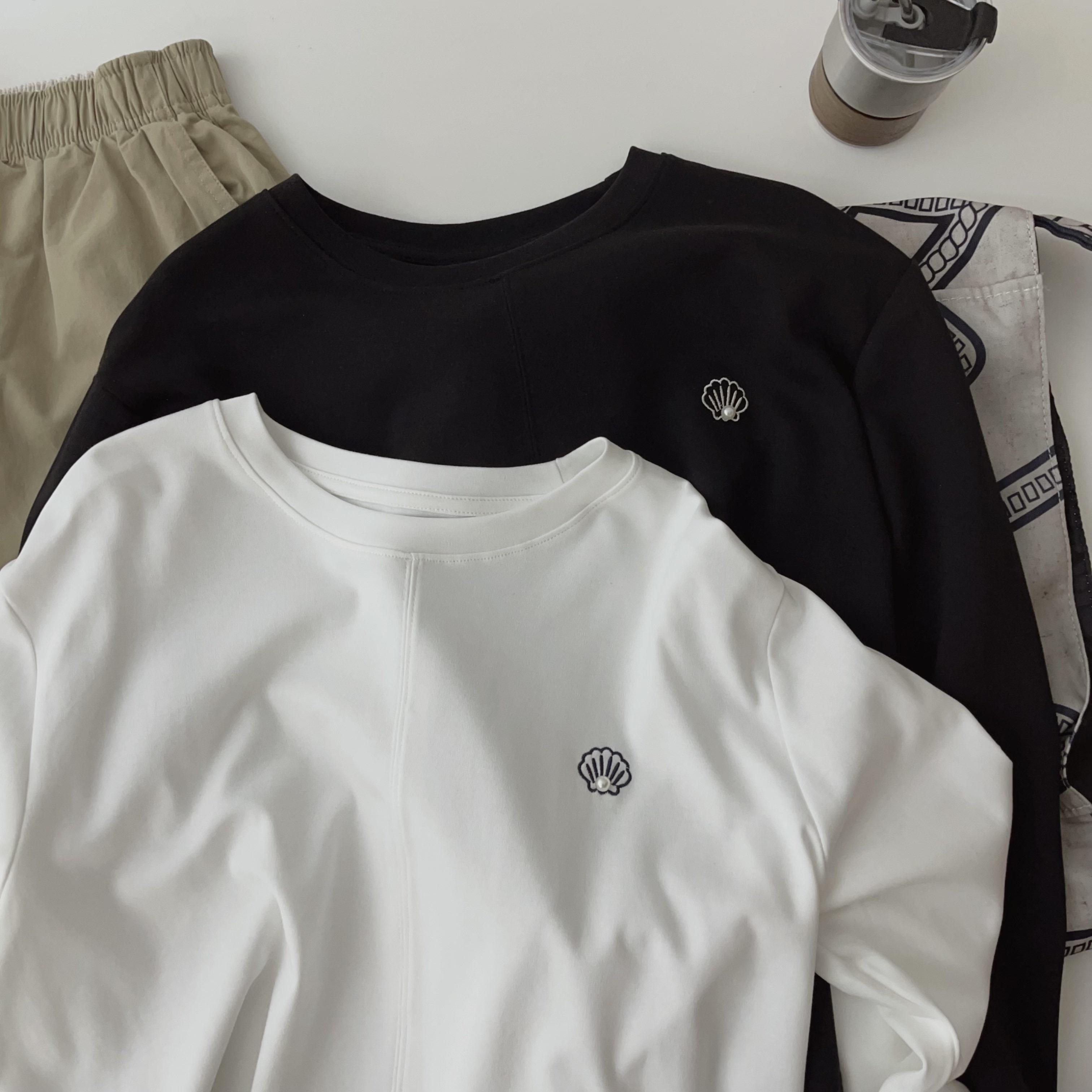 Camiseta de Manga Larga Casual Minimalista Coreana con Cuentas para Principios de Otoño para Mujer, Top Versátil Casual Holgado para Mujer, Camisa Base