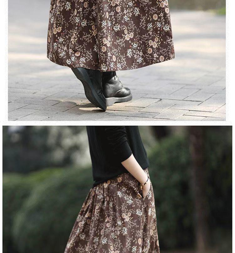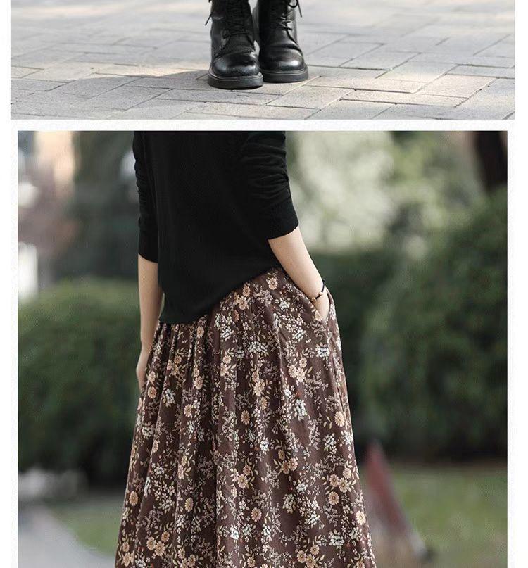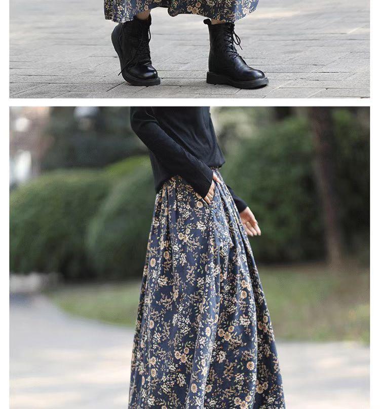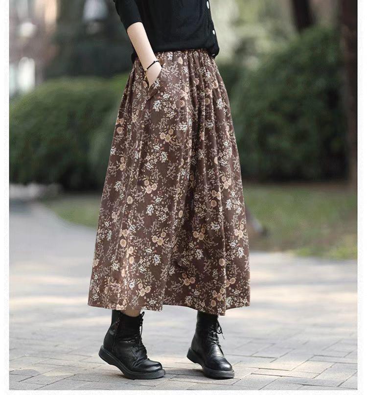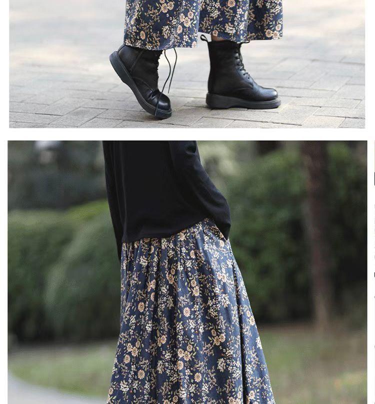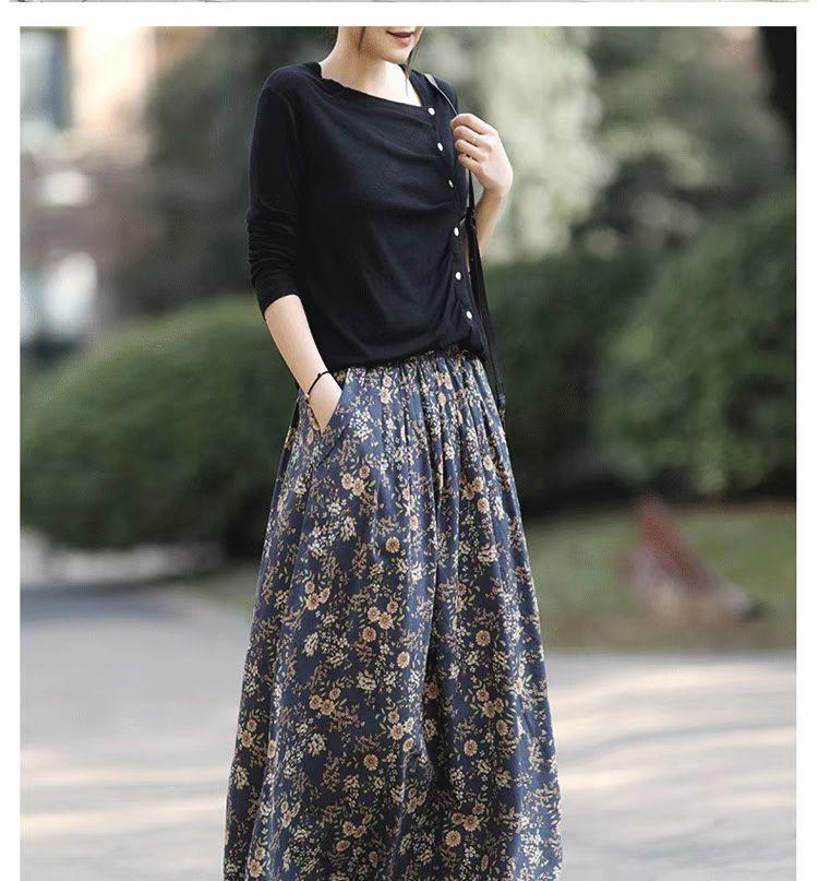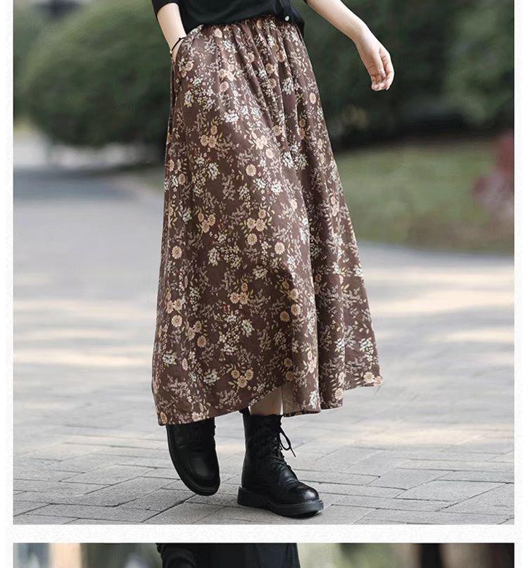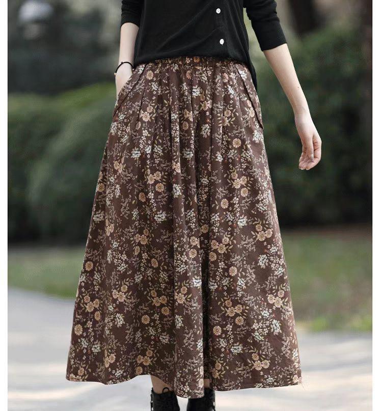 Falda Midi Estampado Floral Talla Grande para Mujer Falda de Verano Primavera para Mujer Temperamento Retro Literaria Falda A-Line Cintura Alta Adelgazante Largo Medio