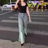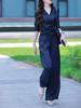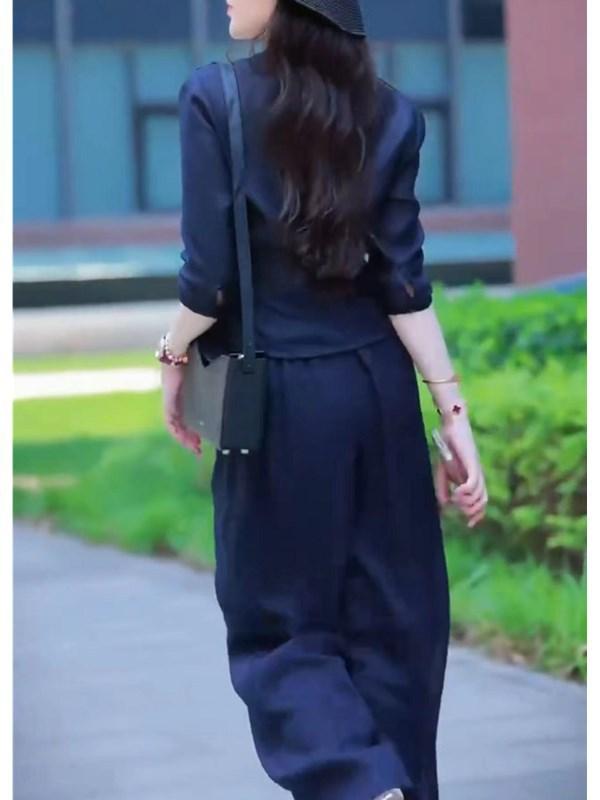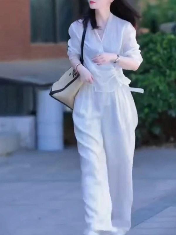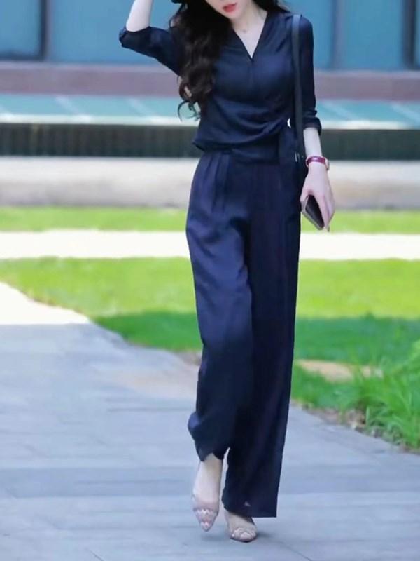24165 Big Aimei Yiyuan 2024 Verano Nuevo Top de cuello en V de alta gama con cordones Pantalones de pierna ancha de cintura alta para adelgazar para mujeres