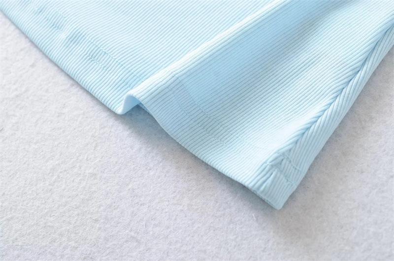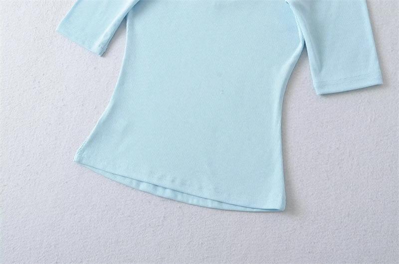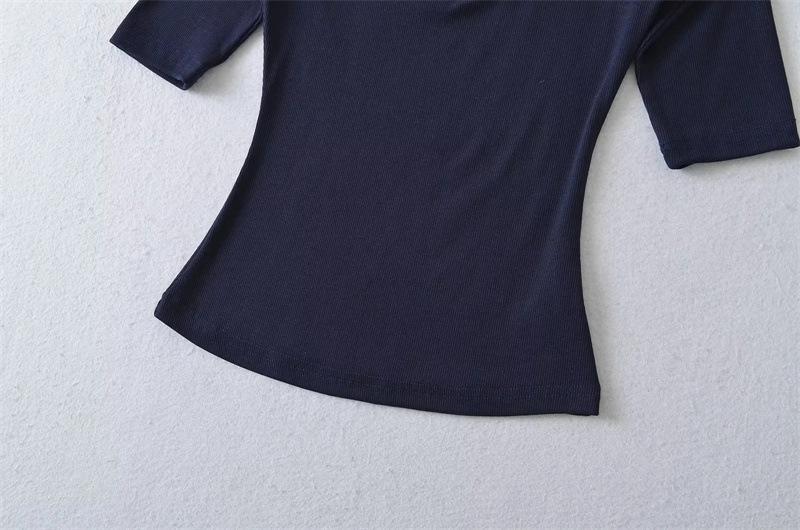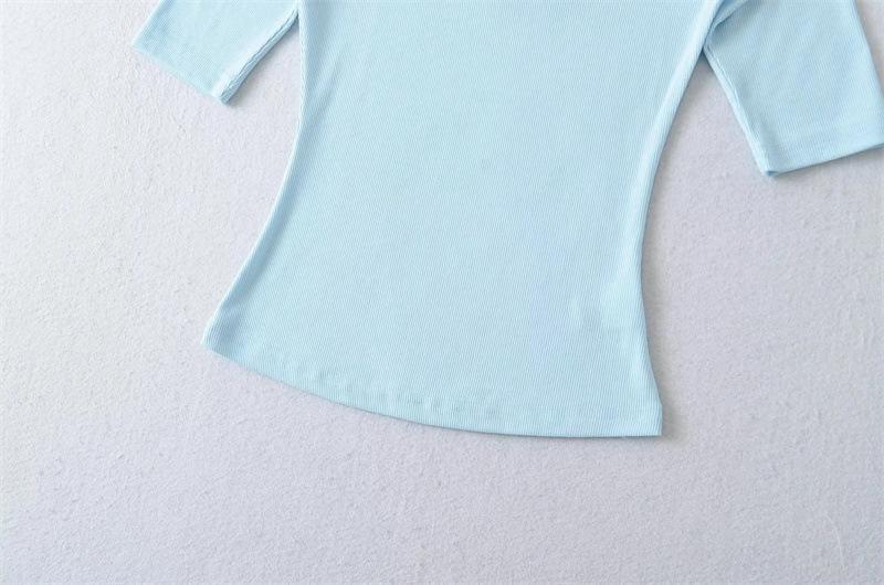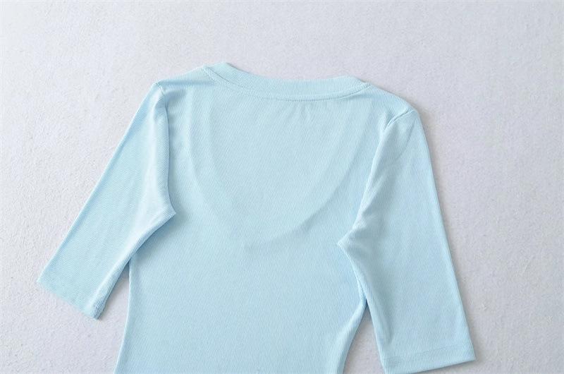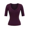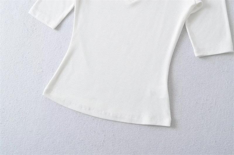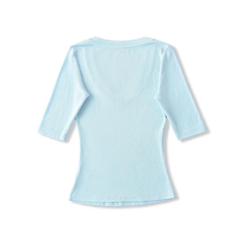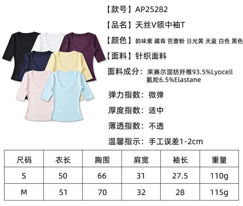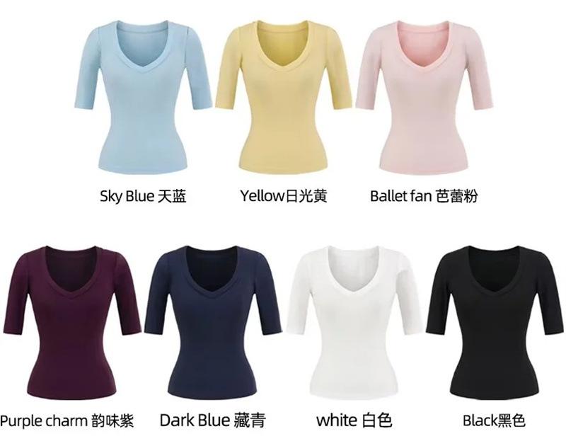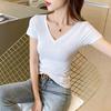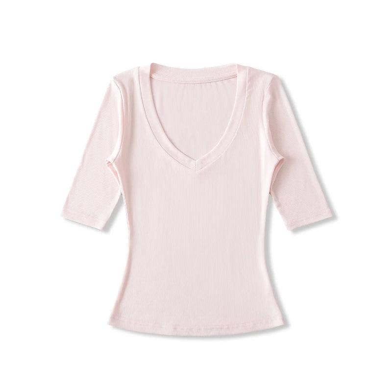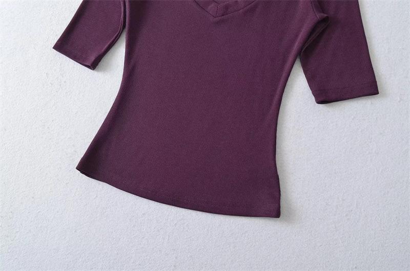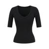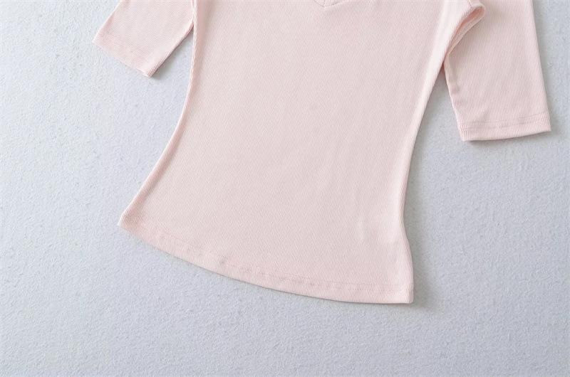 Verano Nuevo Estilo Europeo y Americano Sexy Cuello en V Manga Media Top Base Elástico Entallado Básico Simple Color Sólido Camiseta