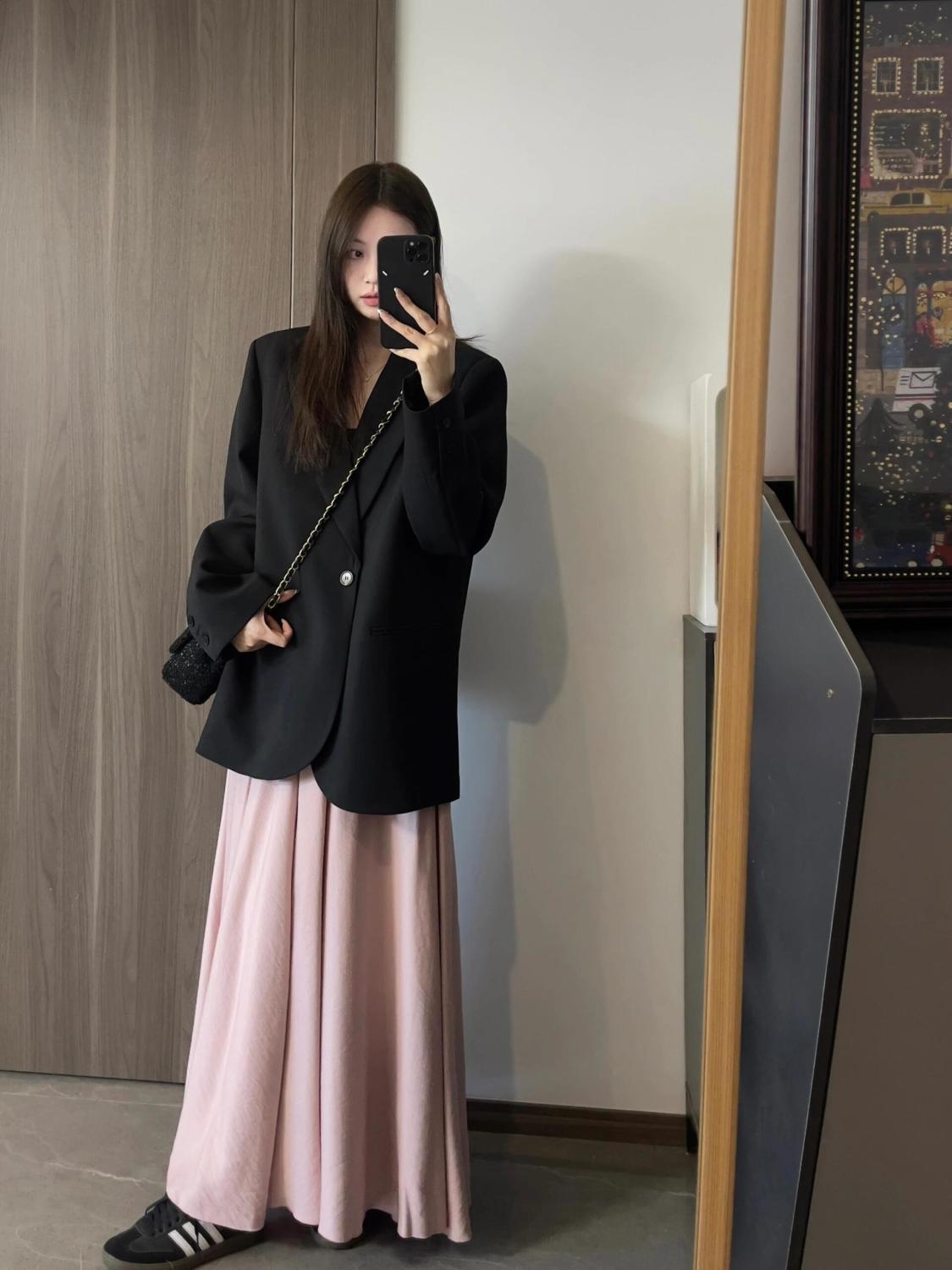 Chaqueta de Traje Casual Negra de Manga Larga para Mujer 2025 Primavera y Otoño Nuevo Estilo de Alta Gama Versátil Elegante Slim Traje Casual