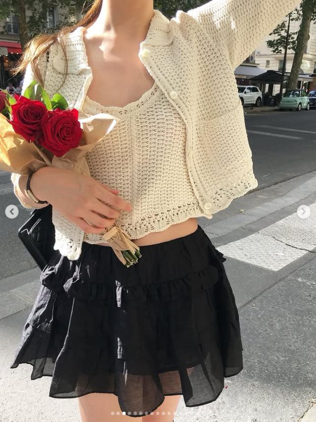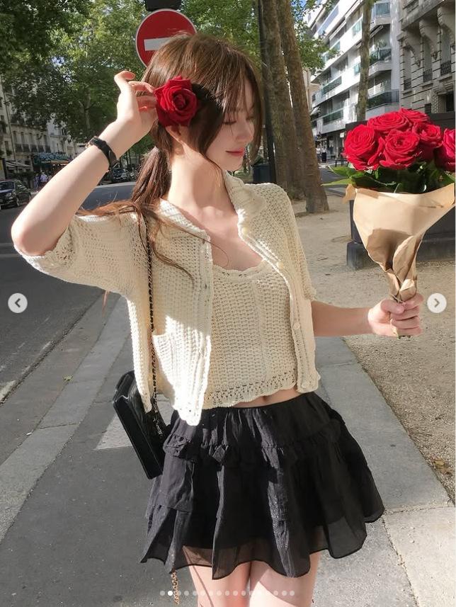 Set de dos piezas para mujer: chaleco tejido estilo coreano + cárdigan suéter de manga media