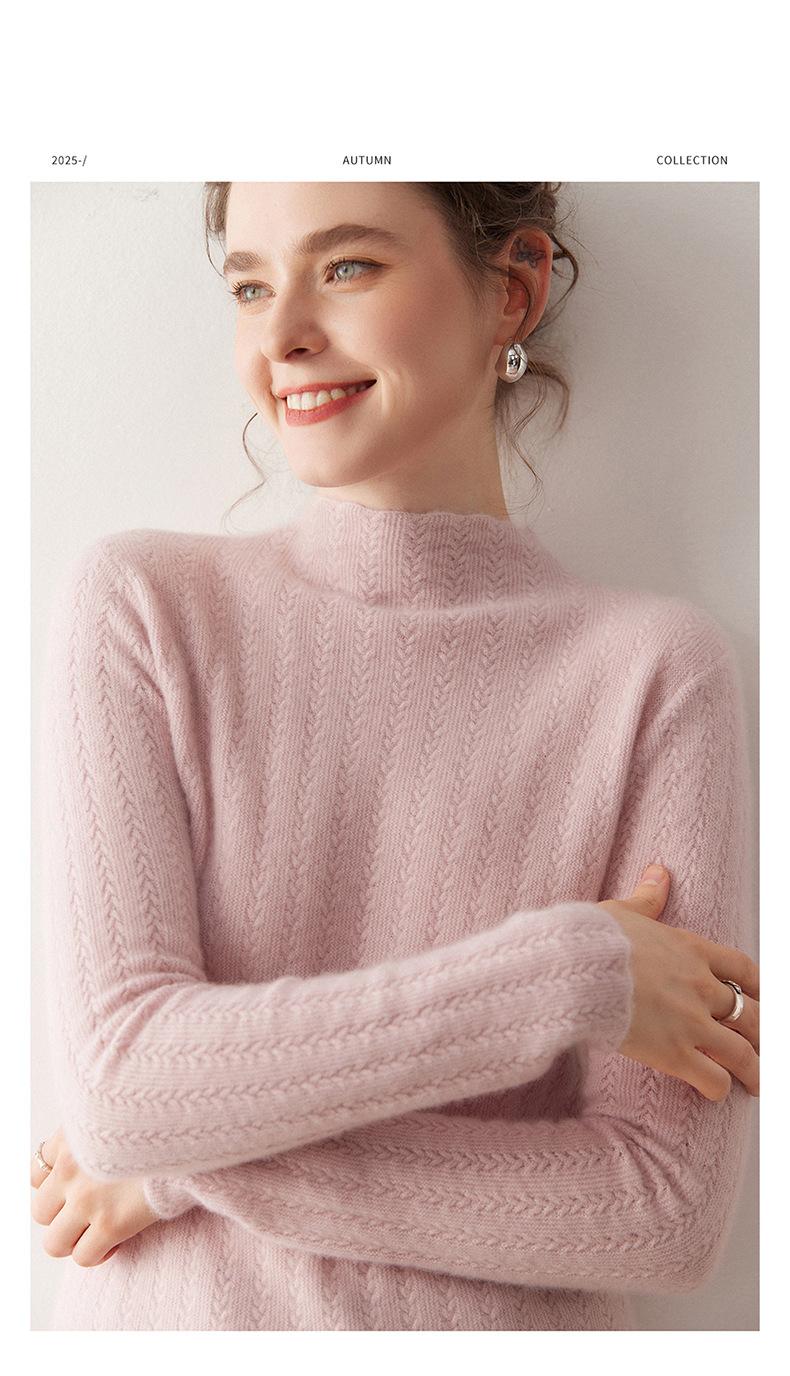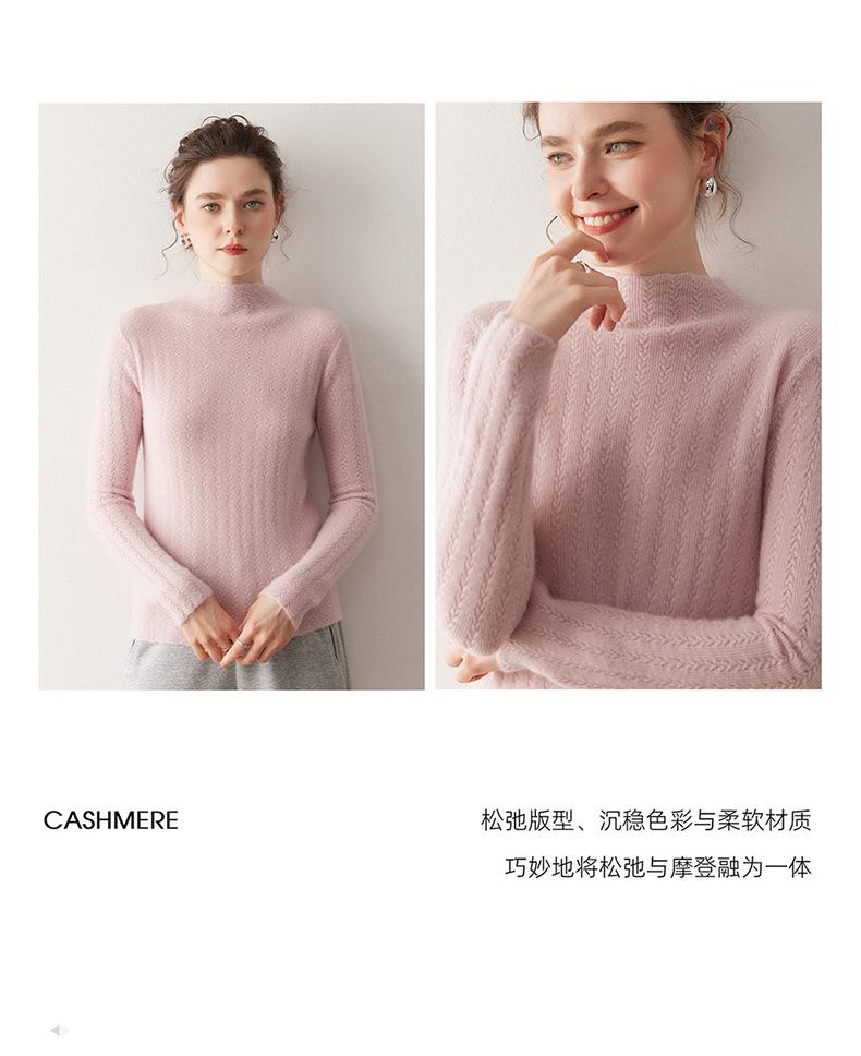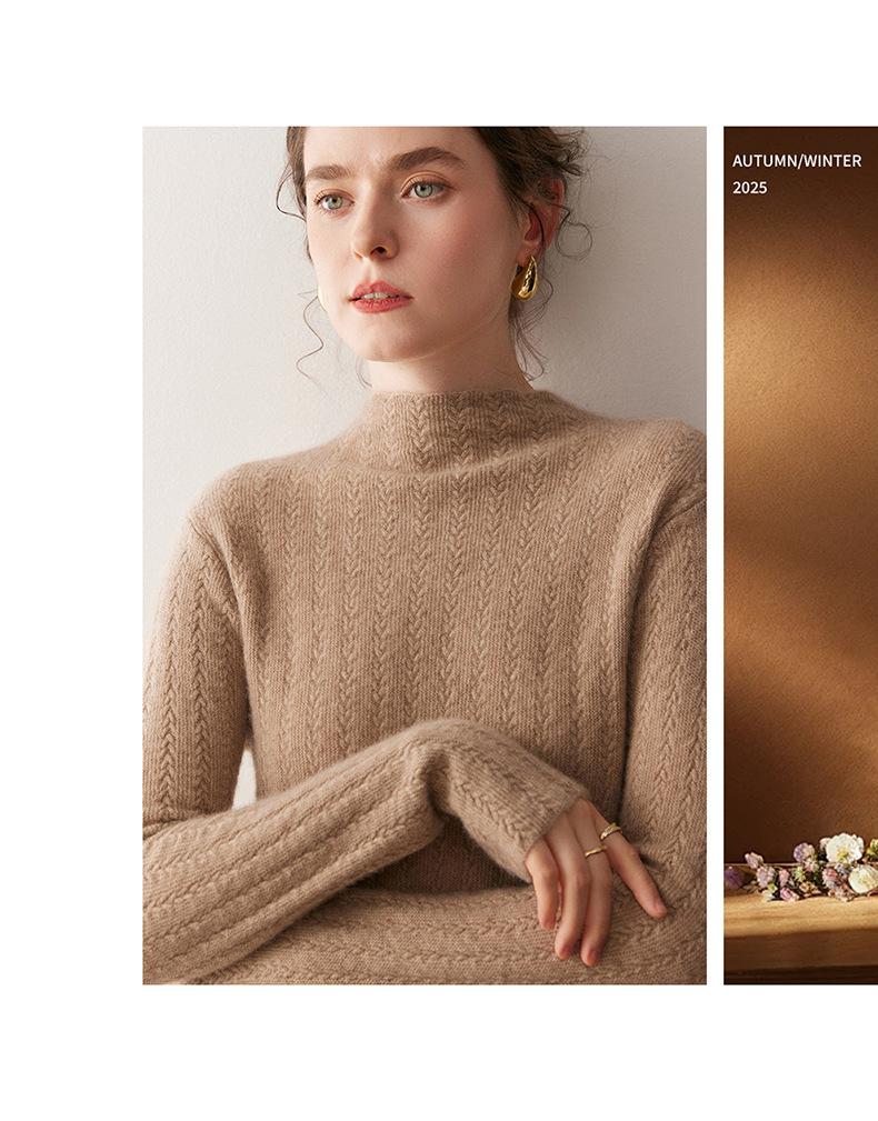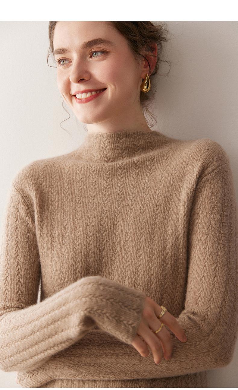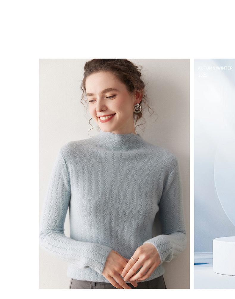 Suéter de Cachemira de Moda de Cuello Medio Alto Otoño e Invierno Nuevo para Mujer Patrón de Hojas de Cuerpo Entero Exquisito Versátil Cómodo Grueso Camiseta Base