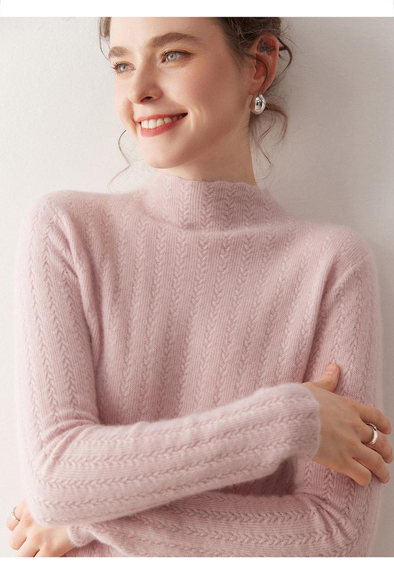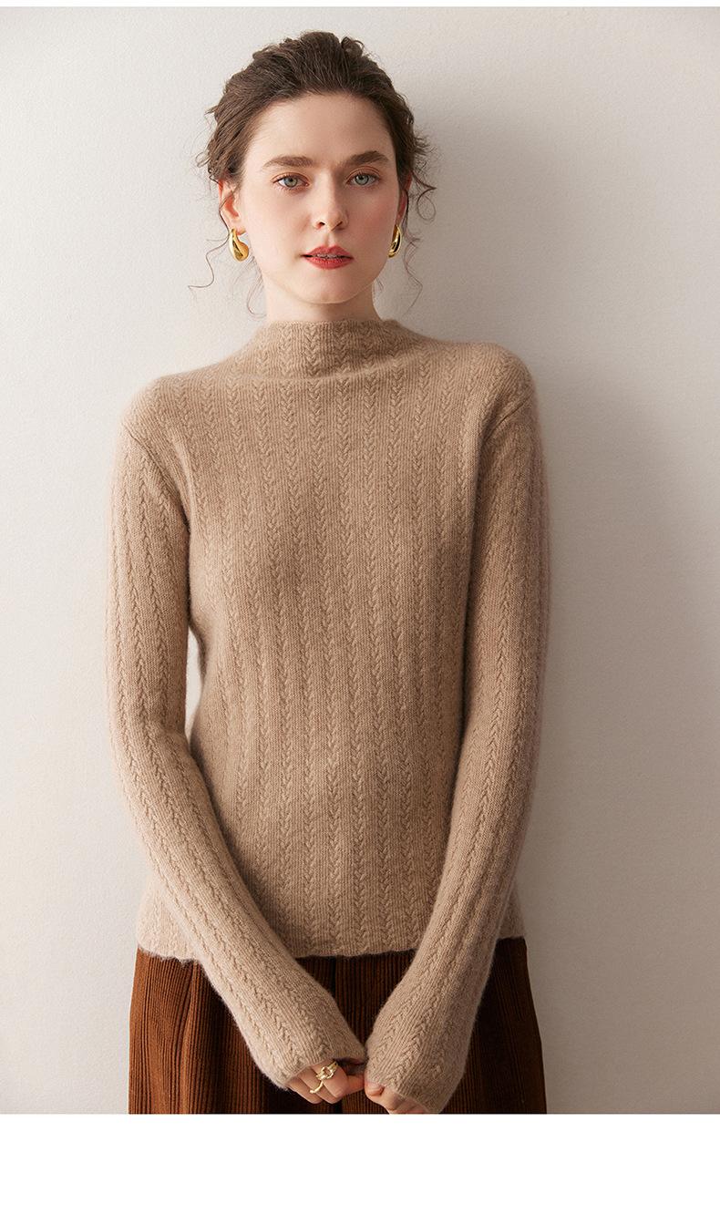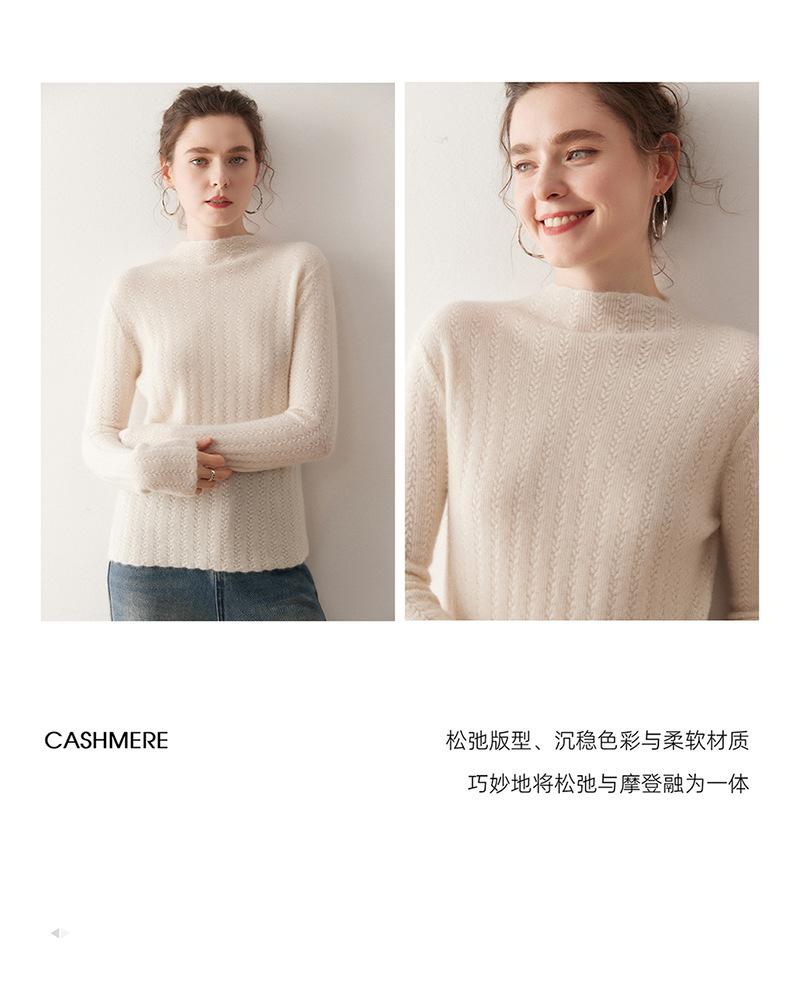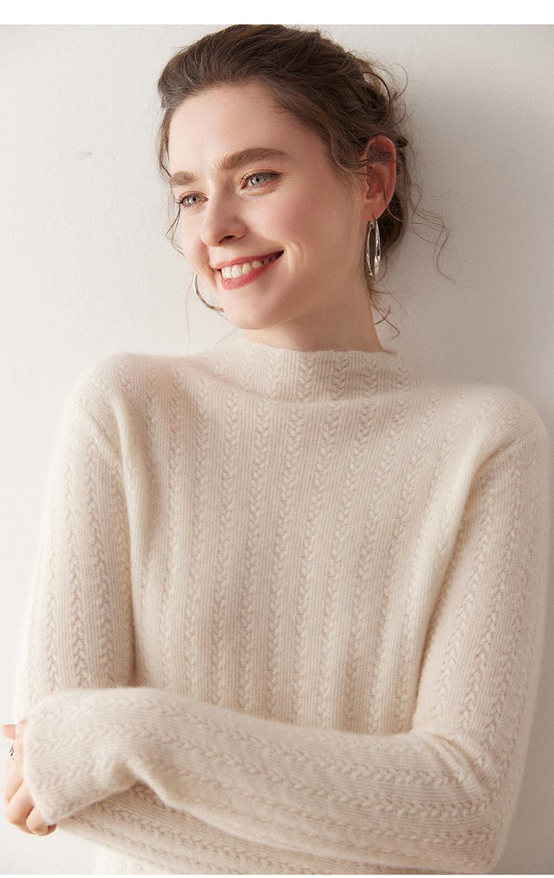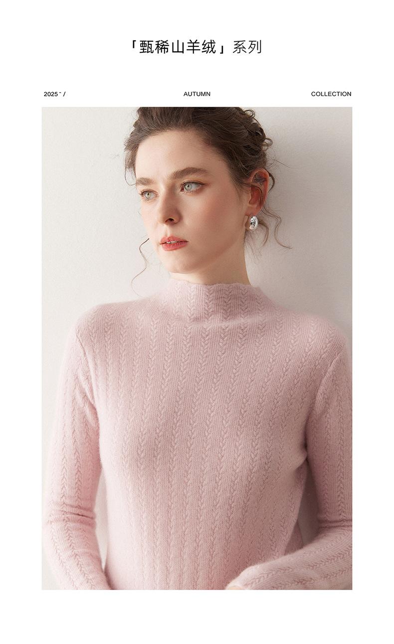Suéter de Cachemira de Moda de Cuello Medio Alto Otoño e Invierno Nuevo para Mujer Patrón de Hojas de Cuerpo Entero Exquisito Versátil Cómodo Grueso Camiseta Base