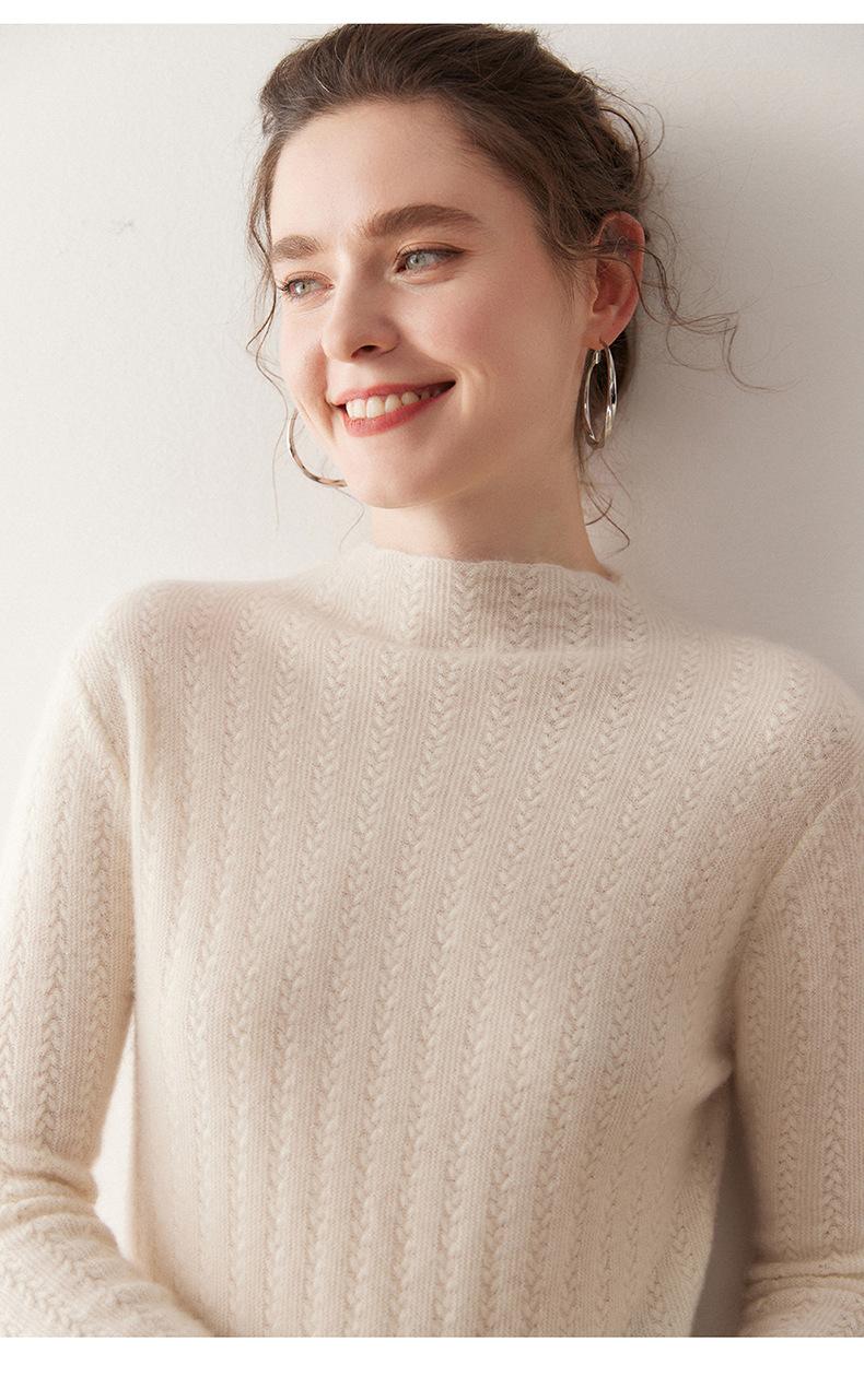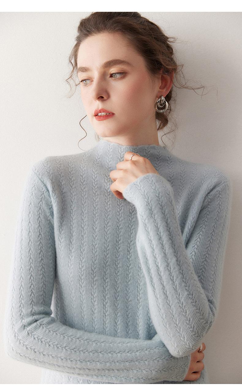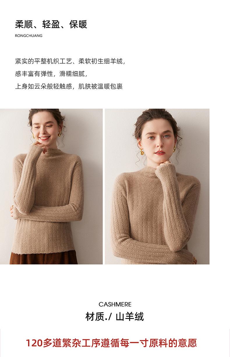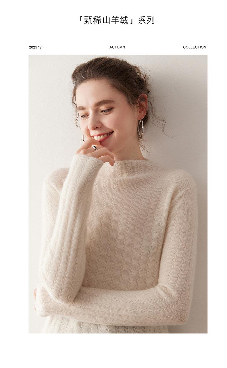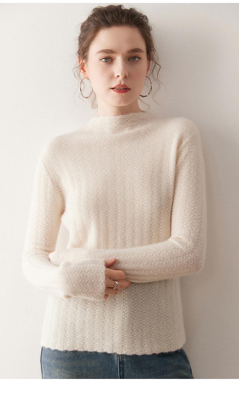 Suéter de Cachemira de Moda de Cuello Medio Alto Otoño e Invierno Nuevo para Mujer Patrón de Hojas de Cuerpo Entero Exquisito Versátil Cómodo Grueso Camiseta Base