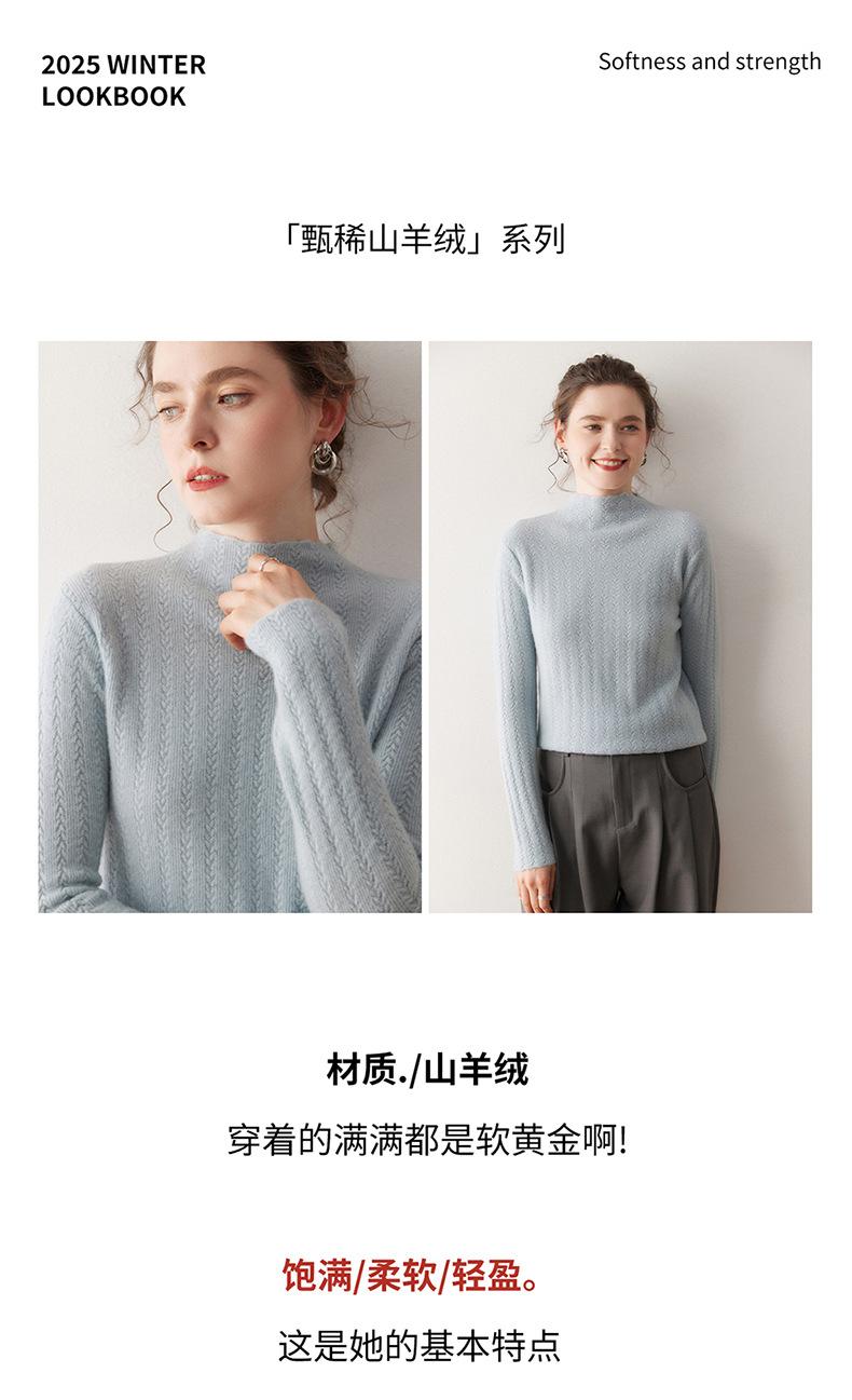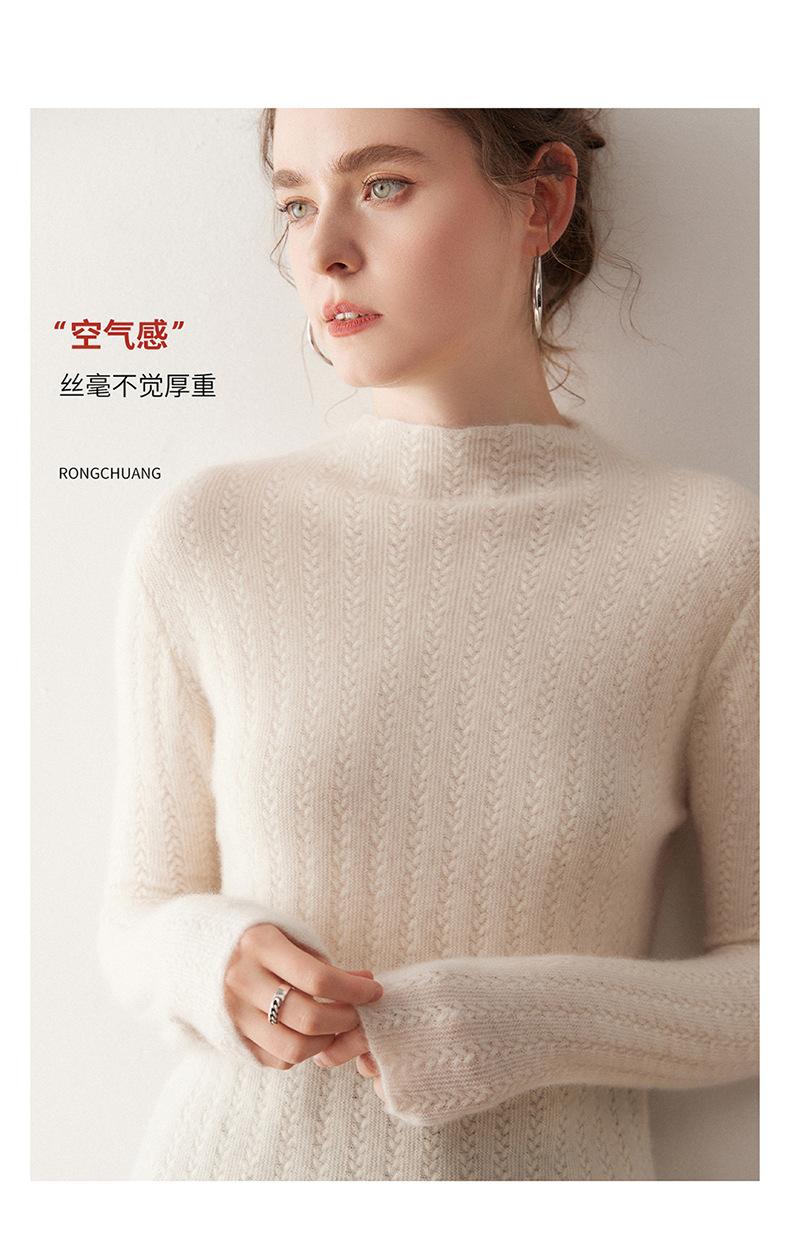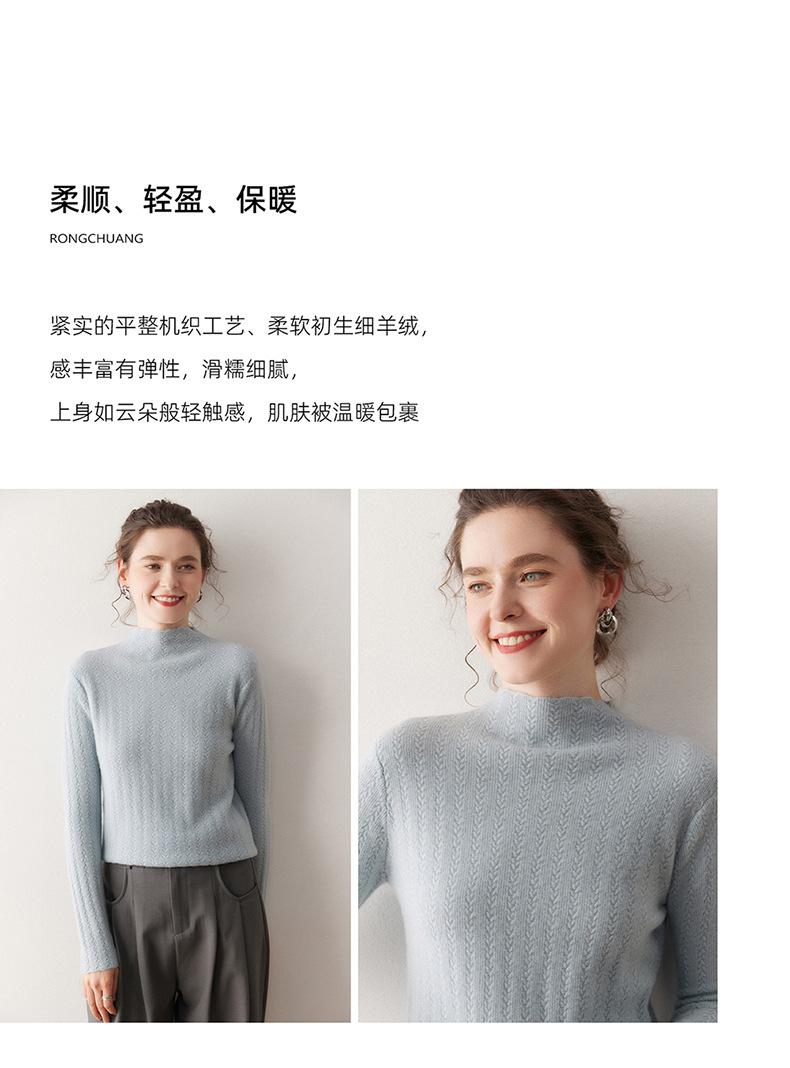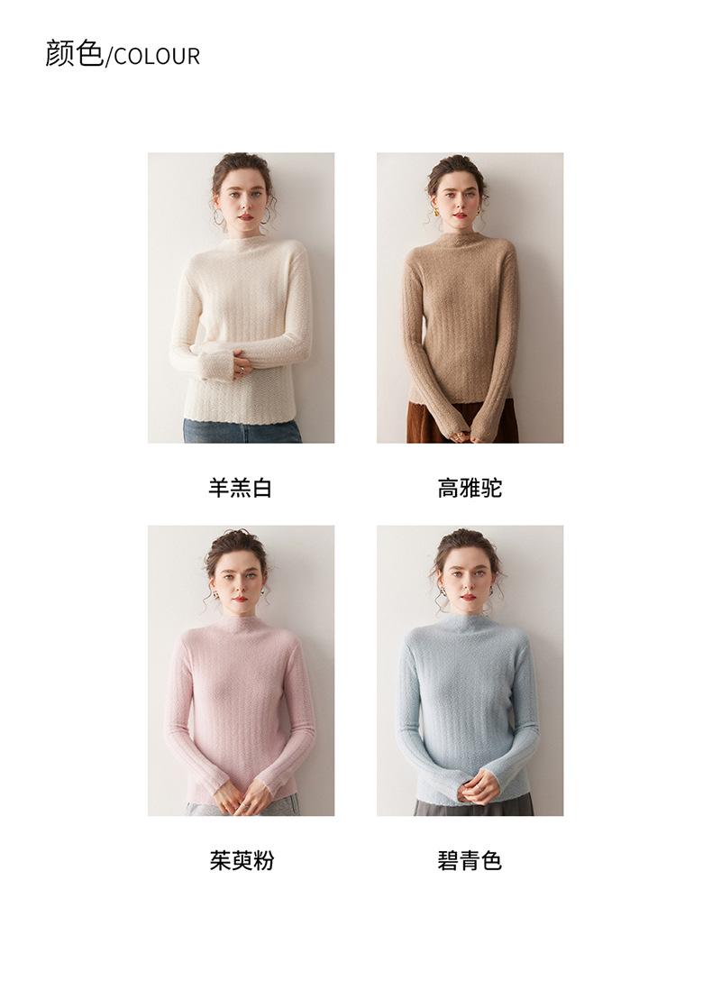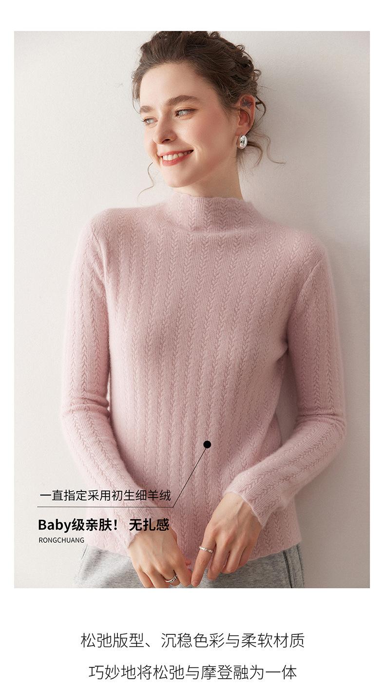 Suéter de Cachemira de Moda de Cuello Medio Alto Otoño e Invierno Nuevo para Mujer Patrón de Hojas de Cuerpo Entero Exquisito Versátil Cómodo Grueso Camiseta Base