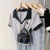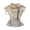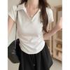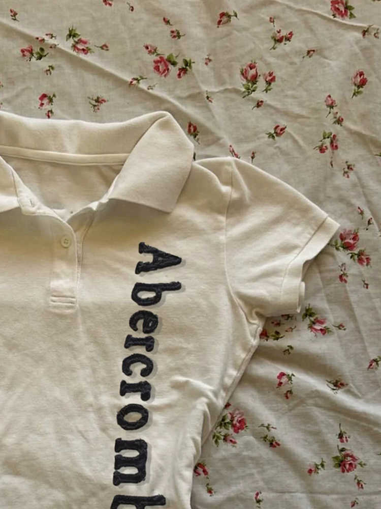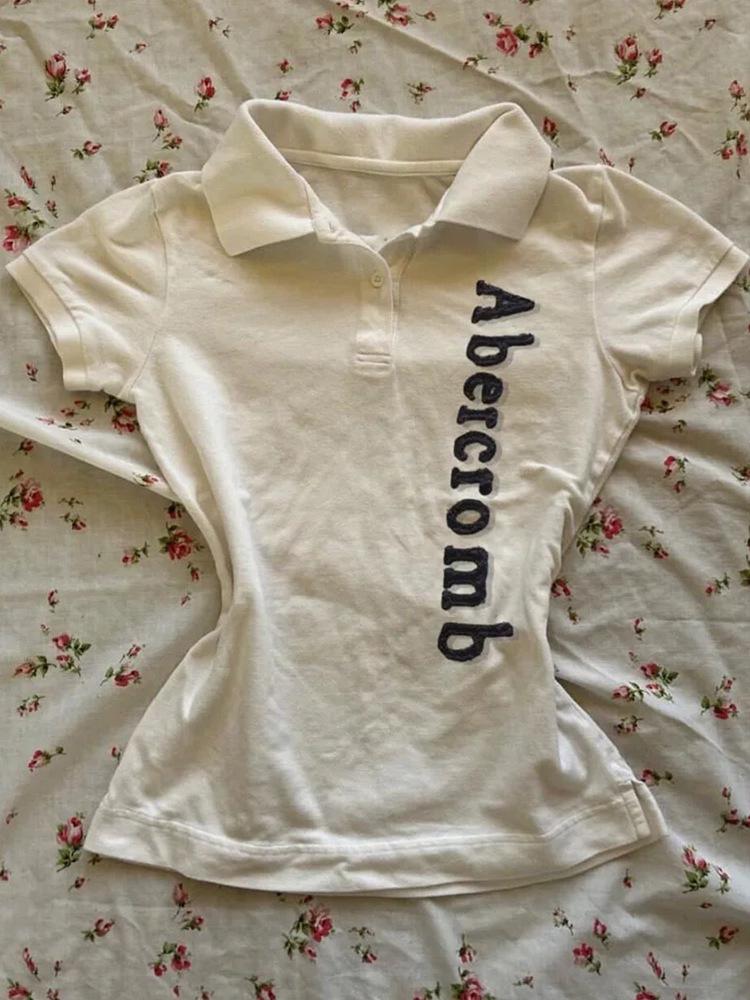 Polo Bordado con Letra Americana Solapa Algodón Manga Corta Camiseta de Verano para Mujer Nuevo Ajustado Adelgazante Top Chica Picante