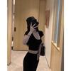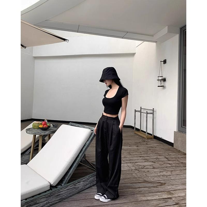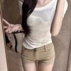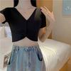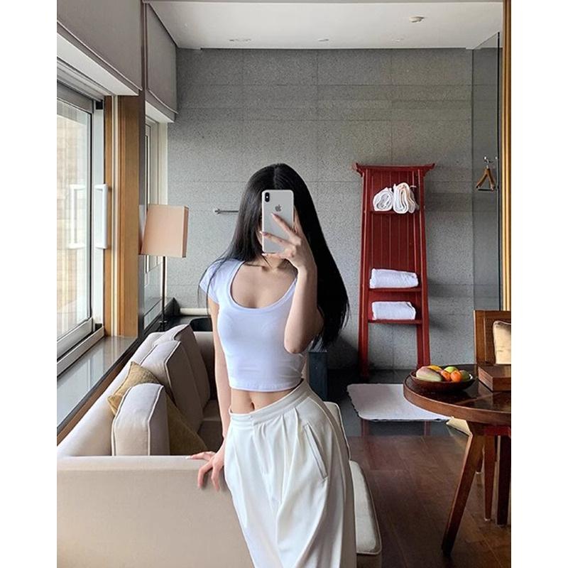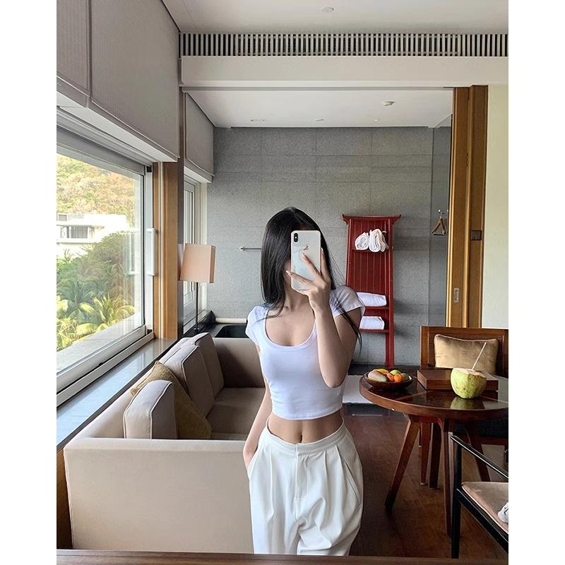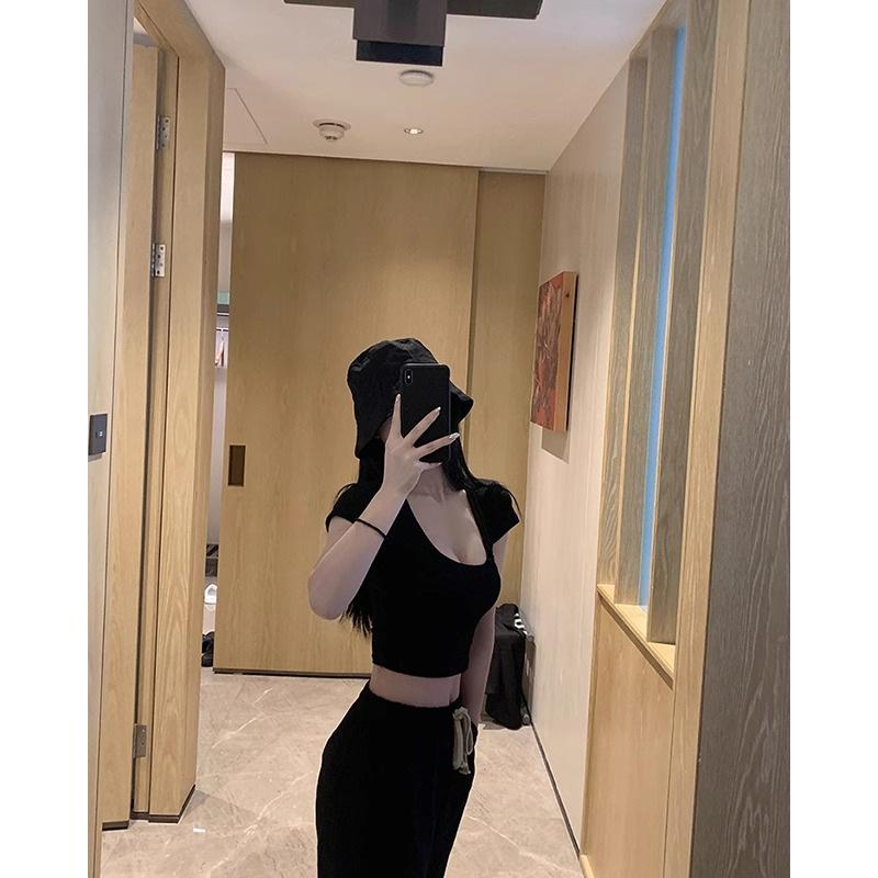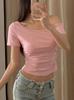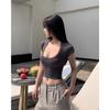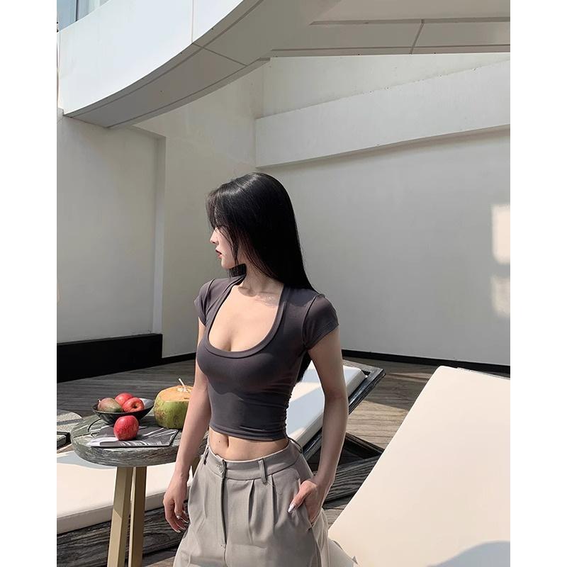 Camiseta Americana Estilo Chica Caliente Hombro Cuello U Ajustada Ajustada Manga Corta Verano Combinación Total Nicho Ins Estilo Puro Top Sexy