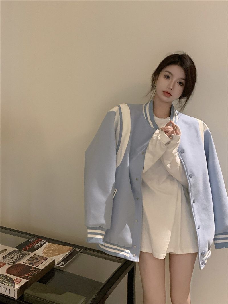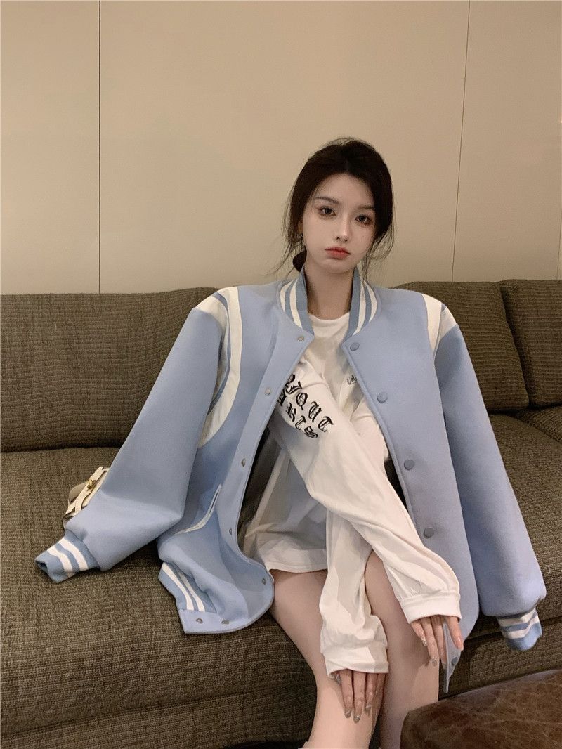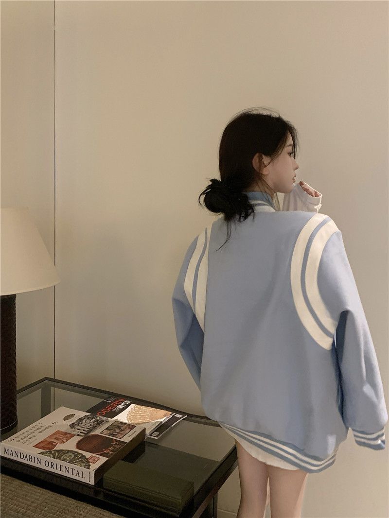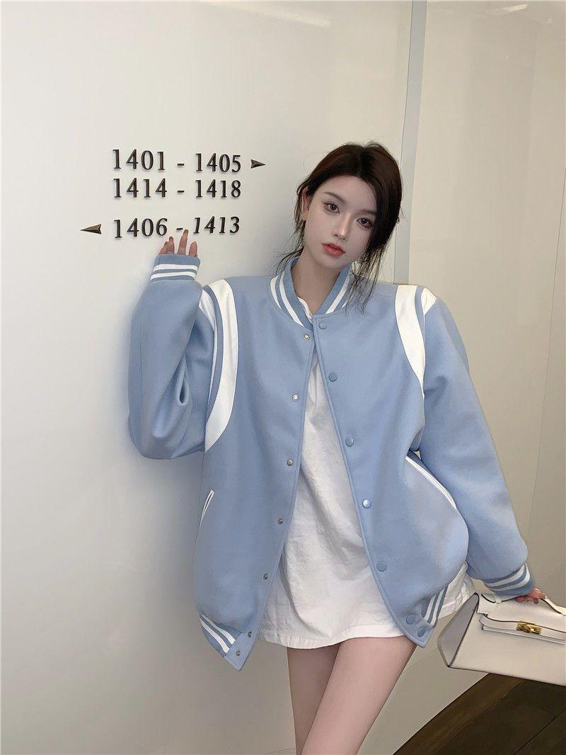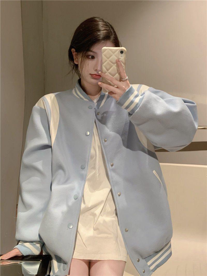 Chamarra de Béisbol Vintage para Mujer Primavera y Otoño Nueva 2023 Holgada Versátil Estilo Coreano Ins Trendy Top de Manga Larga
