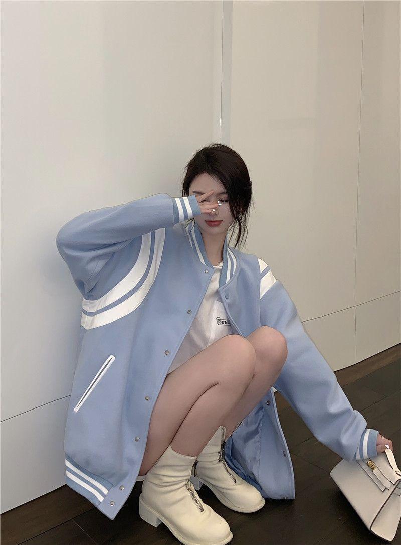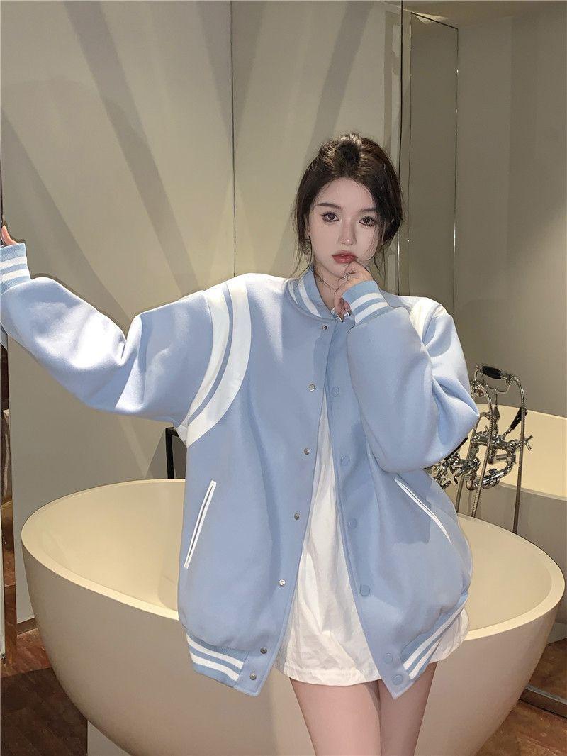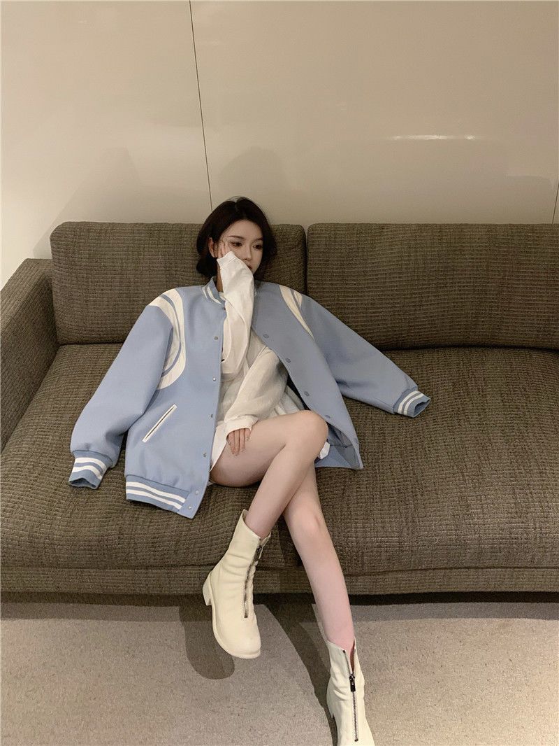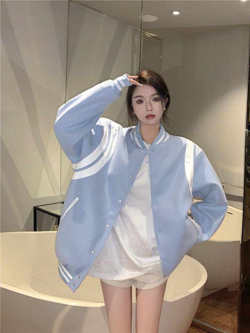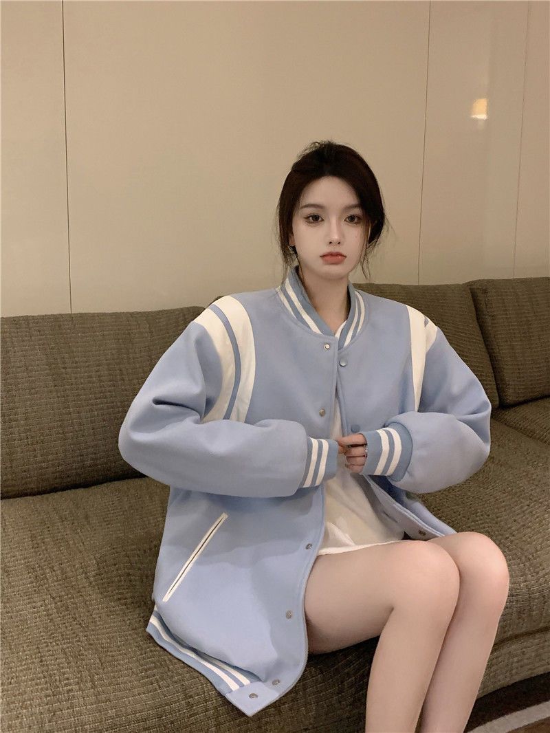 Chamarra de Béisbol Vintage para Mujer Primavera y Otoño Nueva 2023 Holgada Versátil Estilo Coreano Ins Trendy Top de Manga Larga