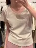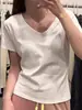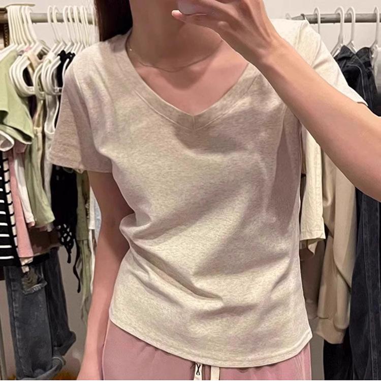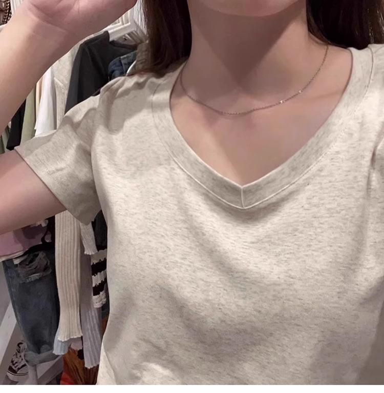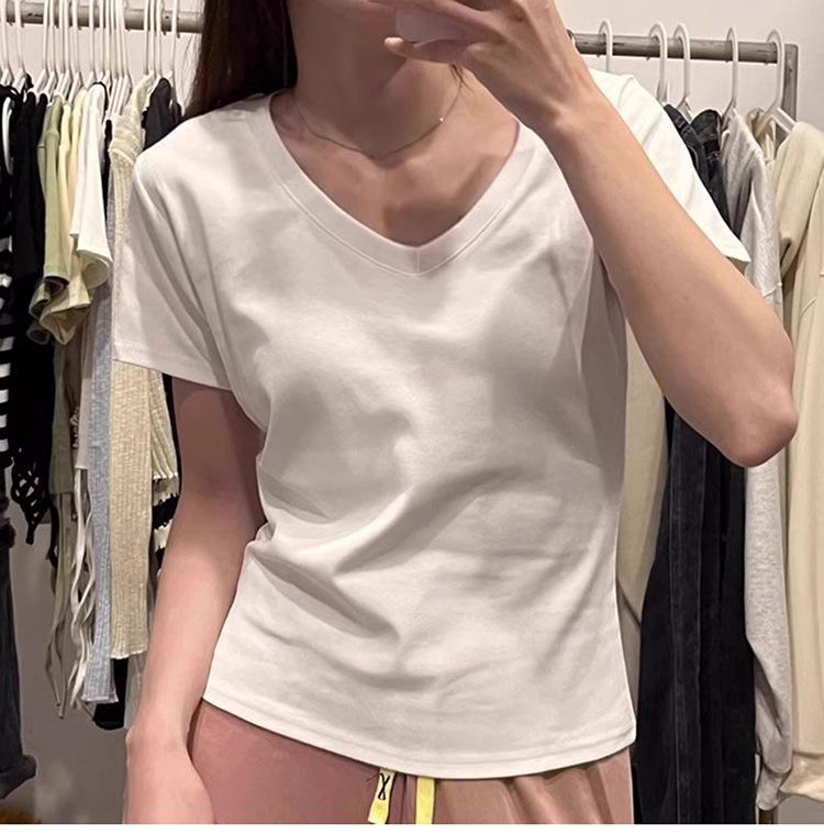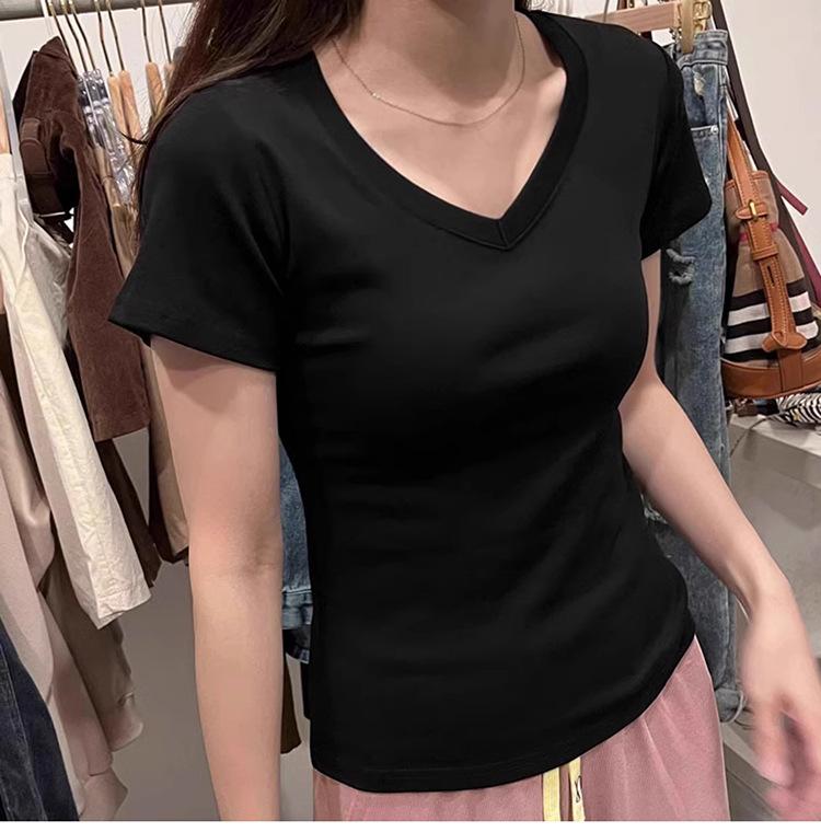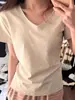 Camiseta Sencilla de Cuello en V de Estilo Coreano para Combinar con Todo, de Hombro, Manga Corta, 2024 Nueva Moda, Ajustada, Adelgazante, Moderna, Básica