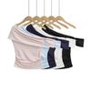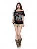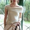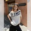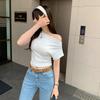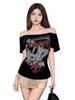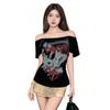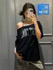 Camiseta Americana Negra de Hombro Inclinado con Hombros Descubiertos y Manga Corta para Mujer, Diseño de Verano Nicho Sexy High Street Top Nuevo Estilo 2025