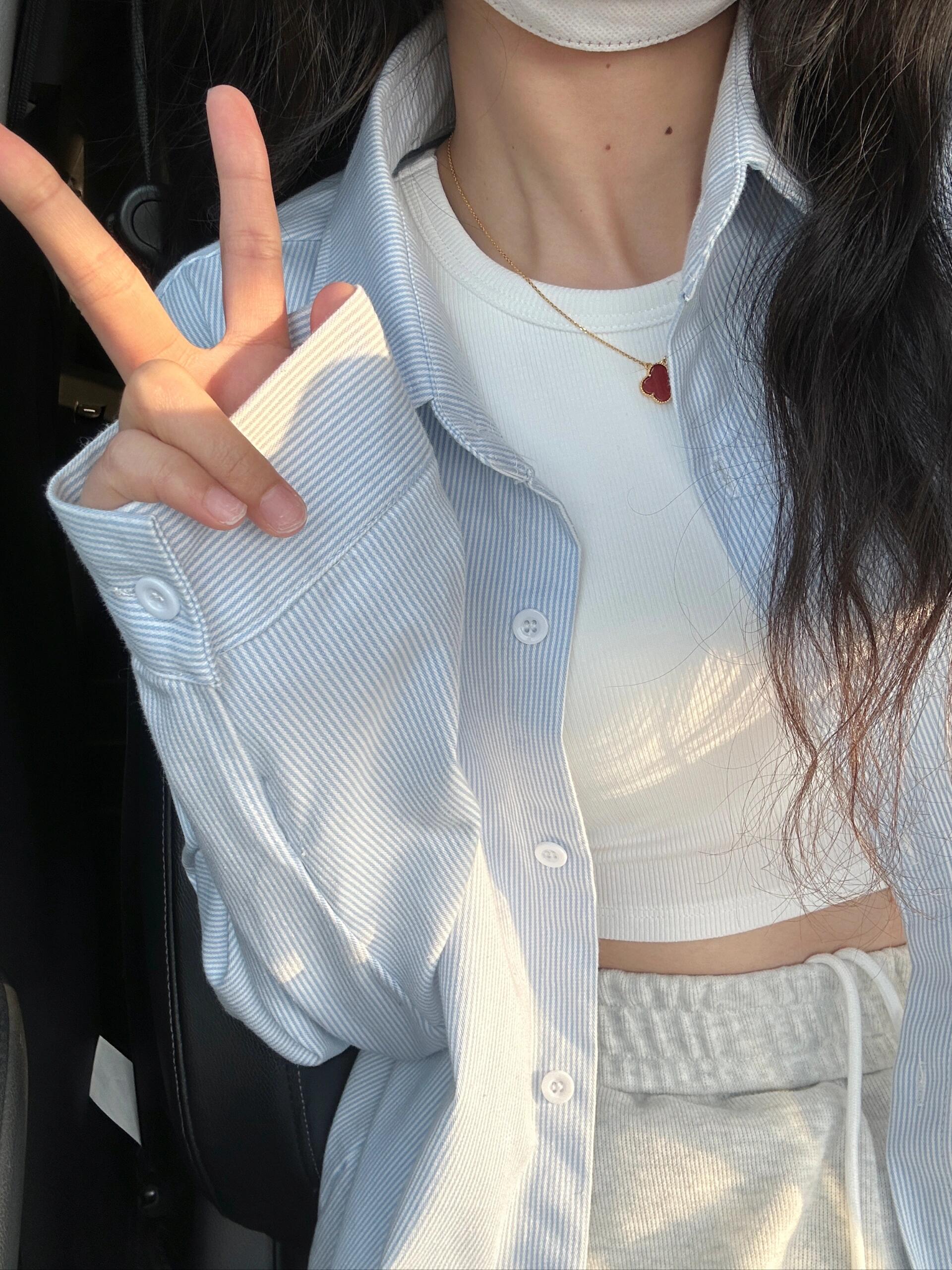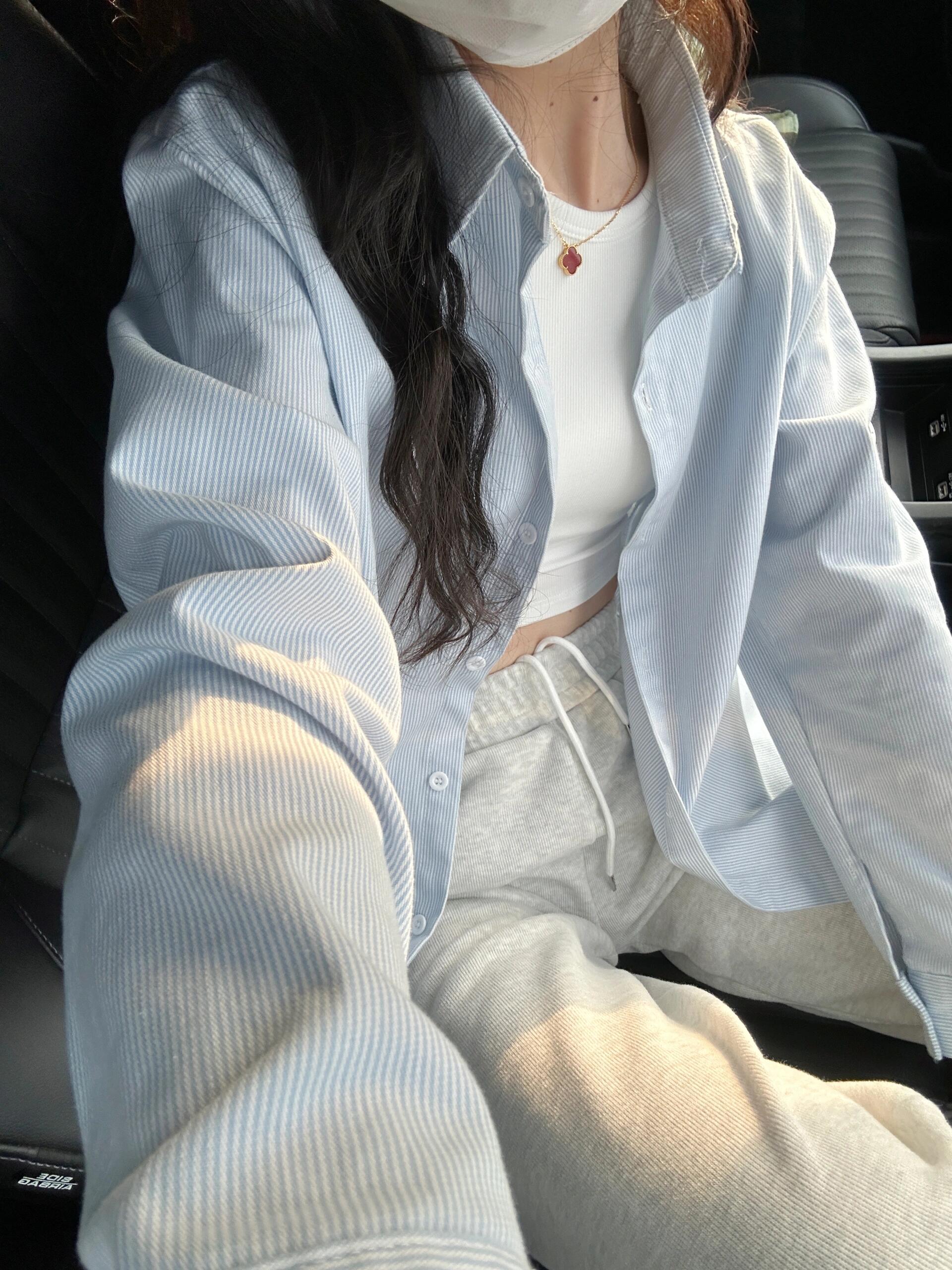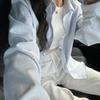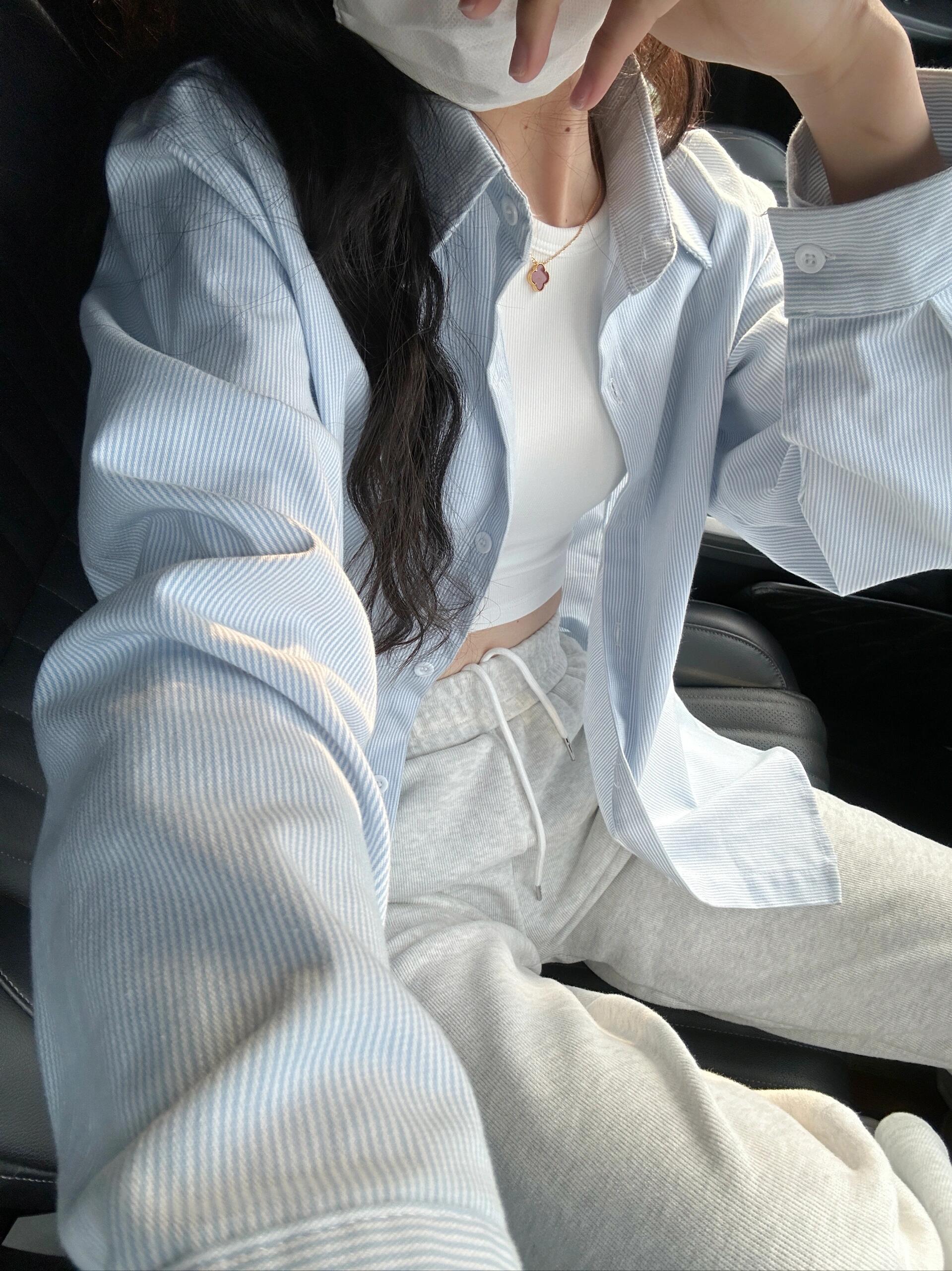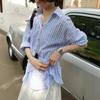 Camisa a rayas de estilo holgazán contrastante azul y blanco para mujer verano suelta coreana de manga larga en capas protección solar chaqueta delgada