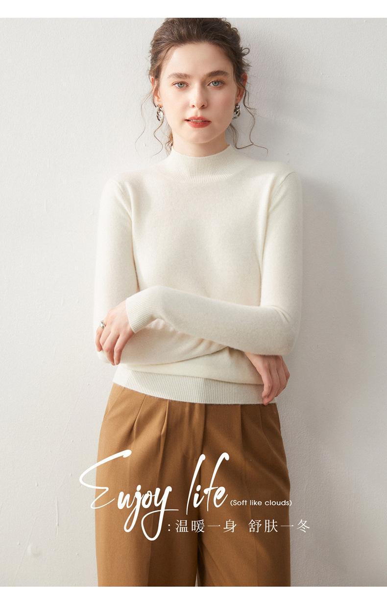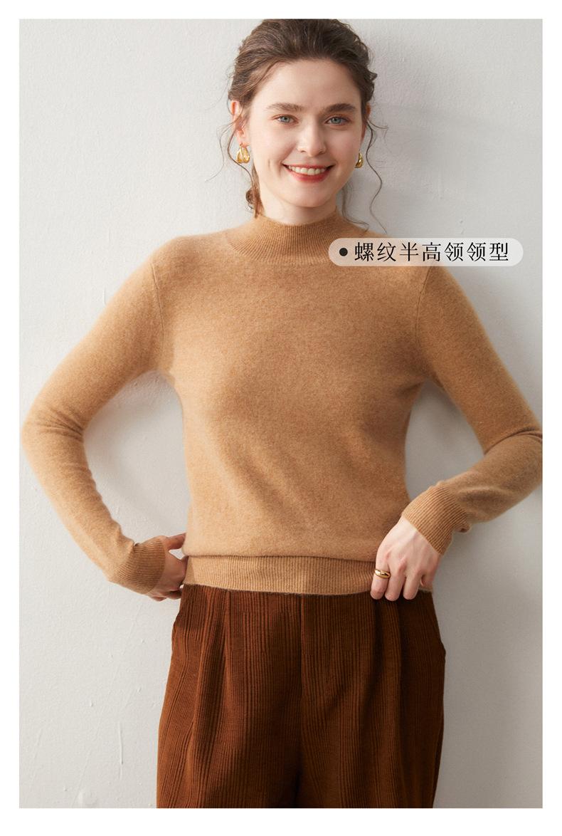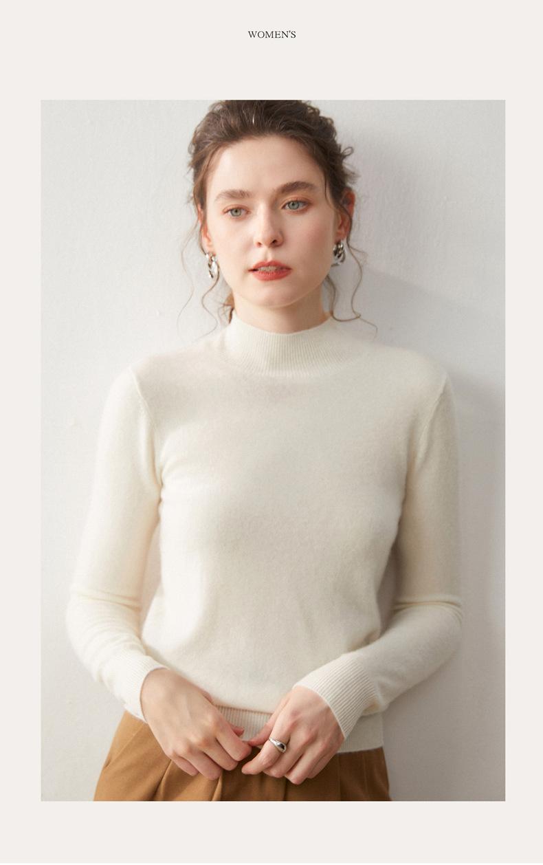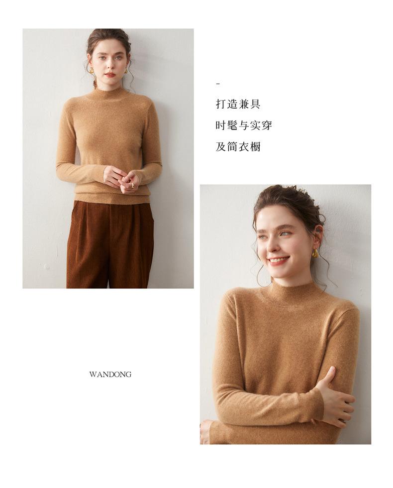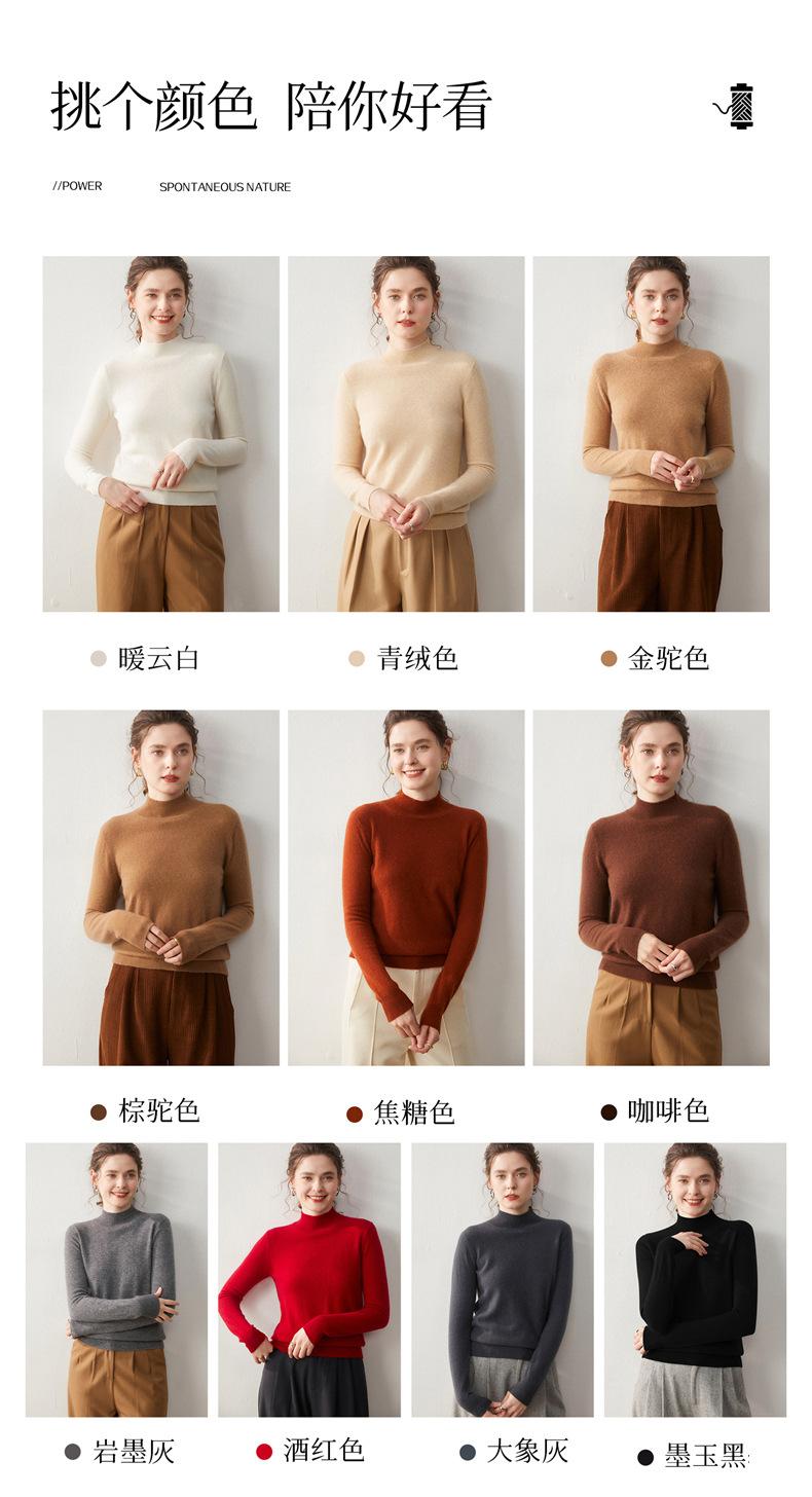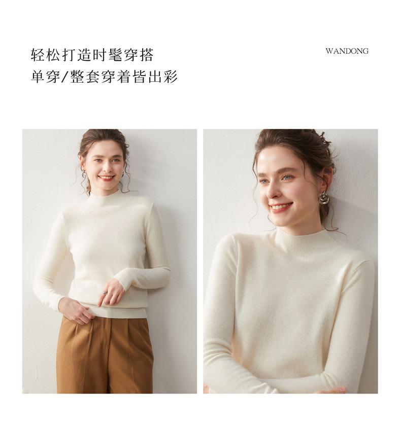 Nueva Capa Base de Punto de Cachemira Otoño/Invierno Color Sólido Suave Cómoda Holgada Adelgazante para Mujer Jersey de Cuello Medio Alto