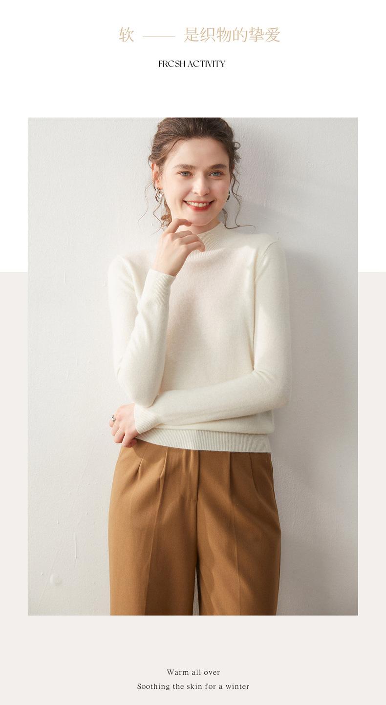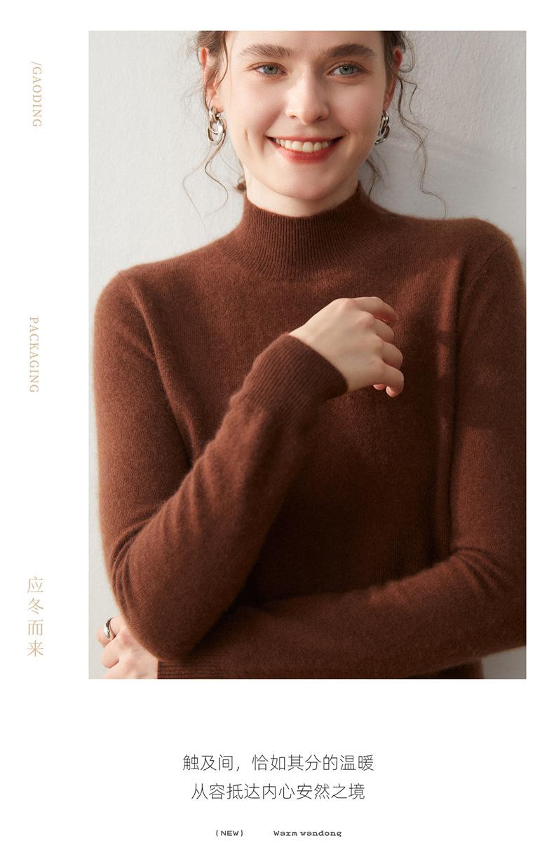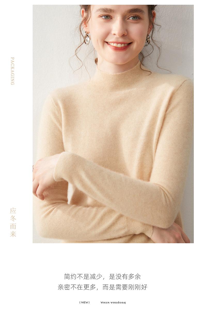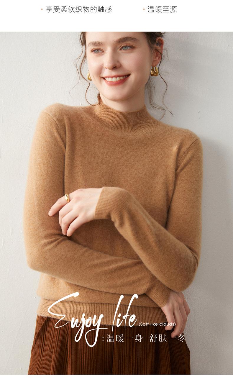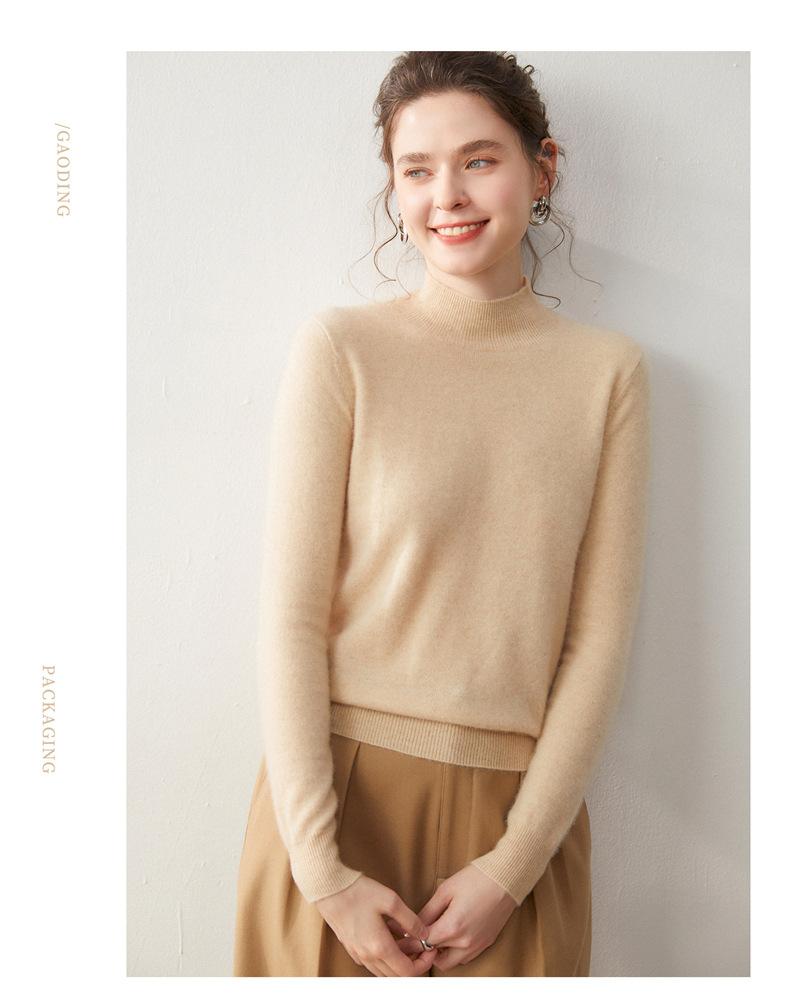Nueva Capa Base de Punto de Cachemira Otoño/Invierno Color Sólido Suave Cómoda Holgada Adelgazante para Mujer Jersey de Cuello Medio Alto