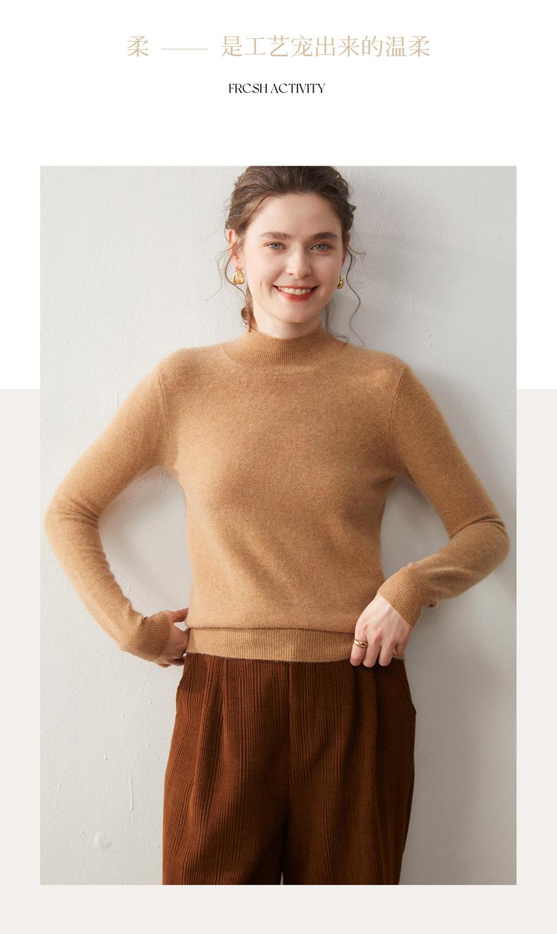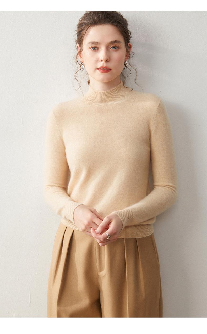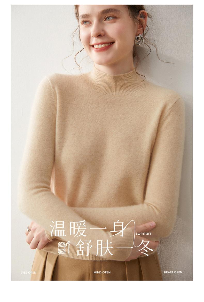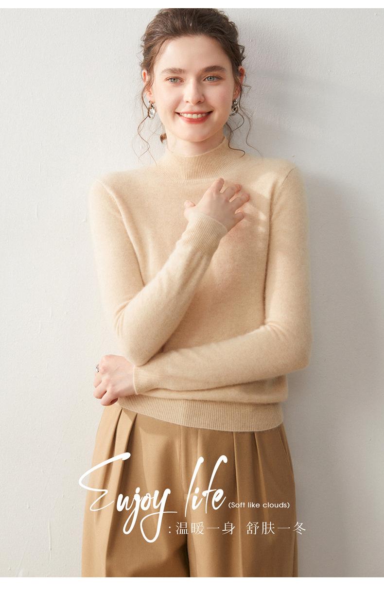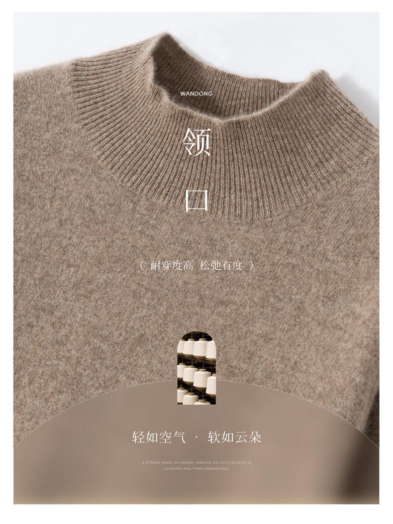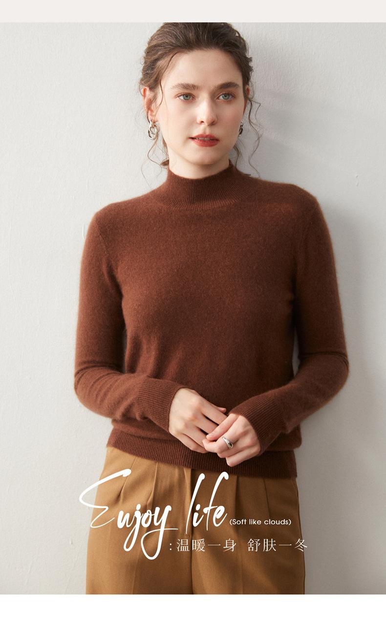 Nueva Capa Base de Punto de Cachemira Otoño/Invierno Color Sólido Suave Cómoda Holgada Adelgazante para Mujer Jersey de Cuello Medio Alto