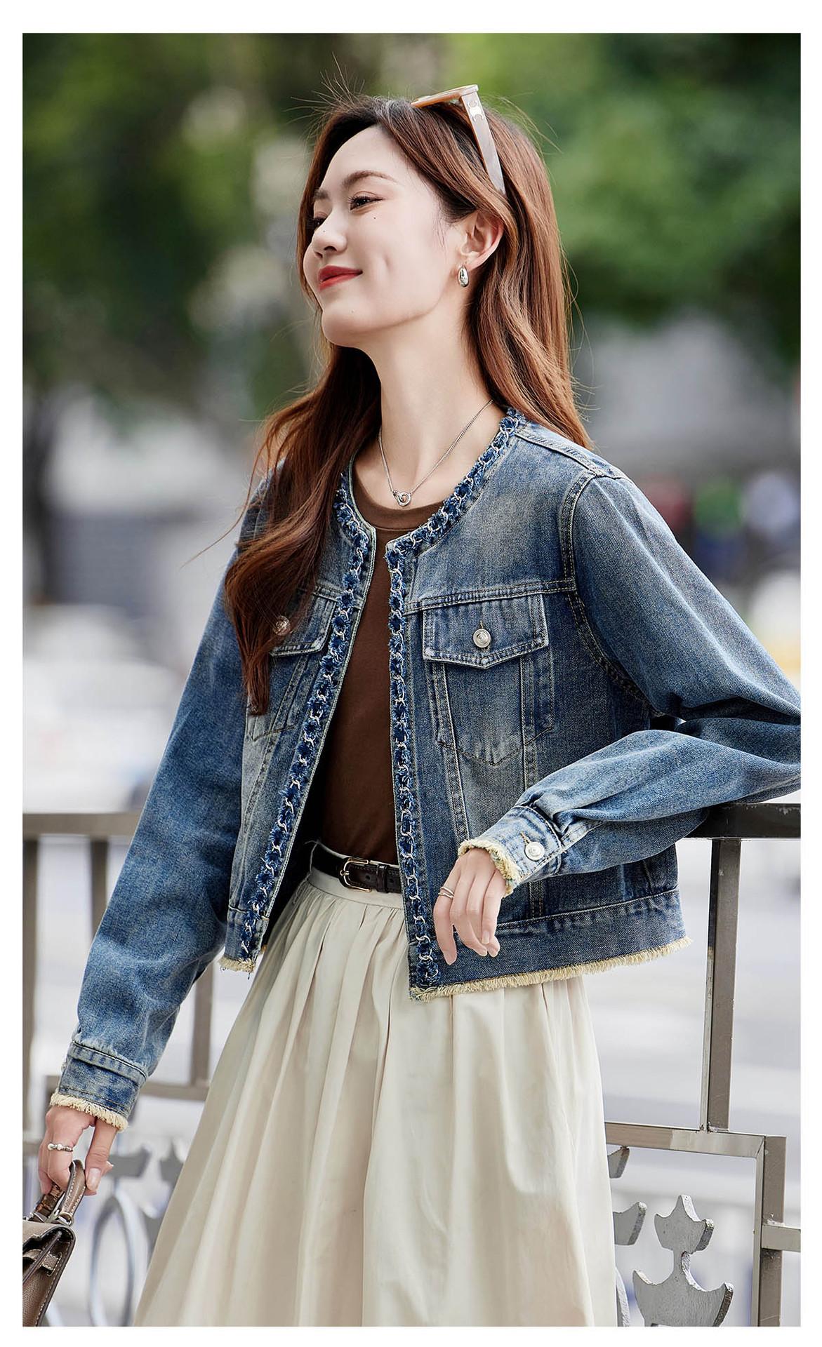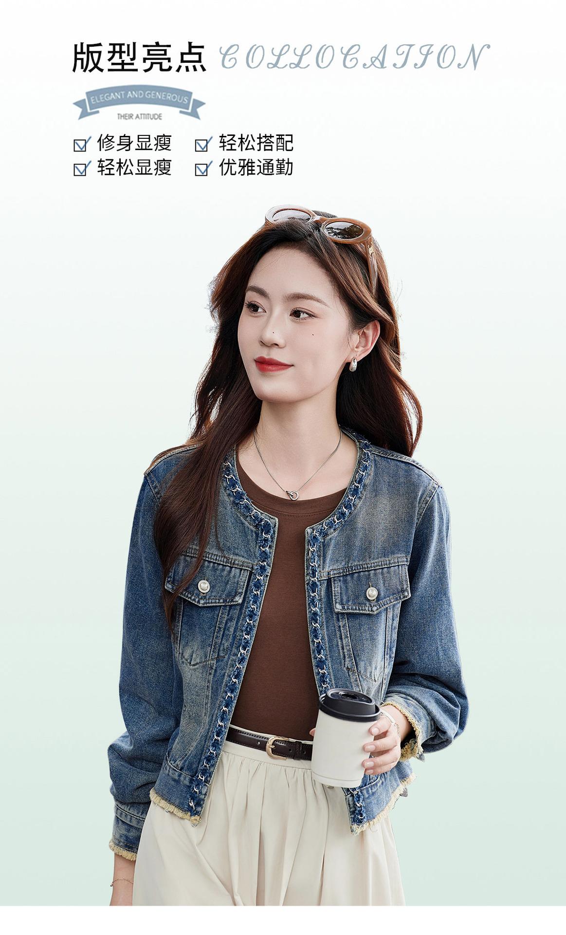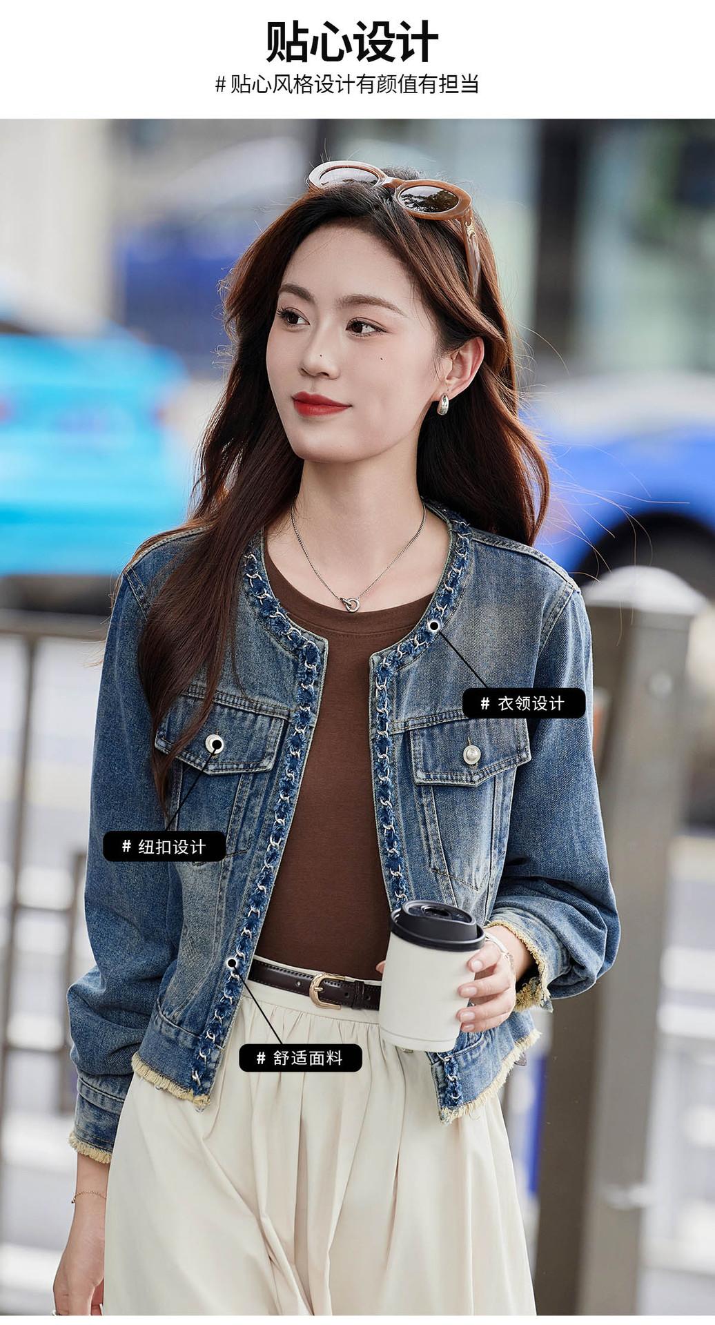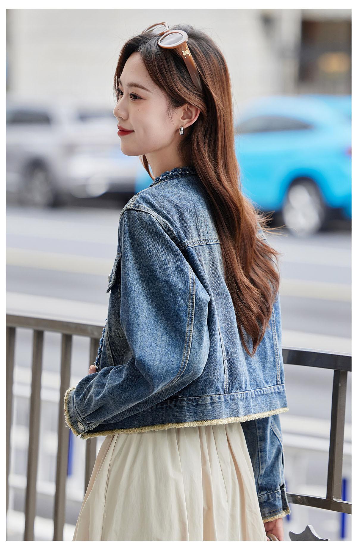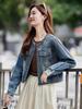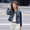 Chaqueta vaquera petite estilo coreano para mujer otoño 2025 nuevo estilo popular este año moda cuello redondo chaqueta corta top
